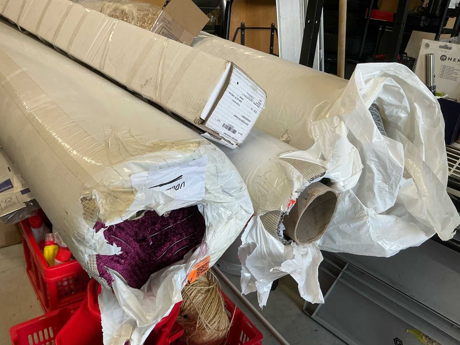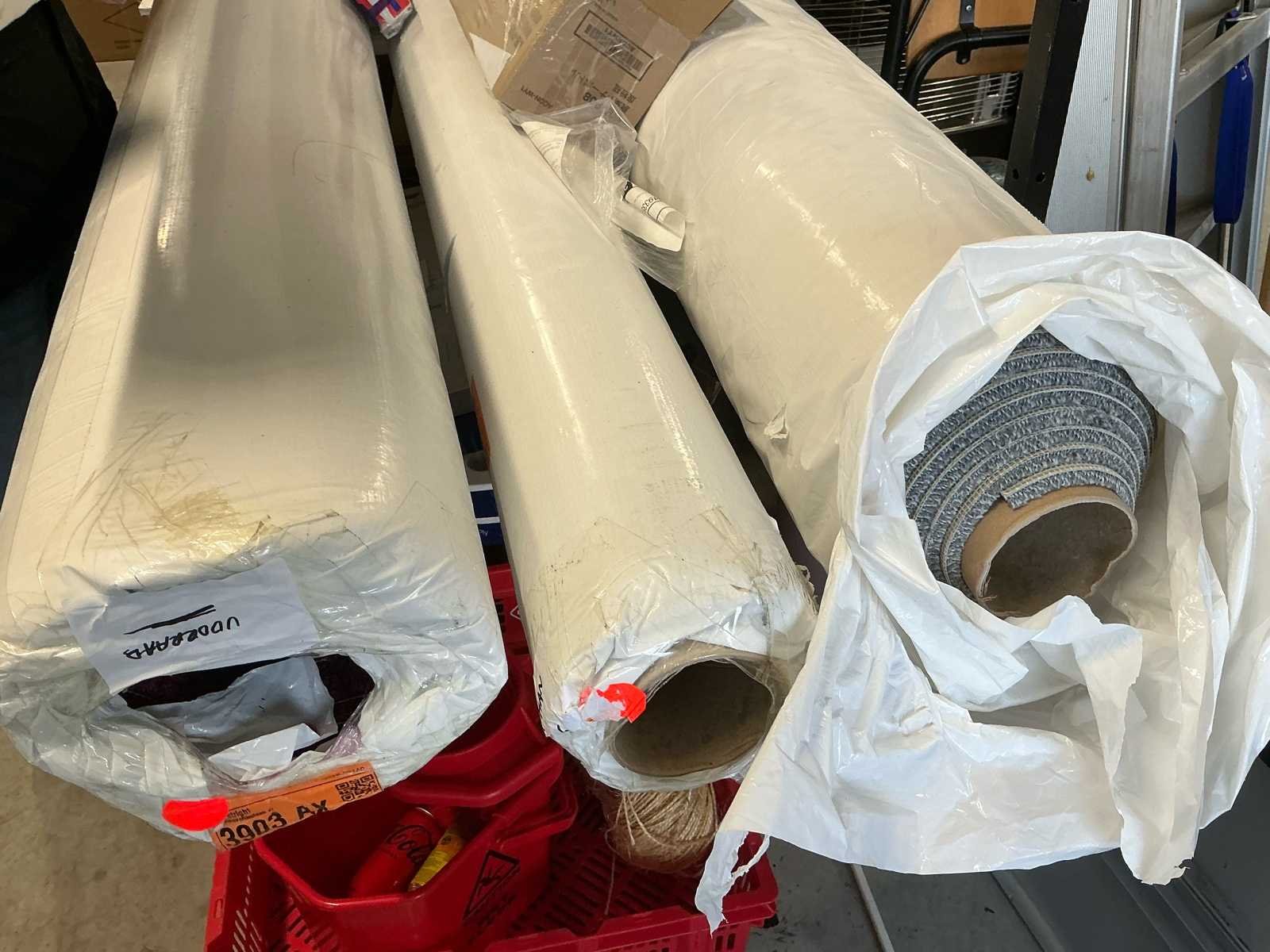 Tapijtrollen, laminaat, gordijnen, tapijtkar, tapijsealmachine en polyestervlies (6x)