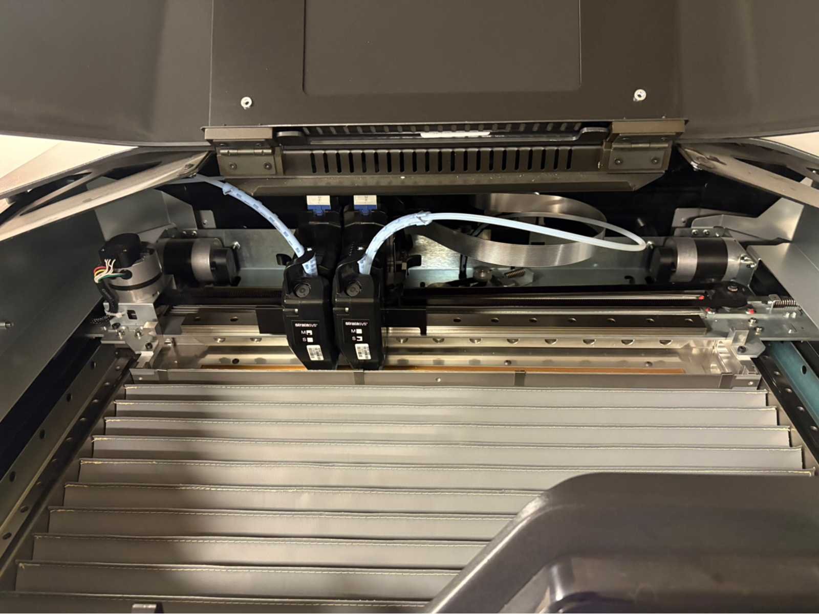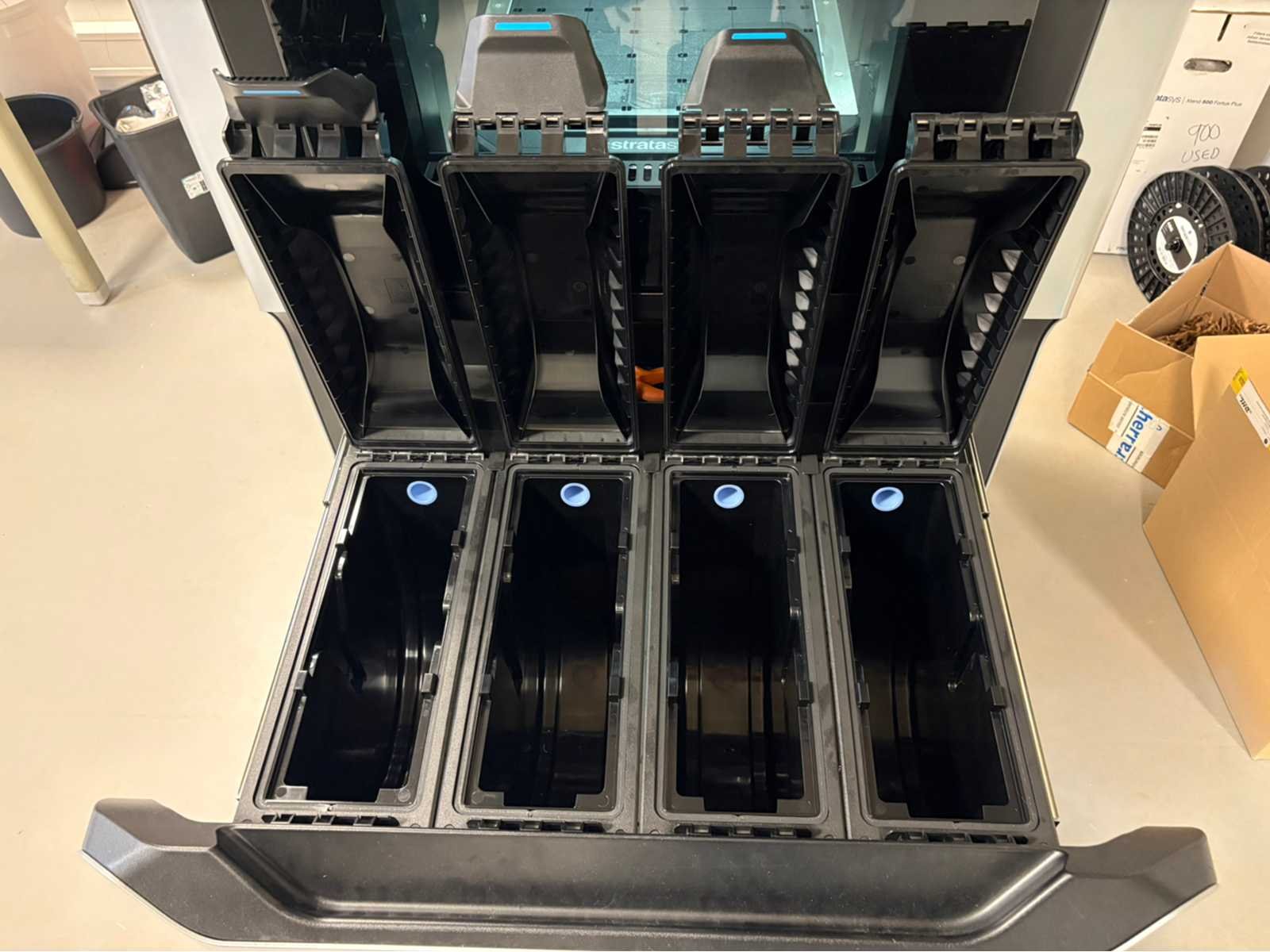 Nee Merk: Stratasys Model: F270 Printtechniek: FDM Print snelheid: 540m²/hr Printoppervlak hoogte: 305mm Printoppervlak breedte: 254mm Printoppervlak diepte: 305mm Aantal printkoppen: 2pcs Materiaal: Metaal met kunststof Kleur: Zwart/grijs Gewicht: 470kg Lengte: 72cm Breedte: 85cm Hoogte: 164cm