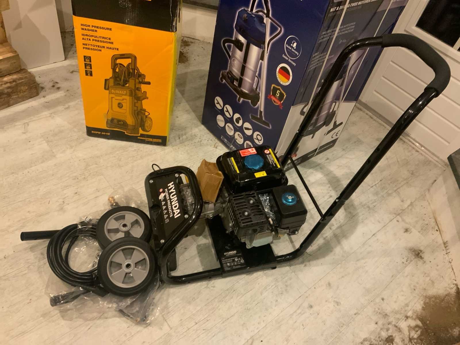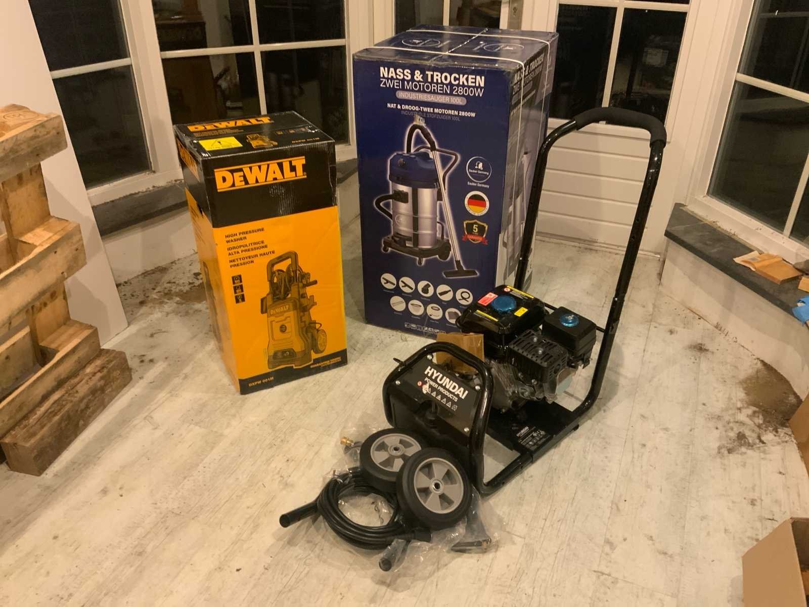 Bestaande uit 1x DeWalt DXPW 01M hogedrukreiniger * 1x Mass & Trocken industriële stofzuiger droog / nat 2800W * 1x Hyundai HY170 hoge druk reiniger * alleen nieuwe ongebruikte machines Nee Leveringsvoorwaarden: Gratis op vrachtwagen
