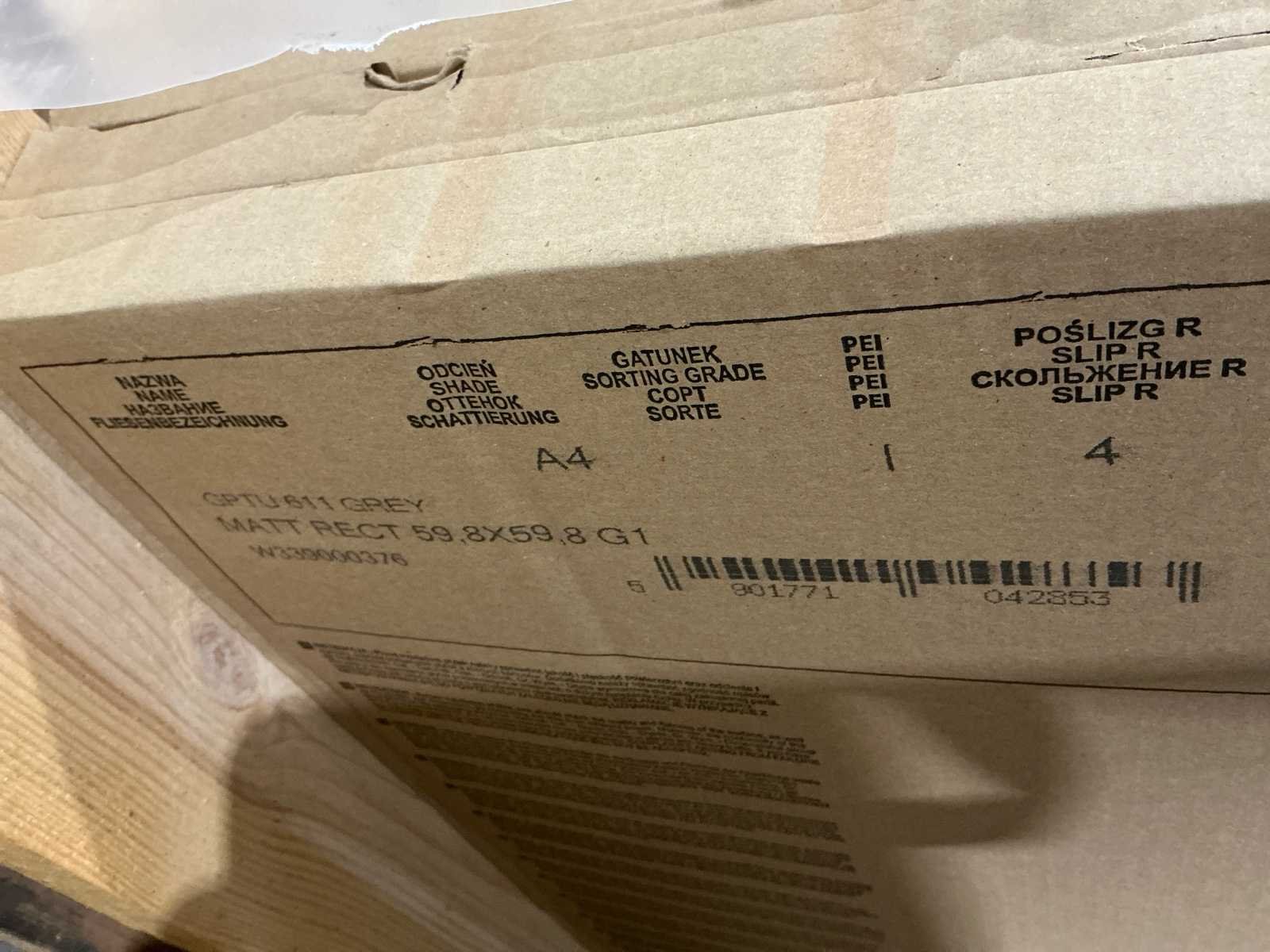 Bestaat uit: vloertegel 600x600, Matt Grey, totaal 42M². Nee Merk: Matt Grey Lengte: 598mm Breedte: 598mm Dikte: 8mm Materiaal: Keramiek Totaal oppervlakte: 42m²