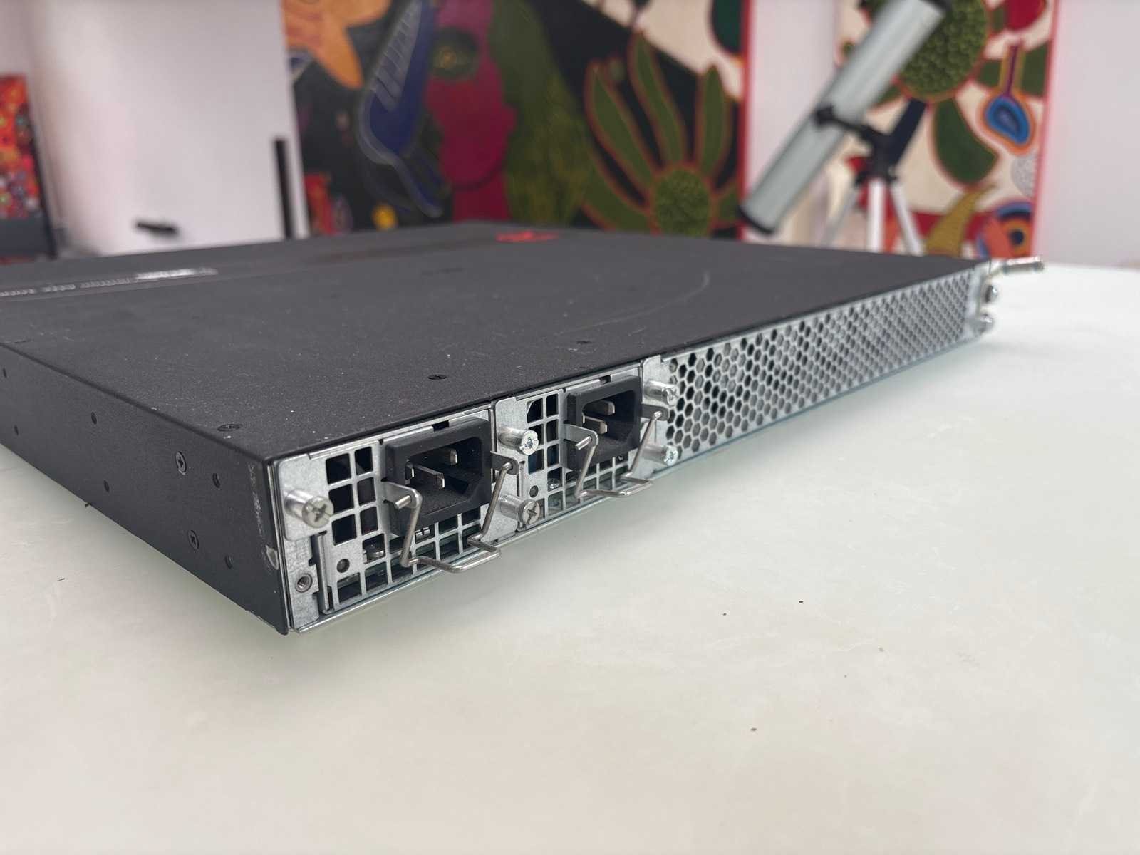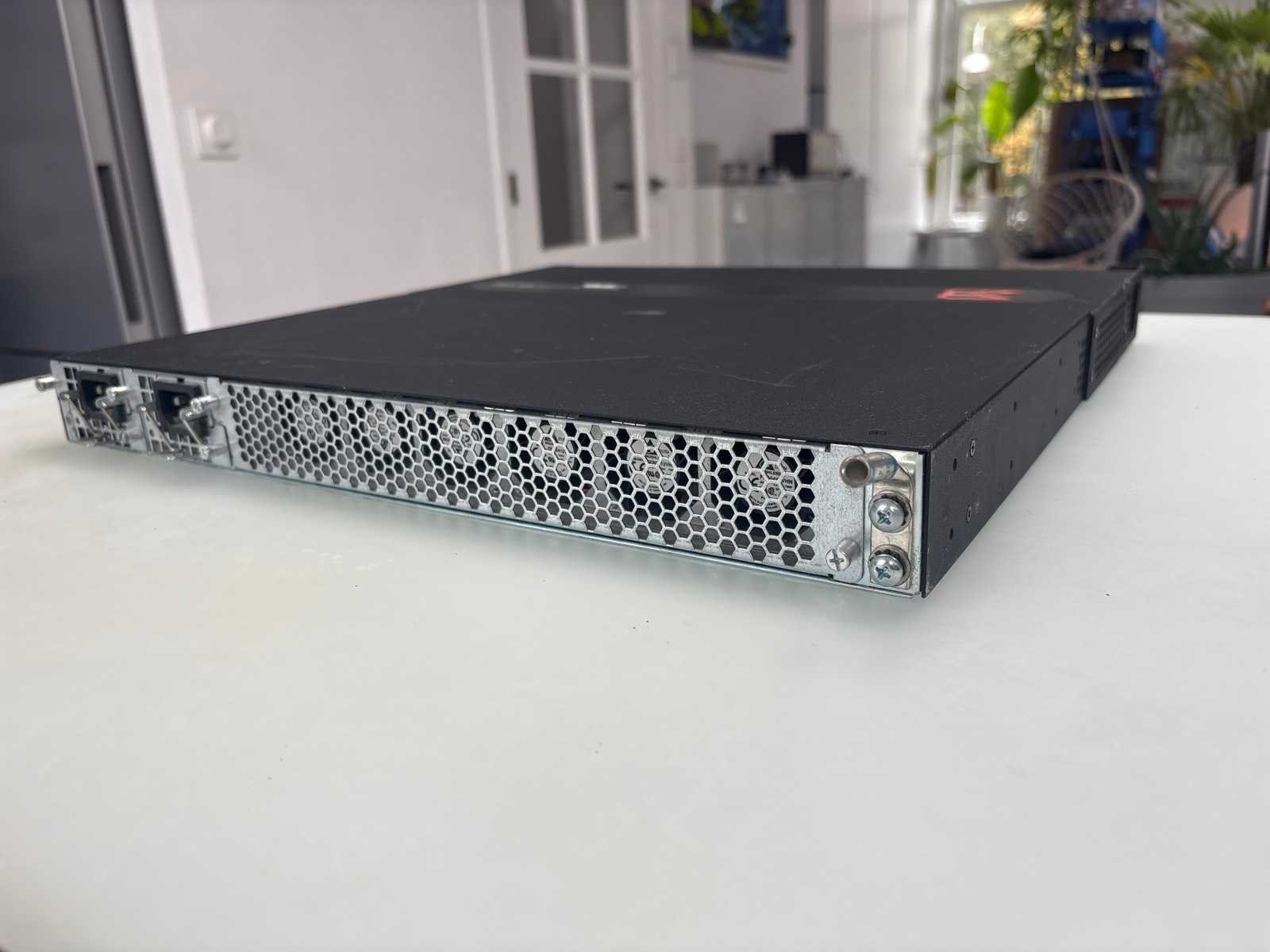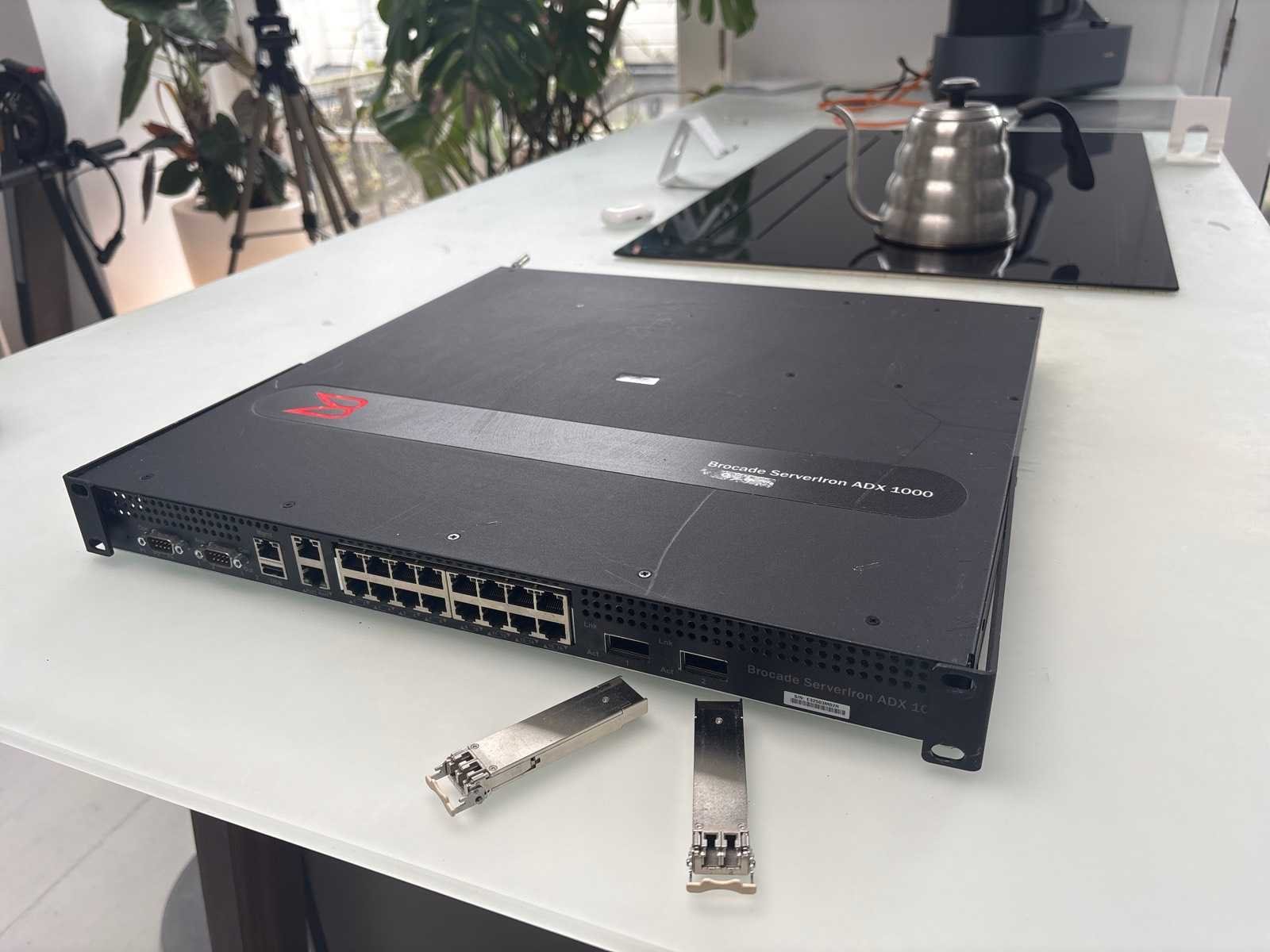 Brocade ServerIron ADX 1000 Application Delivery / Optical Switch. Used- fully functional. Description: High-performance 1U application delivery switch / load balancer designed for data centers, enterprise networks and web service infrastructures. The ServerIron ADX 1000 balances traffic at Layers 4–7, accelerates SSL, supports advanced load balancing, content switching, and high-availability features. It is ideal for managing server clusters, distributing HTTP/HTTPS traffic, and ensuring fault-tolerant services. Key Specifications & Features: • Form factor: 1 RU chassis • Ethernet ports: up to 16 × 10/100/1000 Mbps copper ports • Fiber support or expansion modules (SFP / optics) Two SFP modules included. • SSL / cryptography acceleration support (for handling encrypted traffic efficiently) • Load balancing and content switching: supports URL / HTTP header / cookie / SSL rules • High availability: redundant configurations, failover support • Licensing model: base and premium feature licenses (for IPv6, global server load balancing, multi-tenancy) • Performance: capable of several Gbps of Layer 7 throughput in real-world benchmarks • Electrical: typical power consumption in hundreds of watts (fully loaded) • Management: out-of-band management ports, console ports, web / CLI interfaces Typical Use Cases / Applications: • Web server load balancing (HTTP, HTTPS) • Application delivery and traffic routing for data centers or host farms • SSL offloading and acceleration • Application content switching (routing based on URL, headers, cookies) • Fault tolerance and high-availability clustering of backend servers • Scalable deployment in enterprises, hosting providers, or cloud environments Nee Merk: Brocade Type: ServerIron ADX 1000 Network Switch Lengte: 500cm Breedte: 500cm Hoogte: 30cm