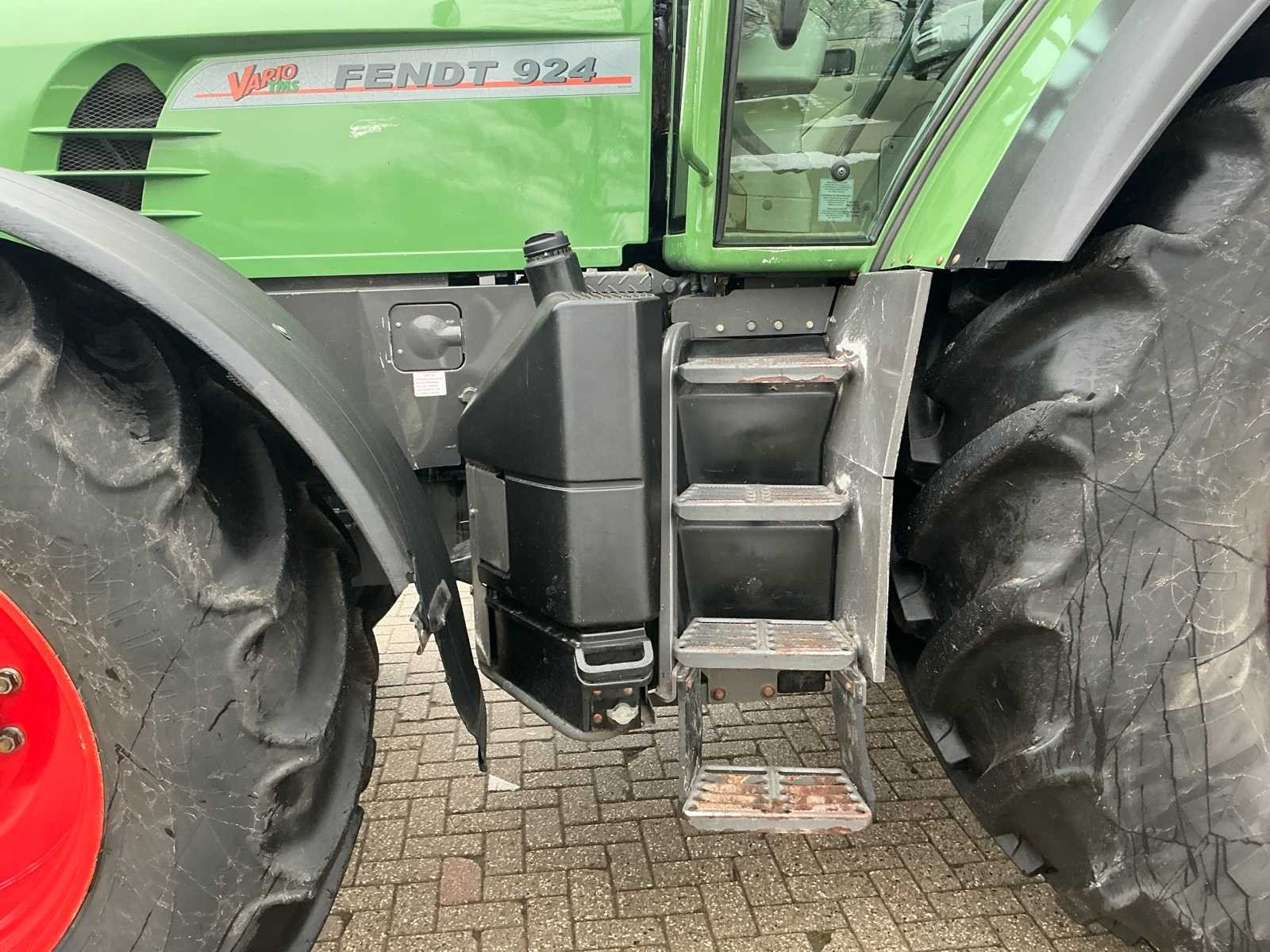 Voorzien van: Originele lage urenstand, luchtgeveerde cabine, 4 dubbele ventielen achter, 2 dubbele voor, hefinrichting voor en achter, trekhaak achter(pieton fix), luchtsysteem, wielgewichten achterin 295kg per stuk, luchtrem aansluiting, isobus, 6-cilinder MAN dieselmotor van ca. 240 pk (176 kW), traploze Vario-transmissie, 4-wielaandrijving, PTO 540/540e/1000 t/min, cabine met airco, eigen gewicht ca. 9.500–10.000 kg, toegestaan totaalgewicht tot ca. 14.000 kg Nee Merk: Fendt Type: 924 Vario Bouwjaar: 2006 Serienummer: e1-2001/3-0053-10 Motorvermogen (kW): 176kW Afgelezen urenstand: 7653 Versnellingsbaktype: Vario Aftakastoerental: 1000rpm Aantal hydraulische ventielen voor: 2 Aantal hydraulische ventielen achter: 8 Bandenmaat voor: 600/65R34 Bandenmaat achter: 650/85R38 Load sensing: true Fronthefinrichting: true Cabine: true Luchtgeveerde stoel: true Totale afmeting L: 5800mm Totale afmeting Breedte: 2700mm Totale afmeting Hoogte: 3100mm Kentekenpapieren compleet?: true Chassisnummer: 924237375 Nationaliteit documenten: Frankrijk