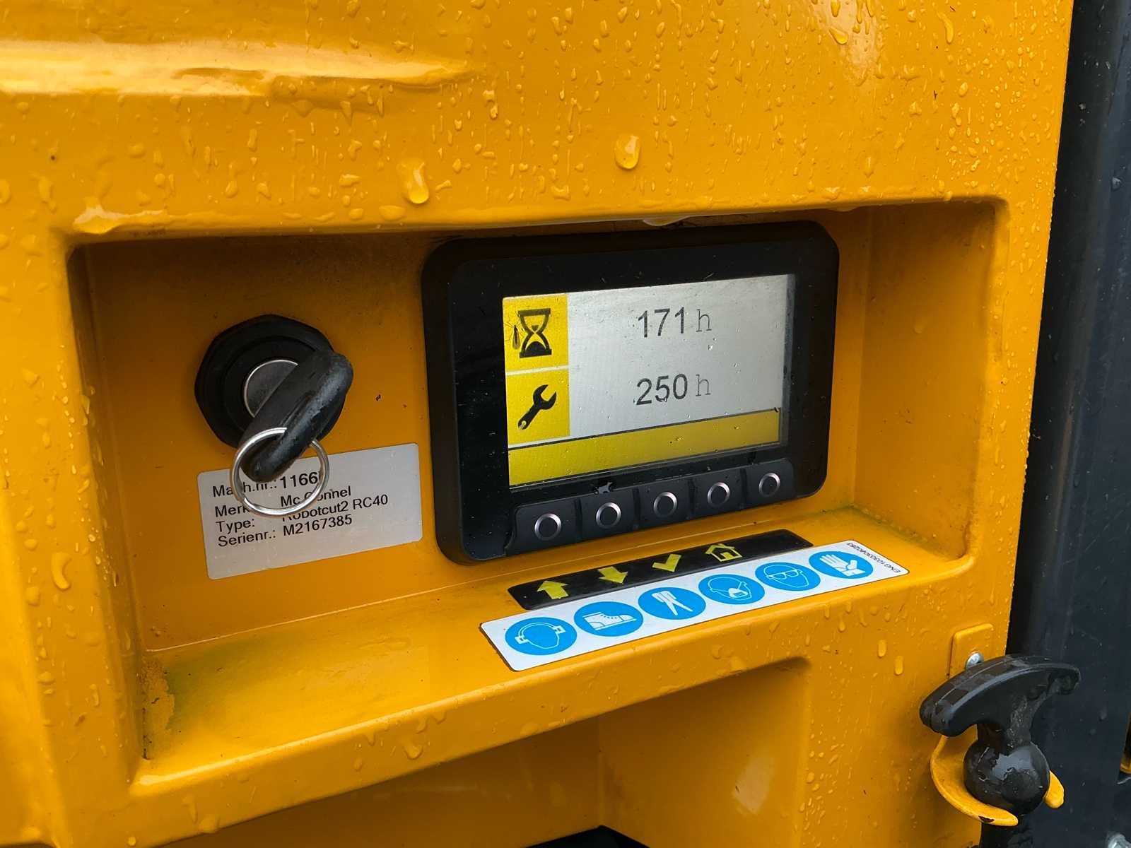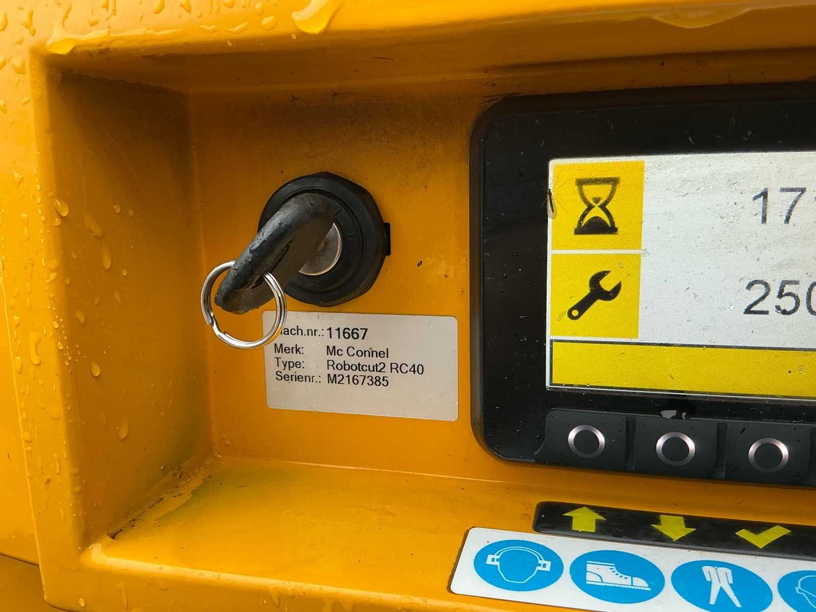 ROBOCUT2 RC40 Op afstand bestuurbare werktuigdrager / maaier. Geschikt voor hellingen tot 55 graden. Bouwjaar: 2021 Urenstand: 171 uur. Voorzien van: Yanmar 3TNV88C DYT2 40pk 3cilinder dieselmotor Rupsonderstel met 26cm brede rupsen Hetronic radiografische afstandsbediening met acculader en opbergkoffer Multifunctioneel informatiedisplay Dabekausen Flailhead 1300 Klepelmaaier (werkbreedte 1300mm Dabekausen Predator Bosfrees ST20HS stobbenfrees (92 kg, 370mm, 12 beitels) Hefinrichting voorzijde Hydrauliek aansluitingen Handleiding Verlichting voorzijde Afmeting machine zonder werktuig: Lengte: 220cm Breedte: 135cm Hoogte: 120cm Afmeting Stobbenfrees: Lengte: 80cm Breedte: 80cm Hoogte: 80cm Afmeting bosfrees: Lengte: 90cm Breedte: 150cm Hoogte: 125cm Afmeting klepelmaaier: Lengte: 70cm Breedte: 150cm Hoogte: 50cm Nee Merk: McConnel Type: Robocut2 RC40 Bouwjaar: 2021 Serienummer: M2167385 Werkbreedte: 1300mm Met oplader: true Eigen gewicht: 1116kg Totale afmeting L: 2200mm Totale afmeting Breedte: 1350mm Totale afmeting Hoogte: 1200mm