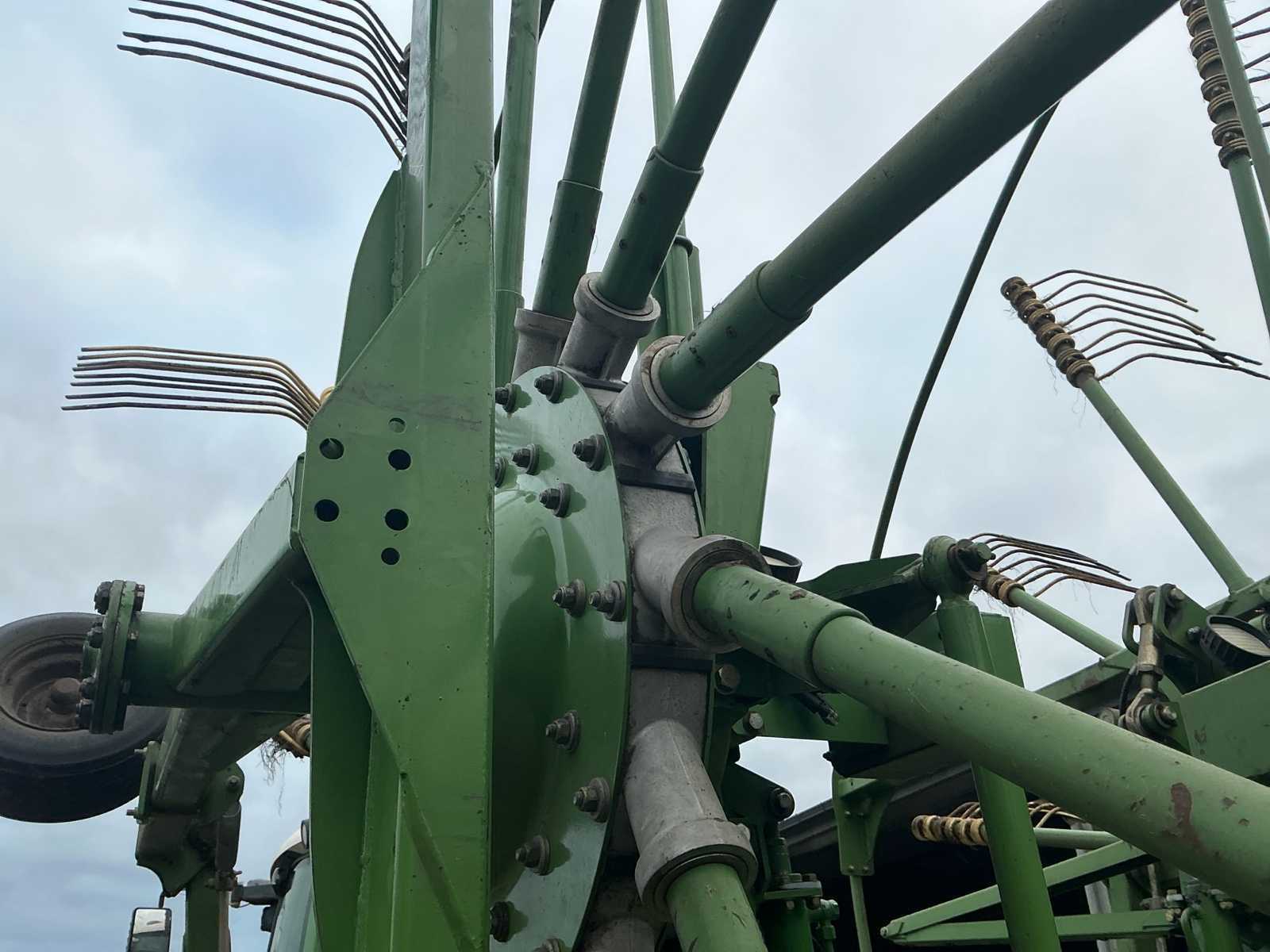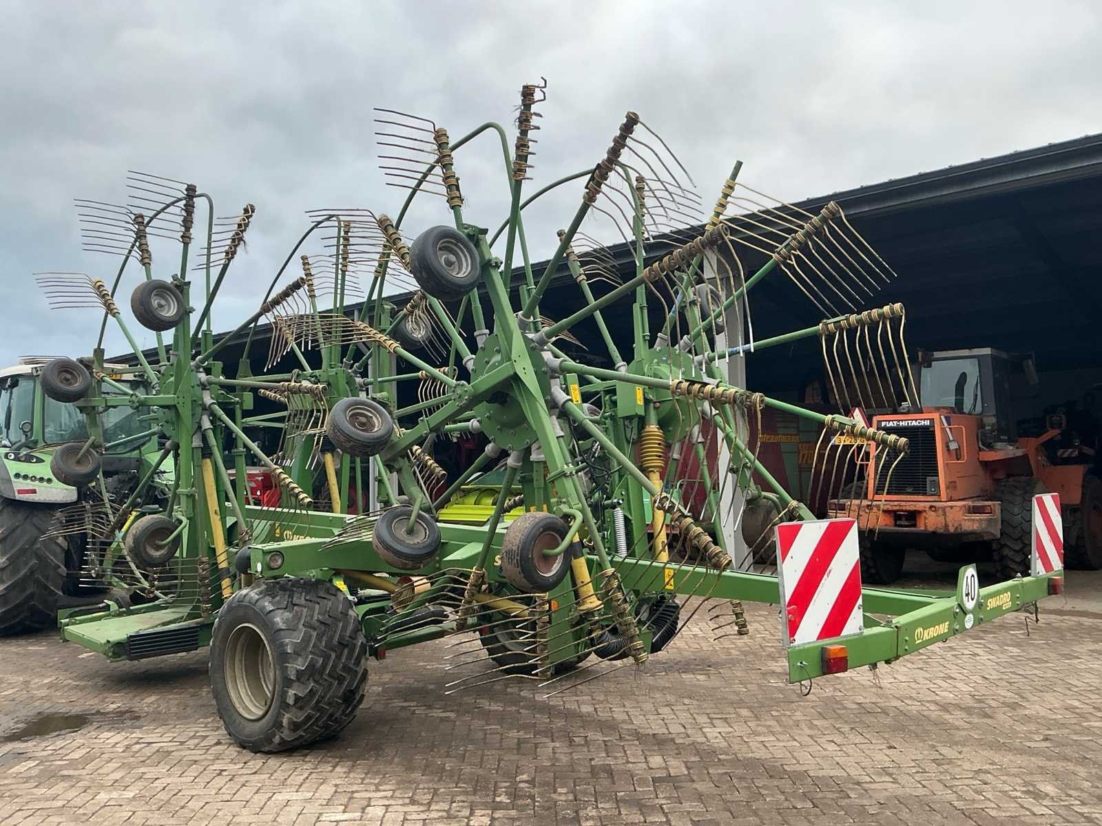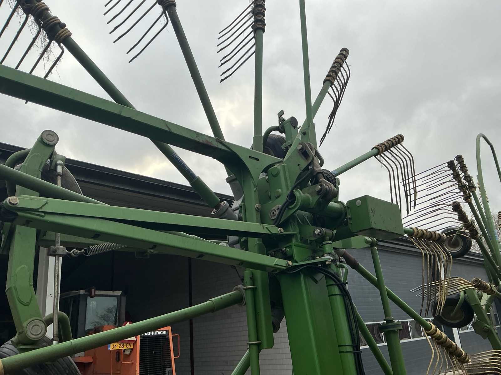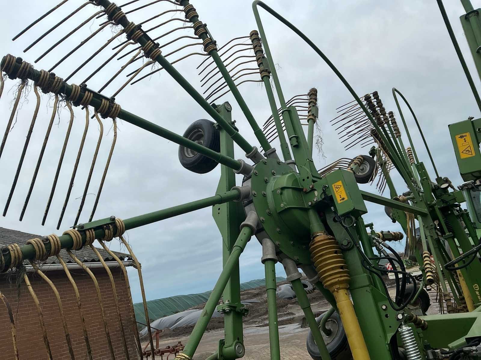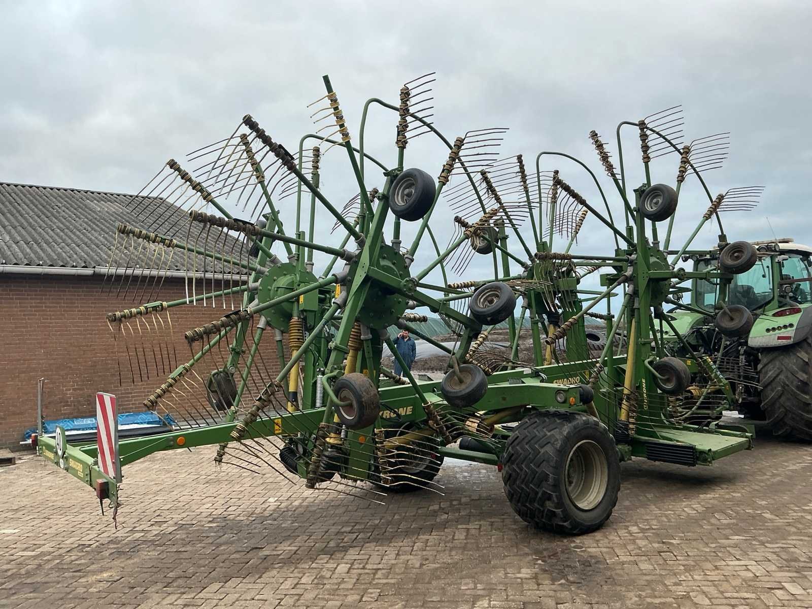 Voorzien van: De Krone Swadro 1400 Plus SW2E heeft een werkbreedte van 9,80–13,50 m, een zwadenbreedte van 1,40–2,20 m, 4 rotoren met 13–15 armen per rotor en 4 tanden per arm, en een capaciteit tot circa 15–20 hectare per uur afhankelijk van gewas en rijsnelheid. Instelbare curvebanen, vernieuwt in 2024. Elektrisch in hoogte te verstellen, rotors. Lucht remmen. Loadsensing en tractorhydroliek bediening. Werklampen. De Krone Swadro 1400 Plus is een vierrotor-zwadhark met een werkbreedte van 9,80–13,50 m, zwadenbreedte van 1,40–2,20 m, 4 rotoren met 13–15 armen en 4 tanden per arm, een capaciteit van 15–20 ha/uur, een eigen gewicht van circa 4.800–5.000 kg, transportafmetingen van ongeveer 3,0 m breed, 4,0 m hoog en 6,5–7,0 m lang, en een aanbevolen tractorvermogen van 120–150 pk. De Krone Swadro 1400 Plus heeft een transportbreedte van circa 3,0 meter, een transporthoogte van ongeveer 4,0 meter, een transportlengte van 6,5–7,0 meter en een eigen gewicht van circa 4.800–5.000 kg. Nee Merk: Krone Type: Swadro 1400 Plus Bouwjaar: 2016 Serienummer: SWE945233 Bouwjaar: 2016 Eigen gewicht: 5900kg Werkbreedte: 14000mm