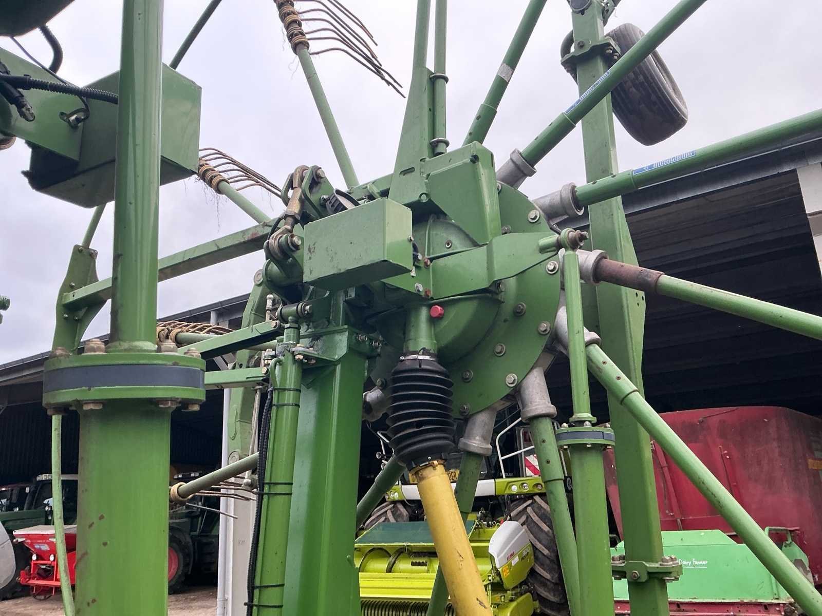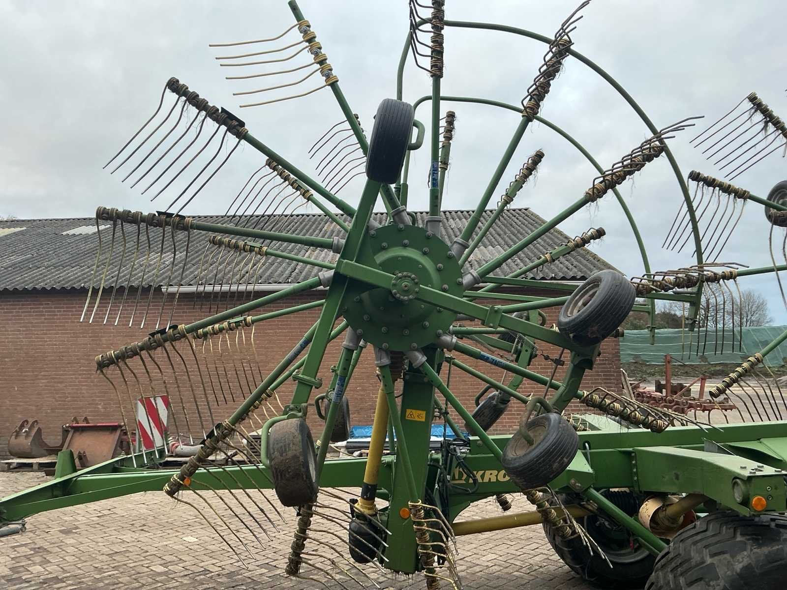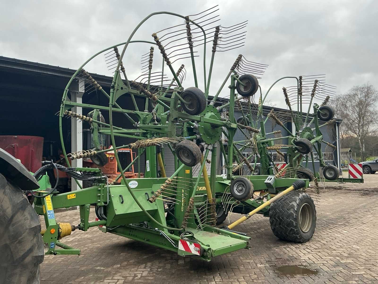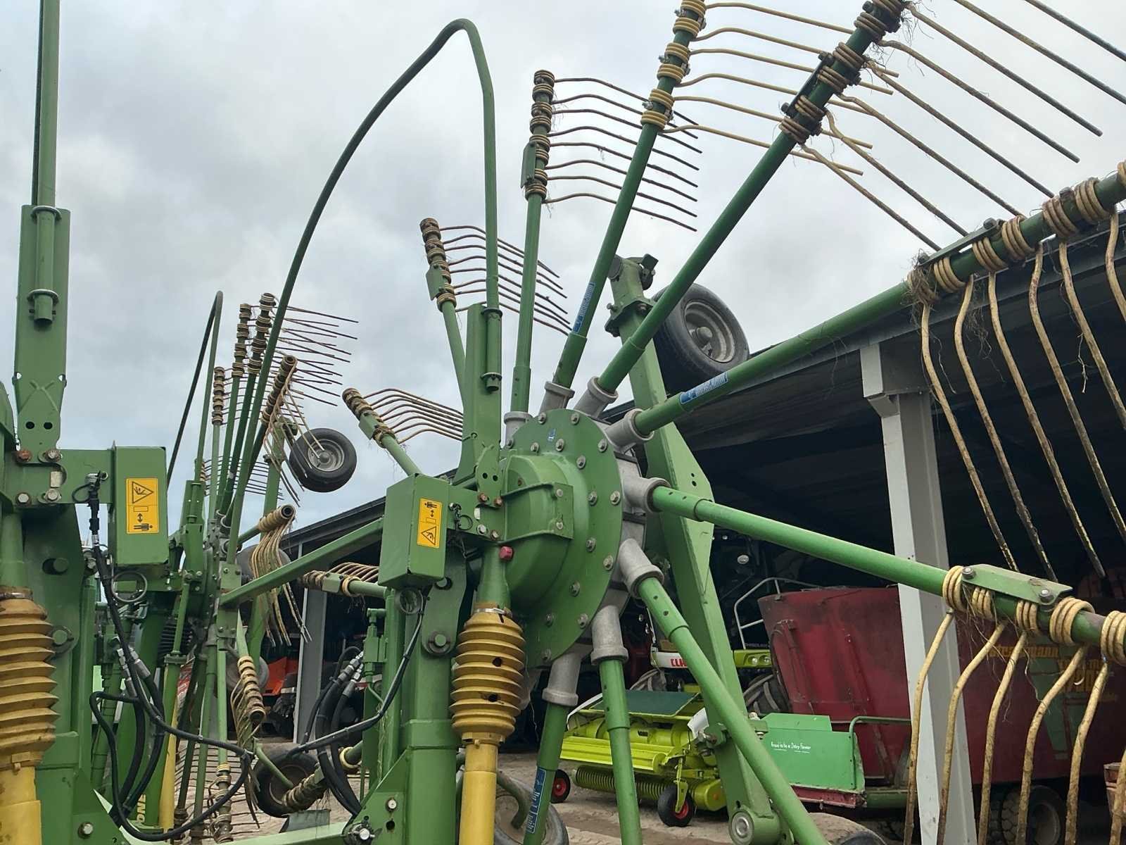 Voorzien van: De Krone Swadro 1400 Plus SW2E heeft een werkbreedte van 9,80–13,50 m, een zwadenbreedte van 1,40–2,20 m, 4 rotoren met 13–15 armen per rotor en 4 tanden per arm, en een capaciteit tot circa 15–20 hectare per uur afhankelijk van gewas en rijsnelheid. Instelbare curvebanen, vernieuwt in 2024. Elektrisch in hoogte te verstellen, rotors. Lucht remmen. Loadsensing en tractorhydroliek bediening. Werklampen. De Krone Swadro 1400 Plus is een vierrotor-zwadhark met een werkbreedte van 9,80–13,50 m, zwadenbreedte van 1,40–2,20 m, 4 rotoren met 13–15 armen en 4 tanden per arm, een capaciteit van 15–20 ha/uur, een eigen gewicht van circa 4.800–5.000 kg, transportafmetingen van ongeveer 3,0 m breed, 4,0 m hoog en 6,5–7,0 m lang, en een aanbevolen tractorvermogen van 120–150 pk. De Krone Swadro 1400 Plus heeft een transportbreedte van circa 3,0 meter, een transporthoogte van ongeveer 4,0 meter, een transportlengte van 6,5–7,0 meter en een eigen gewicht van circa 4.800–5.000 kg. Nee Merk: Krone Type: Swadro 1400 Plus Bouwjaar: 2016 Serienummer: SWE945233 Bouwjaar: 2016 Eigen gewicht: 5900kg Werkbreedte: 14000mm