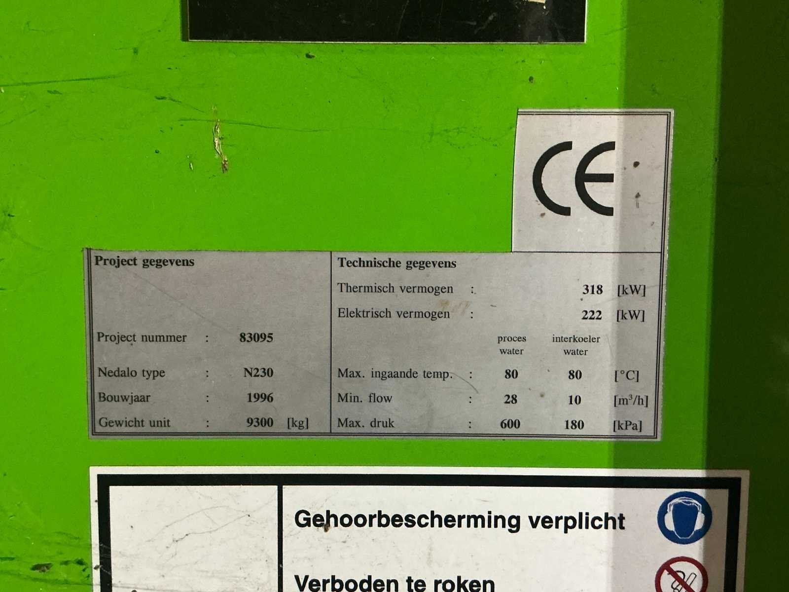 Thermisch vermogen: 318kW, elektrisch vermogen: 222kW. Voorzien van externe Helpman koeler. Nee Type: N230 Bouwjaar: 1996 Serienummer: 83095 Gasgestookt: true Aantal cilinders: 6 Schakelkast: true Geluidgedempte omkasting: true Eigen gewicht: 9300kg Totale afmeting L: 4600mm Totale afmeting Breedte: 2000mm Totale afmeting Hoogte: 2900mm
