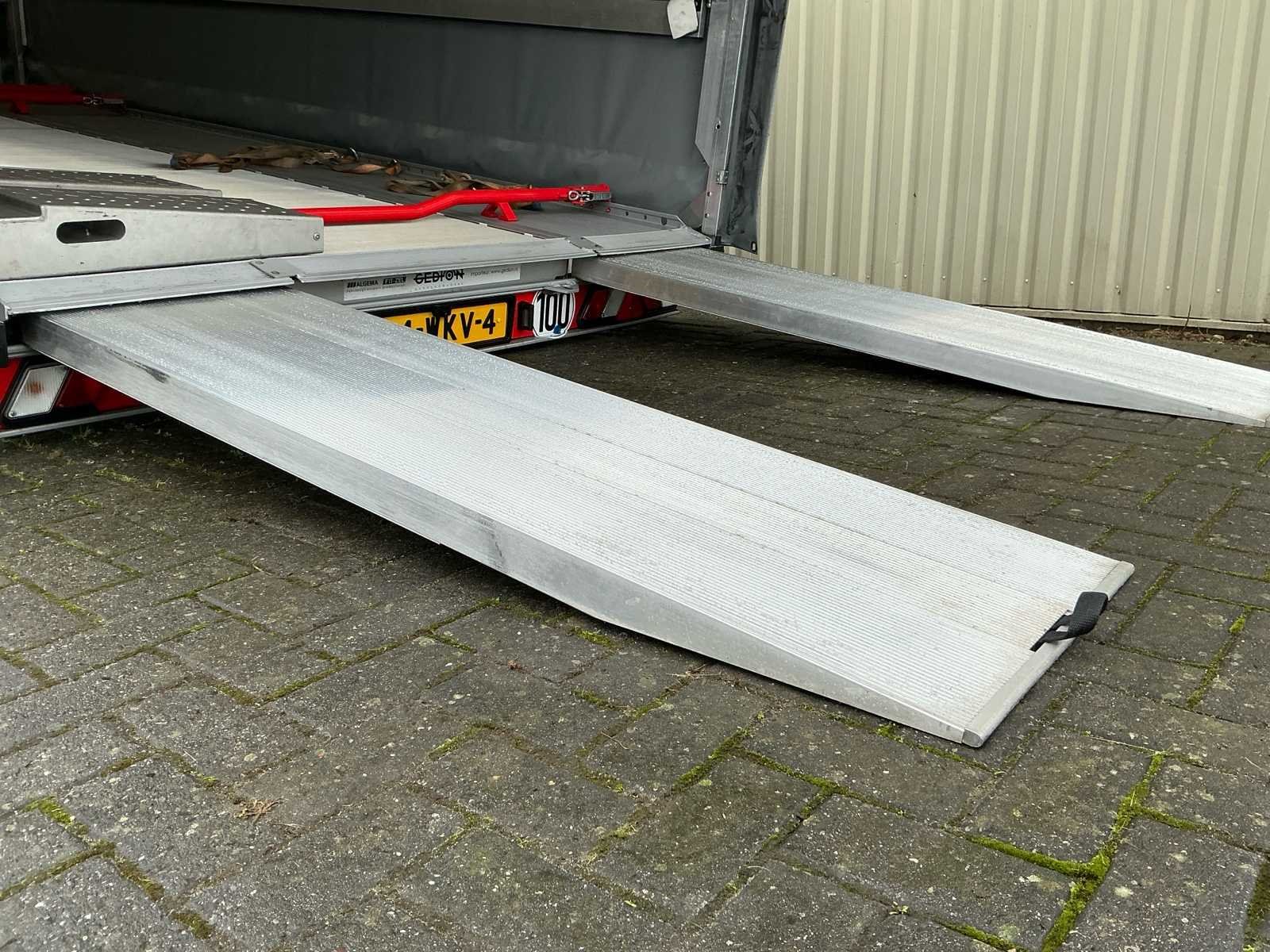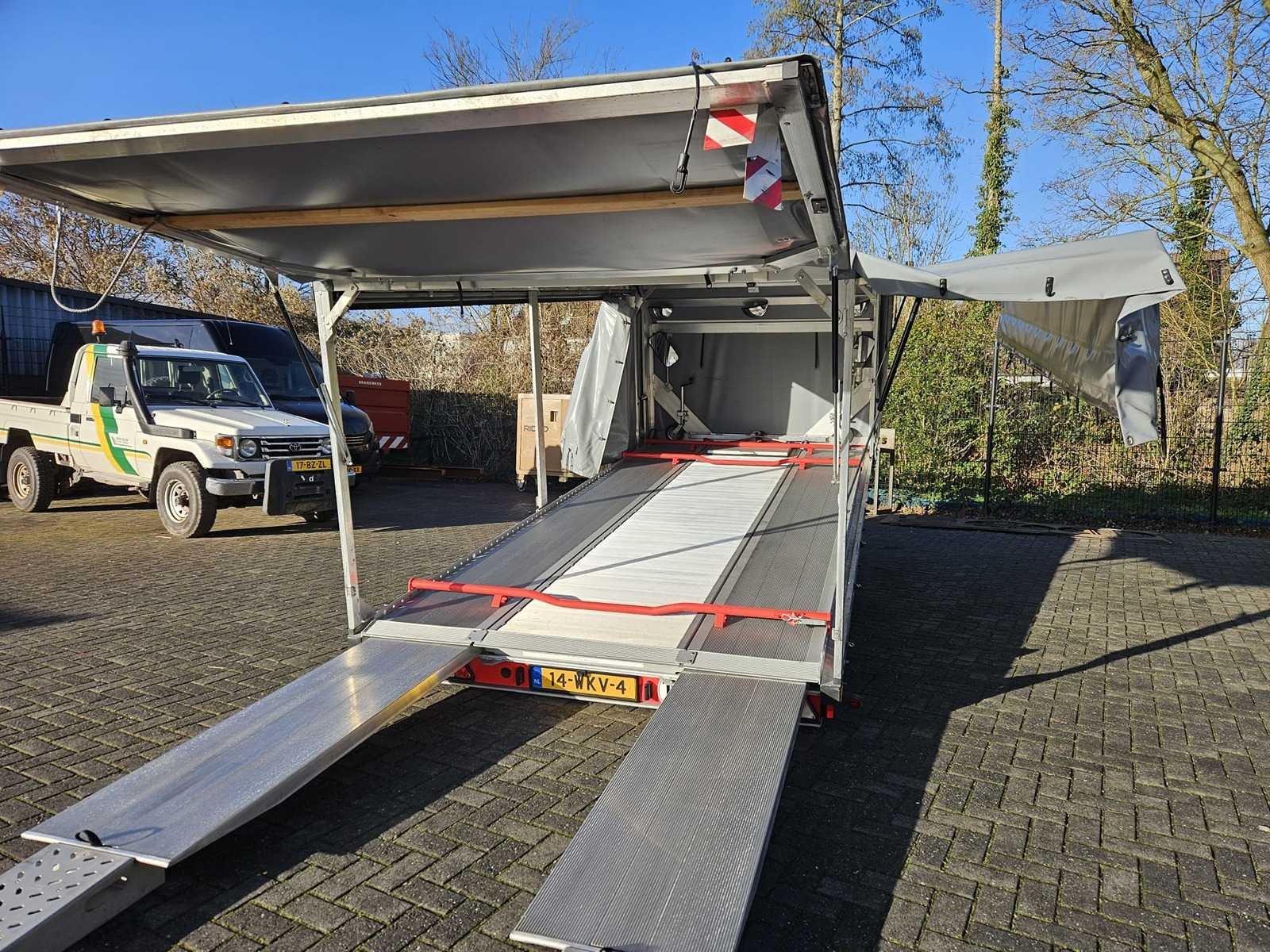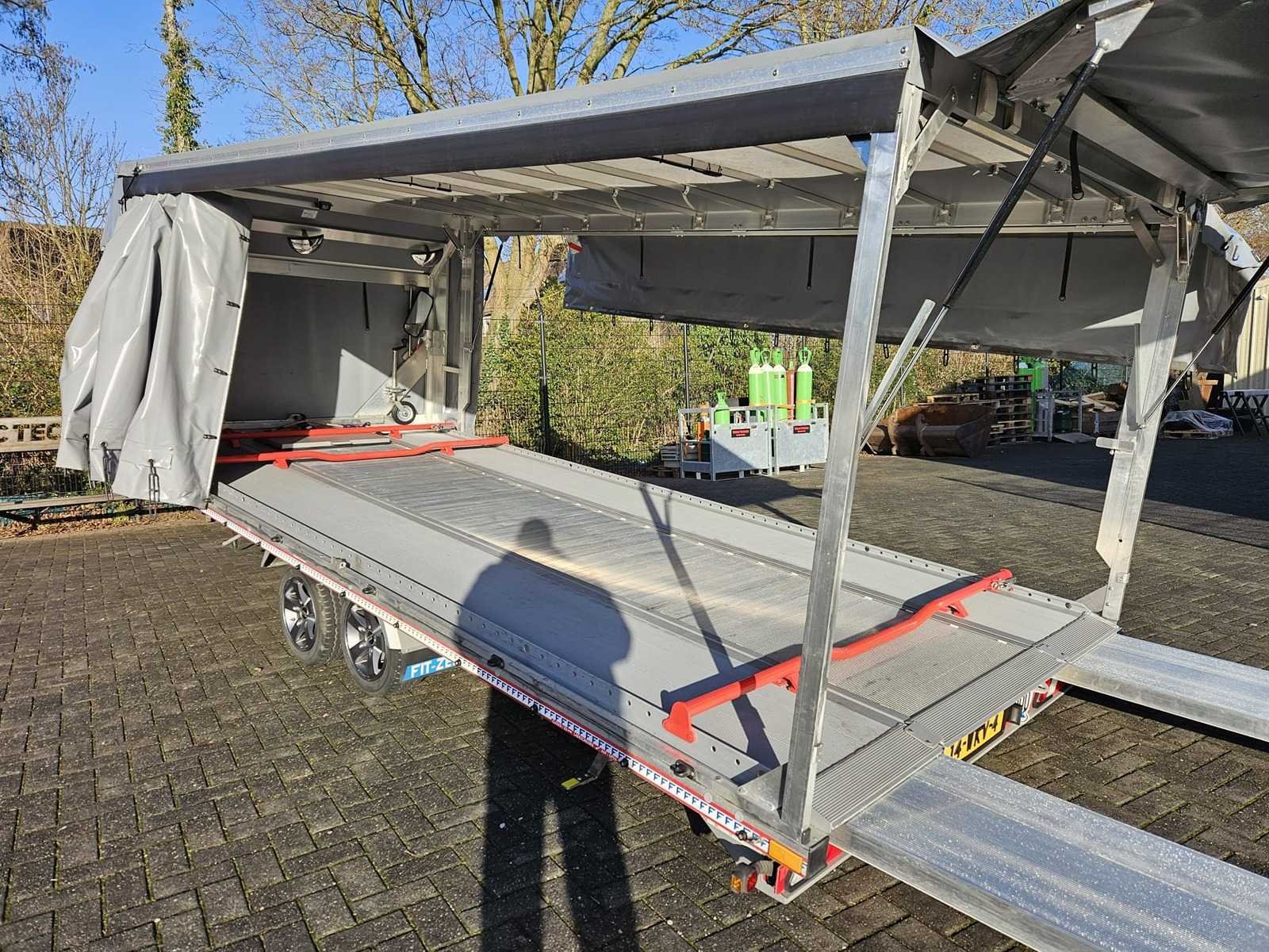 Voorzien van: uittrekbare oprijplaten, extra oprijplaten, spiegels binnenzijde, electrische lier met kunststof kabel van 15 meter met afstandsbediening, accu, antislingerkoppeling, neuswiel, handrem, kantelbaar zodat lage auto’s eerden kunnen worden, volledig aluminium ook de vloer, complete demontabele opbouw op wieltjes, aan linkerzijde schuifzeil, rechterzijde zijklep, achterzijde achterklep, afrolhulp voor gehele huifframe, reserveband, spanbanden, 3x verstelbare aluminium wielaanslagbeugels. Nee Merk: Fitzel / Eder Type: Euro-Trans Bouwjaar: 2024 Chassisnummer: W09B3S235RTE04203 Aantal assen: 2 Laadbak afmeting l: 530cm Laadbak afmeting b: 218cm Ledig gewicht: 657kg Laadvermogen: 2843kg Gesloten opbouw: true Datum eerste toelating: 19-04-2024 Kenteken: 14-WKV-4 Kentekenpapieren compleet?: true Hoogte: 160cm Lengte: 662cm Breedte: 222cm