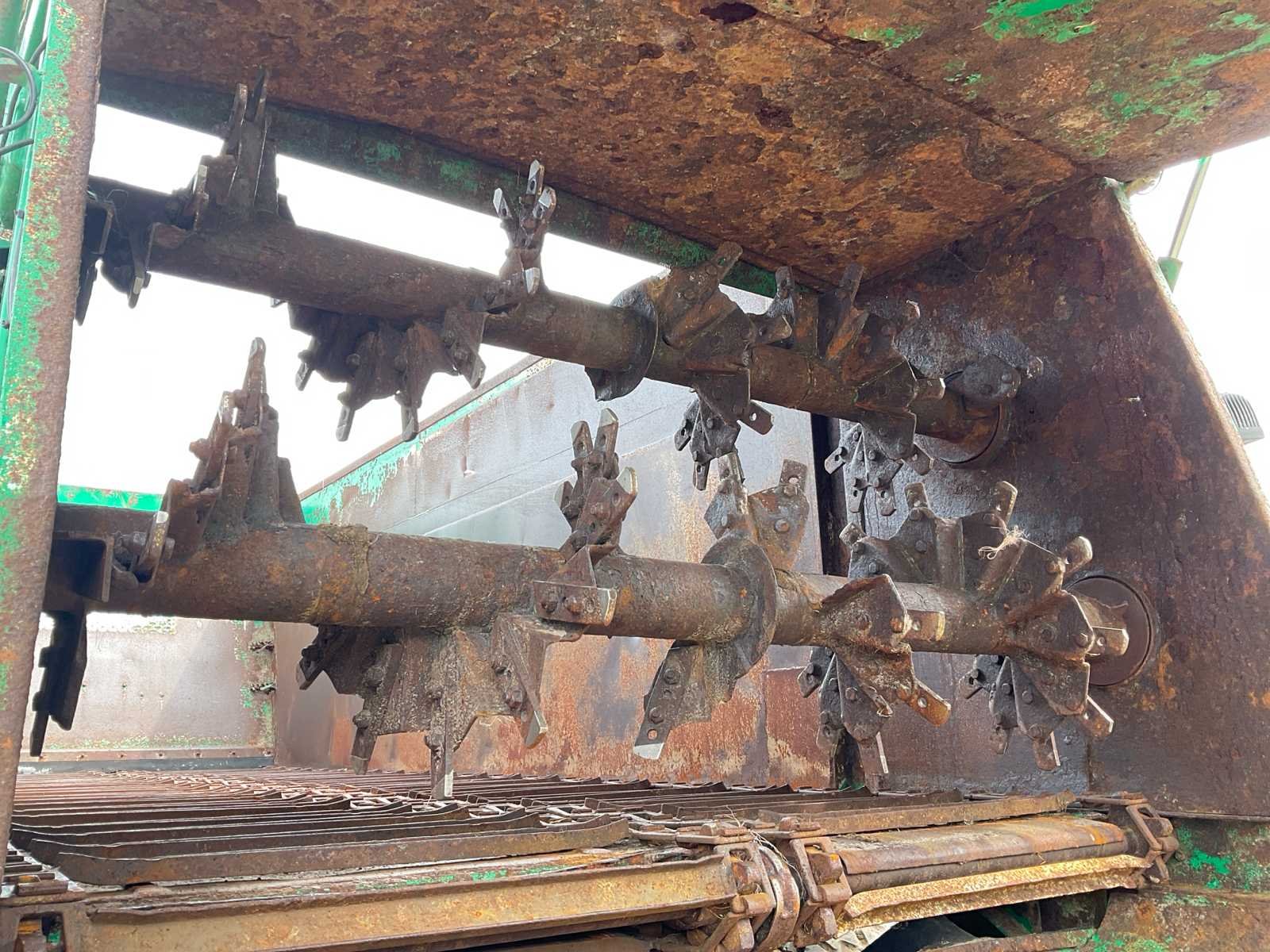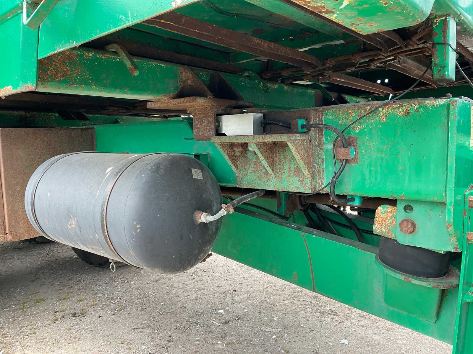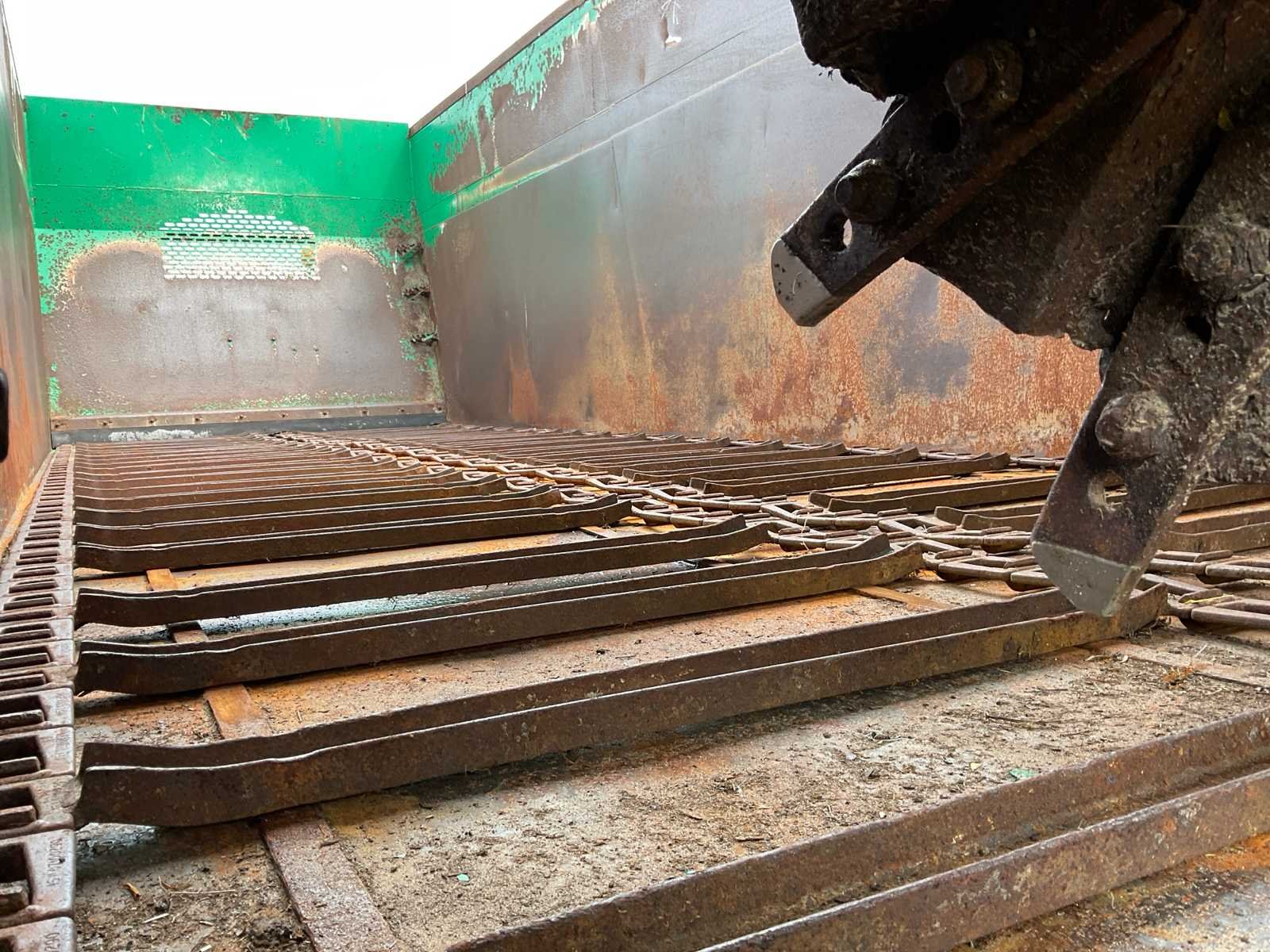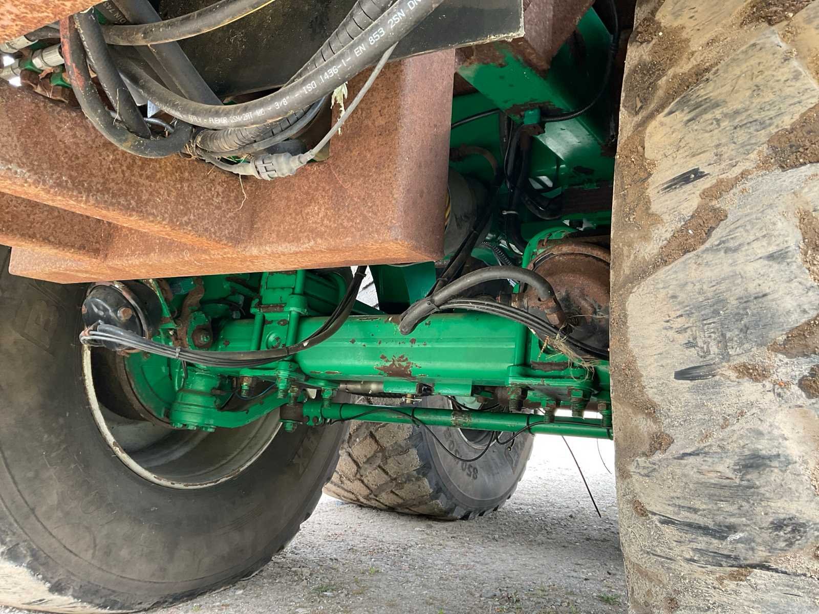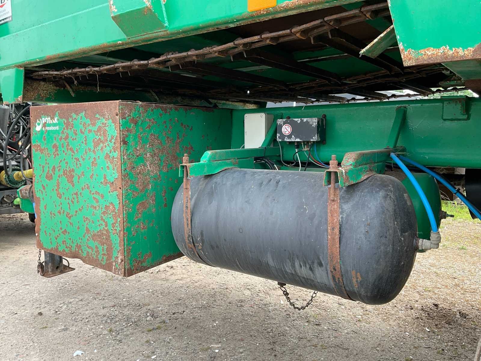 Voorzien van: electro-hydraulische bediening (load-sensing), MDT geikt weegsysteem, luchtdrukwisselsysteem, toerentalbewaking, hydraulisch gedwongen gestuurde achteras, K80 aanspan, automatisch smeersysteem, mechanische steunpoot, luchtremmen, geveerde dissel, hydraulische vering, liftas voor, aftakas aangedreven strooischijven, hydraulische achterklep, hydraulisch doseerschuif, kunststof stootranden, trekhaak achter, bodemketting (HV100 zwaar type vervangen) (stuurcilinder links achter defect, nu vastgezet) Nee Merk: Tebbe Type: HS220 Bouwjaar: 2008 Serienummer: 24271 Bandenmaat: BKT 850/50R30.5 (Alliance rechts/voor) Totale afmeting L: 8700mm Totale afmeting Breedte: 2980mm Totale afmeting Hoogte: 3800mm