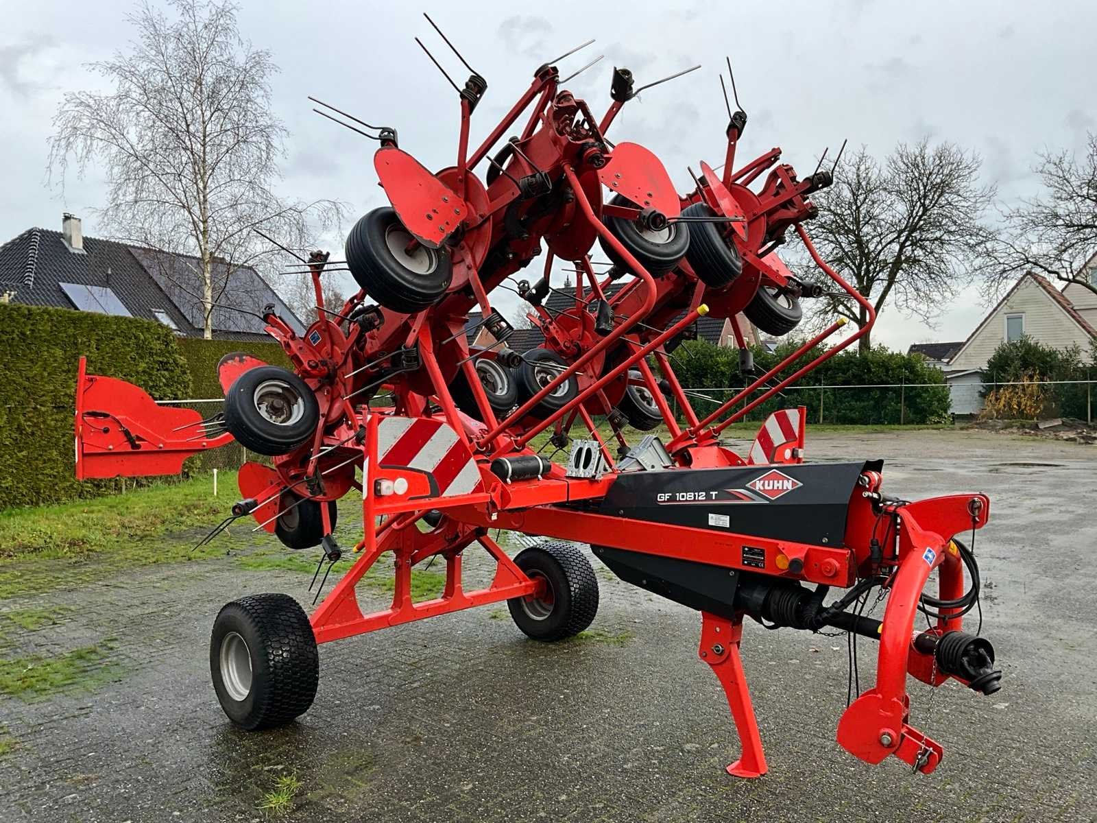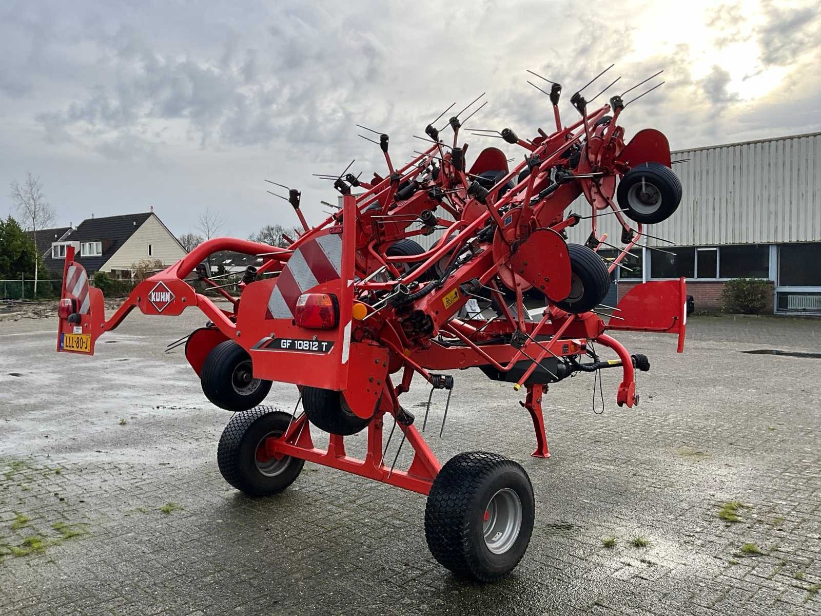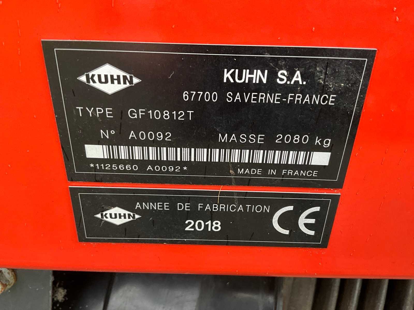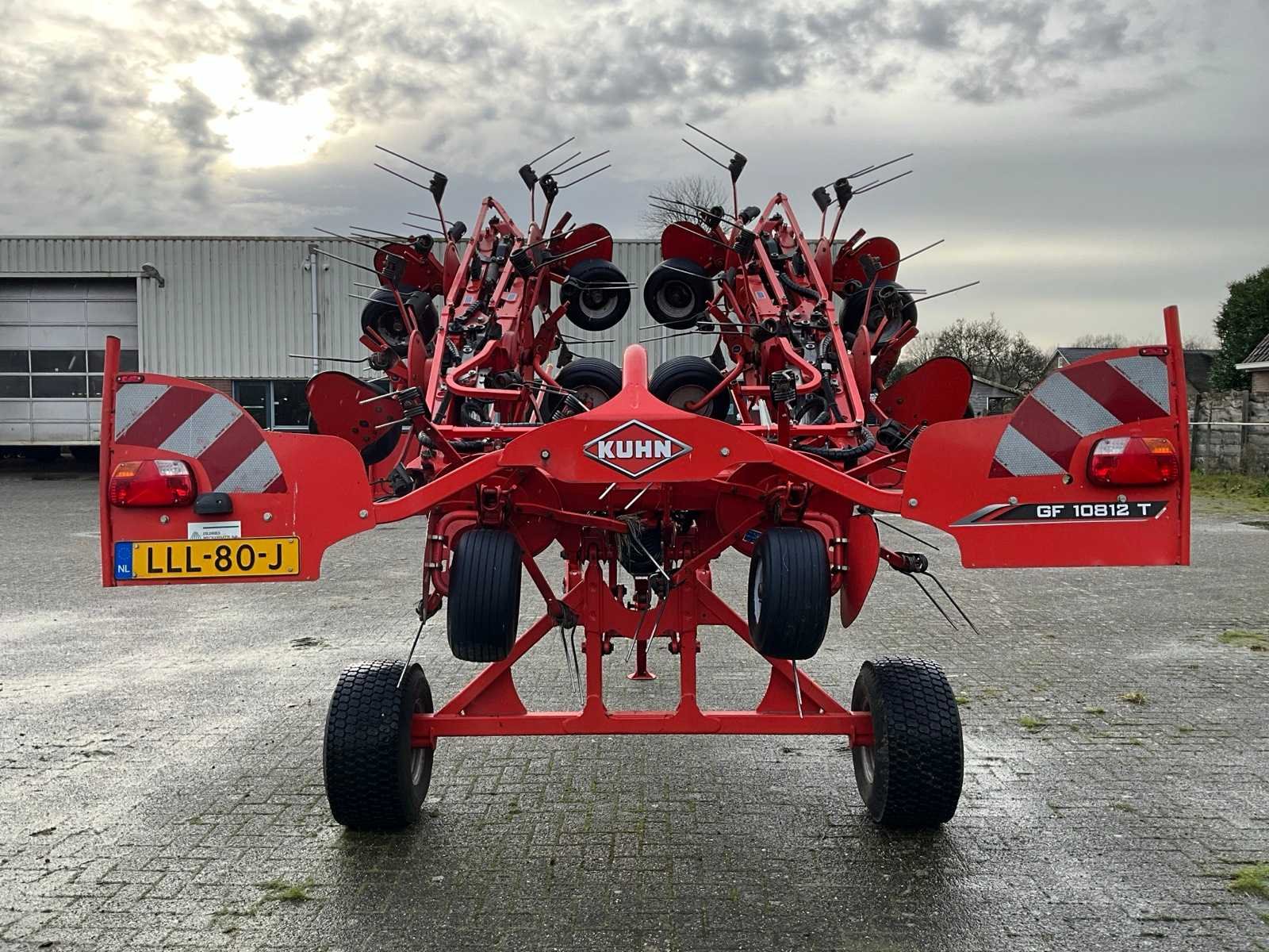 Gedragen uitvoerin; Portaalbok; Tandbeveiliging; Hydr.opklapbaar; Naloop-inrichting; Hydr.schudhoek-verstelling; 10 elementen met elk 6; tandarmen; Hydraulische kopakkerlift; Hydraulische schuinstelling; Antiwikkelkappen; Verlichting met borden Nee Merk: Kuhn Type: GF 10812 T Bouwjaar: 2018 Serienummer: A0092 Kenteken: LLL-80-J Eigen gewicht: 2080kg Werkbreedte: 10800mm