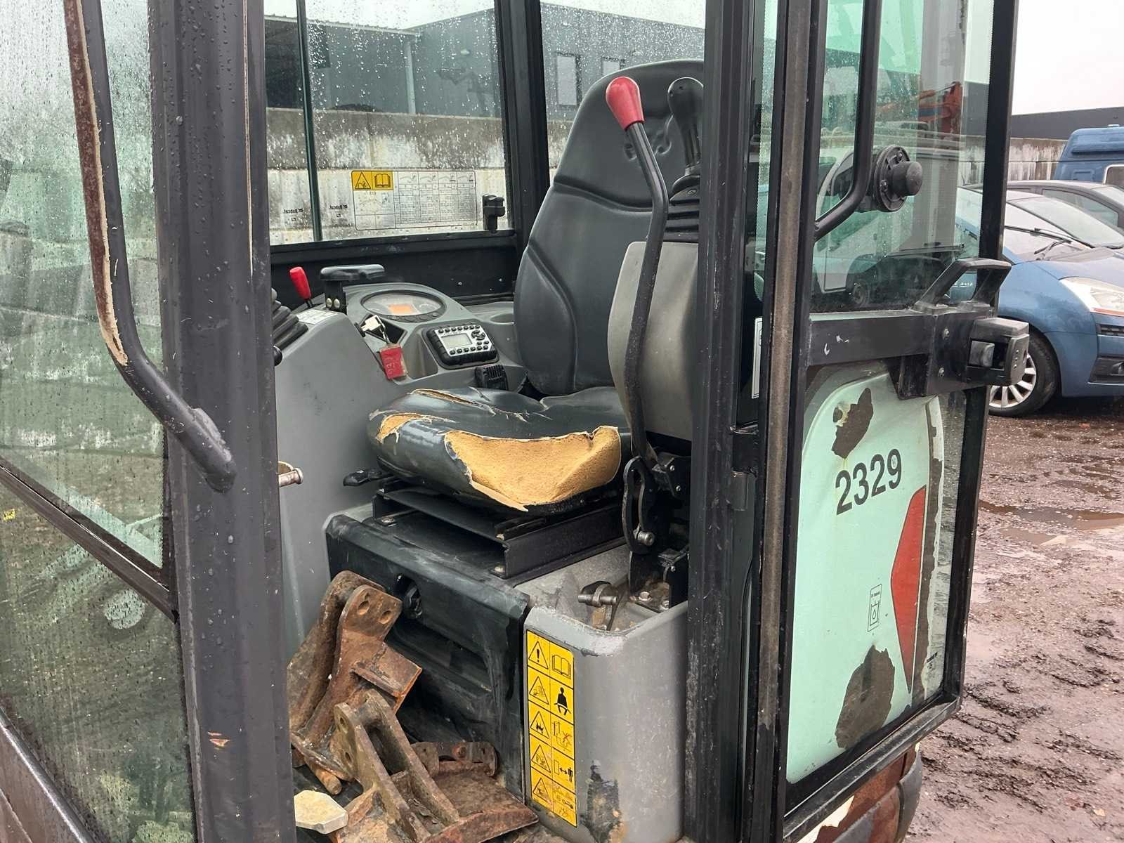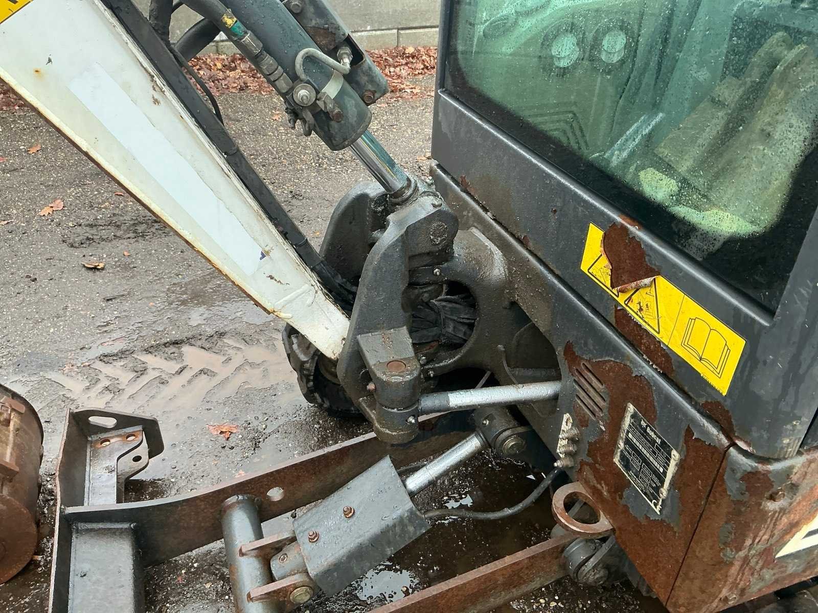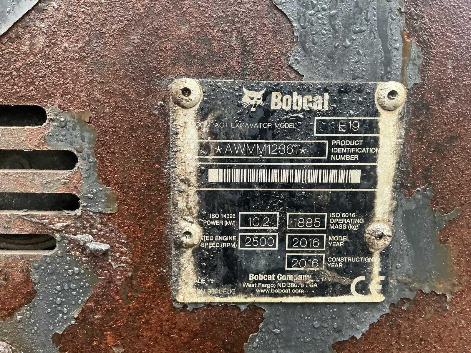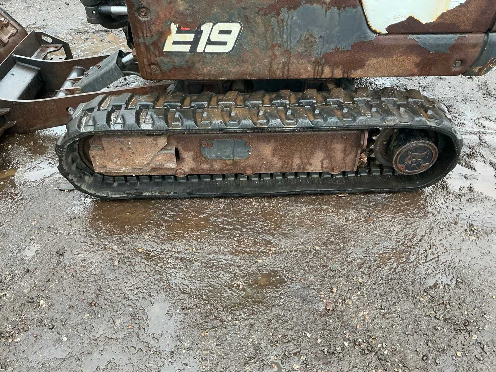 Voorzien van: sloten bak 1000mm, dieplepel 380mm, banaan bak 250mm, vaste pen, 3e functie, werkverlichting, blad 980mm, verbreding stukken, verstelbaar rijwerk 1000/1350mm, verwarming, radio, Nee Merk: Bobcat Type: E19 Bouwjaar: 2016 Serienummer: AWMM12361 Merk motor: Kubota Motorvermogen (kW): 10.2kW Aantal cilinders: 3 Brandstof: Diesel Bedrijfsgewicht: 1885kg Max. werkbereik: 3000mm Inclusief graafbak: Yes Graafbak afm. b: 1000mm Rups breedte: 230mm Afgelezen urenstand: 3140 Eigen gewicht: 1885kg Totale afmeting L: 3900mm Totale afmeting Breedte: 1350mm Totale afmeting Hoogte: 2400mm