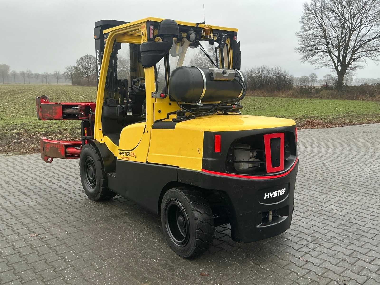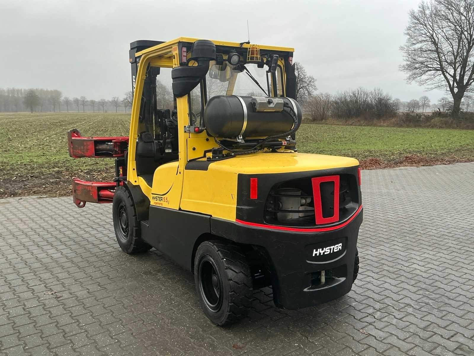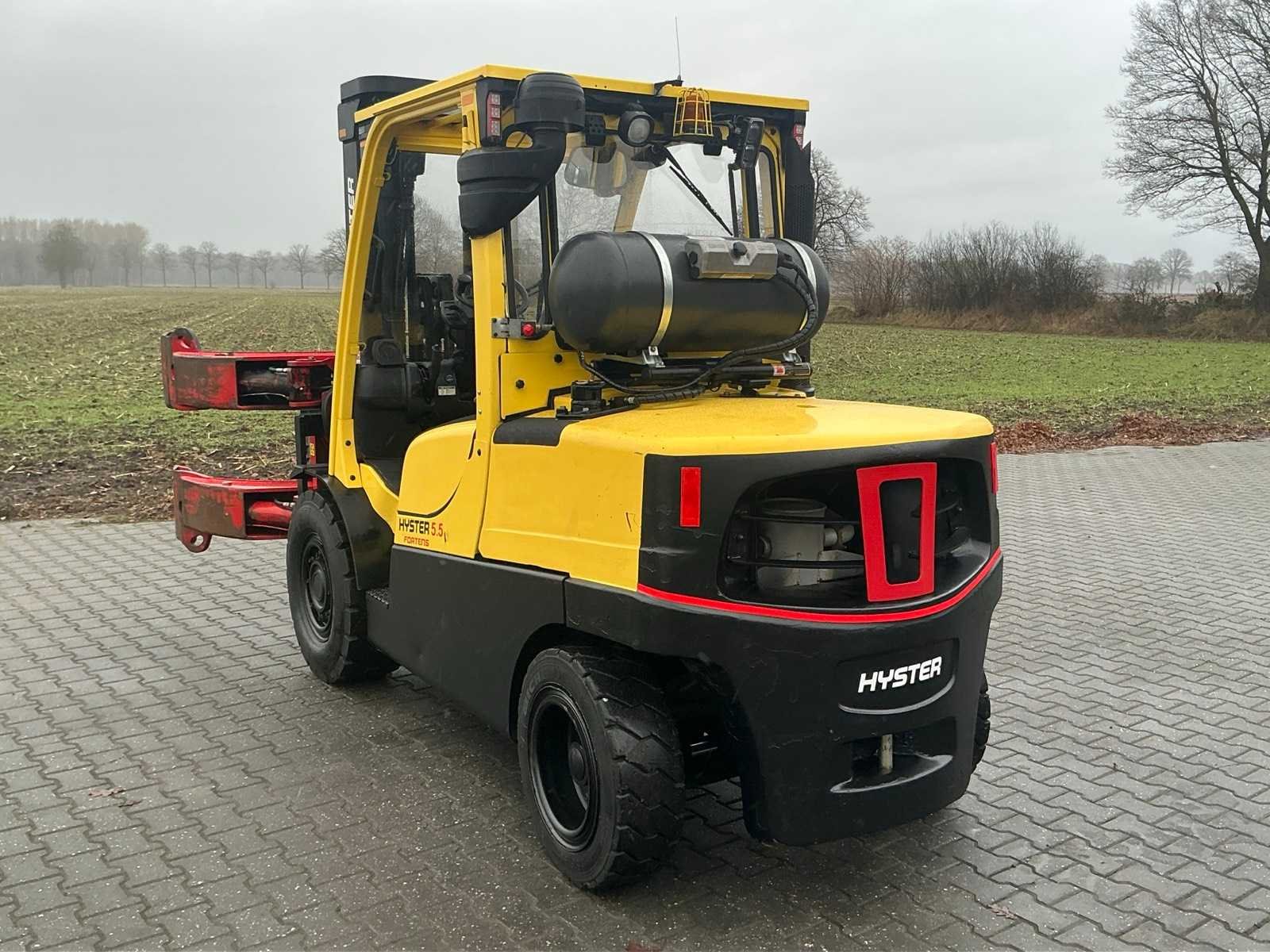 Voorzien van Kubota WG3800 motor, 2 extra hydraulische functies, voorzien van rotatie papierklem. Nee Merk: Hyster Type: H5.5 FT Bouwjaar: 2015 Brandstof: LPG Mast: Triple Soort band: Volrubber banden Aantal wielen: 4 Afgelezen urenstand: 14909 Free-lift: true Triple mast: true Eigen gewicht: 8980kg Hefvermogen: 5500kg Max. hefhoogte: 5000mm Vol rubber banden: true Minimale doorrijhoogte: 2520mm Totale afmeting L: 4500mm Totale afmeting Breedte: 1450mm LPG: true