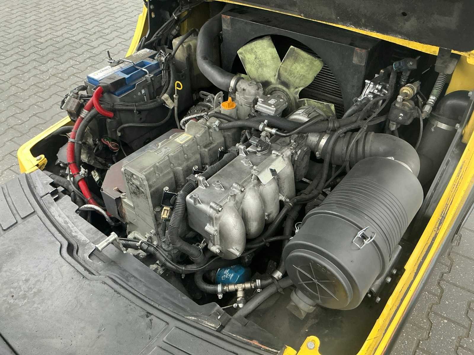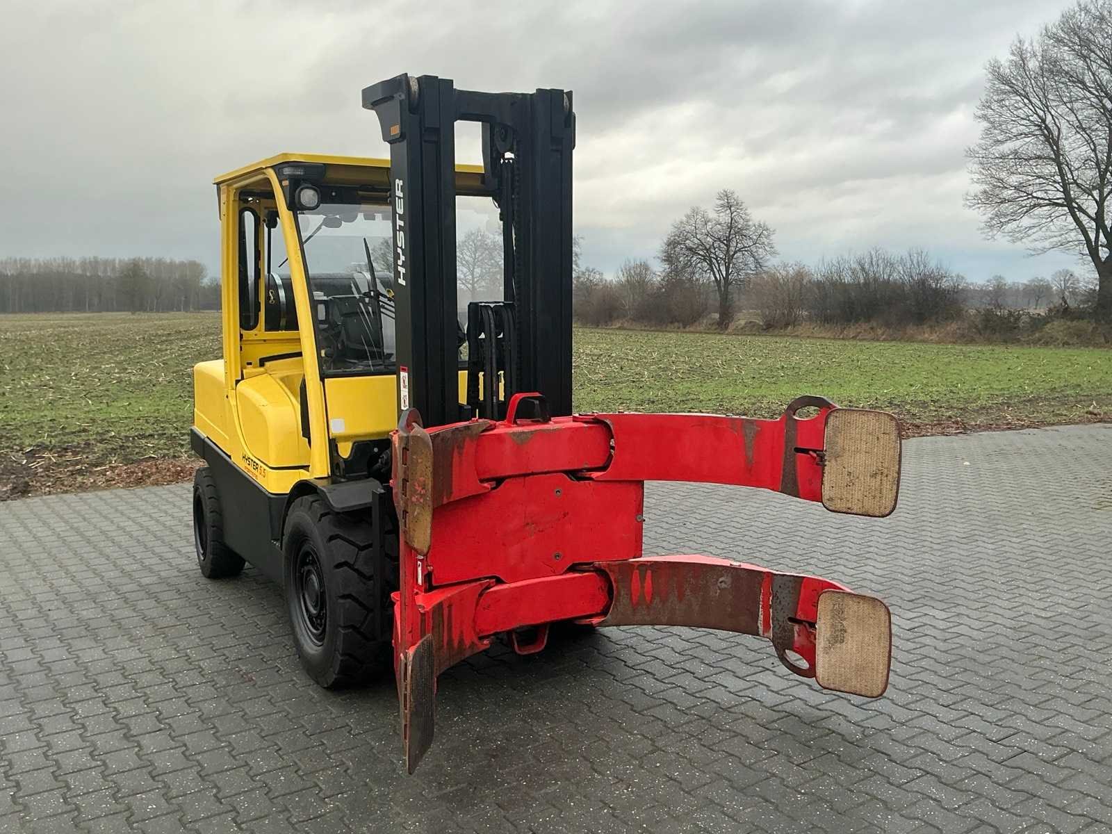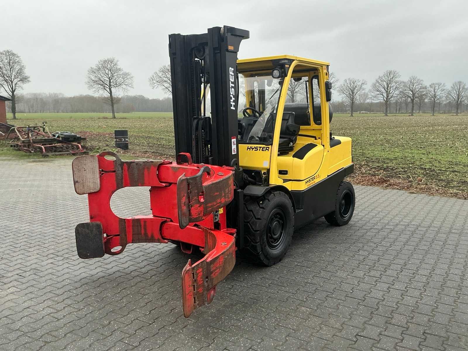 Voorzien van Kubota WG3800 motor, 2 extra hydraulische functies, voorzien van rotatie papierklem. Nee Merk: Hyster Type: H5.5 FT Bouwjaar: 2015 Brandstof: LPG Mast: Triple Soort band: Volrubber banden Aantal wielen: 4 Afgelezen urenstand: 14909 Free-lift: true Triple mast: true Eigen gewicht: 8980kg Hefvermogen: 5500kg Max. hefhoogte: 5000mm Vol rubber banden: true Minimale doorrijhoogte: 2520mm Totale afmeting L: 4500mm Totale afmeting Breedte: 1450mm LPG: true