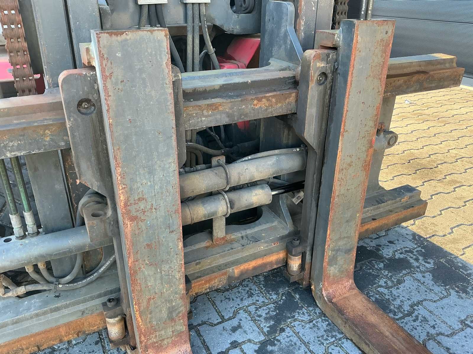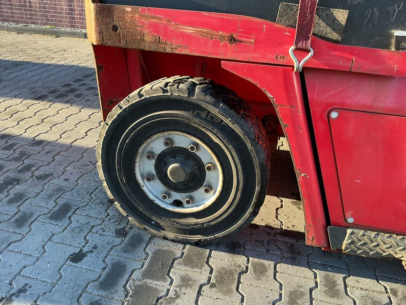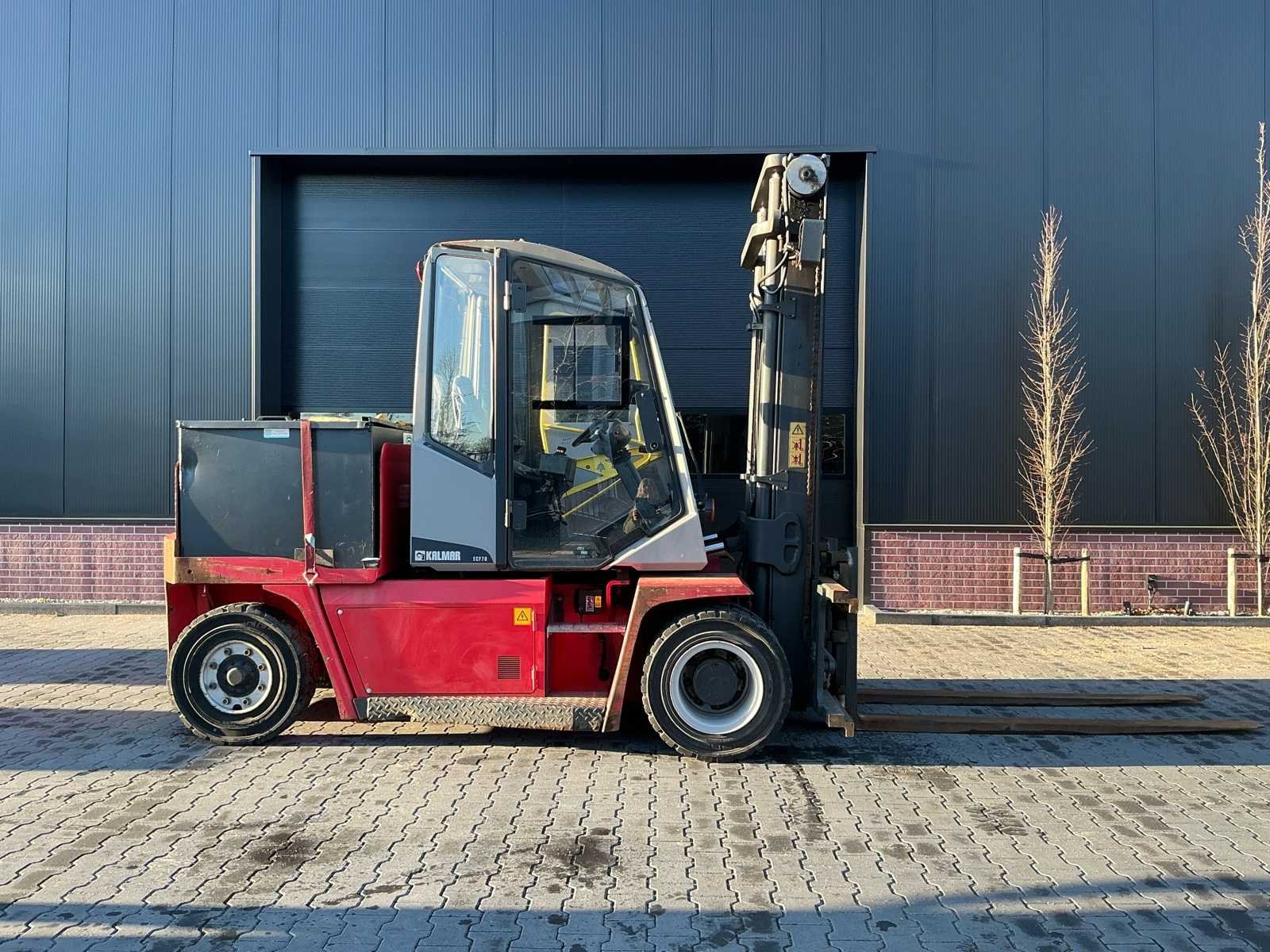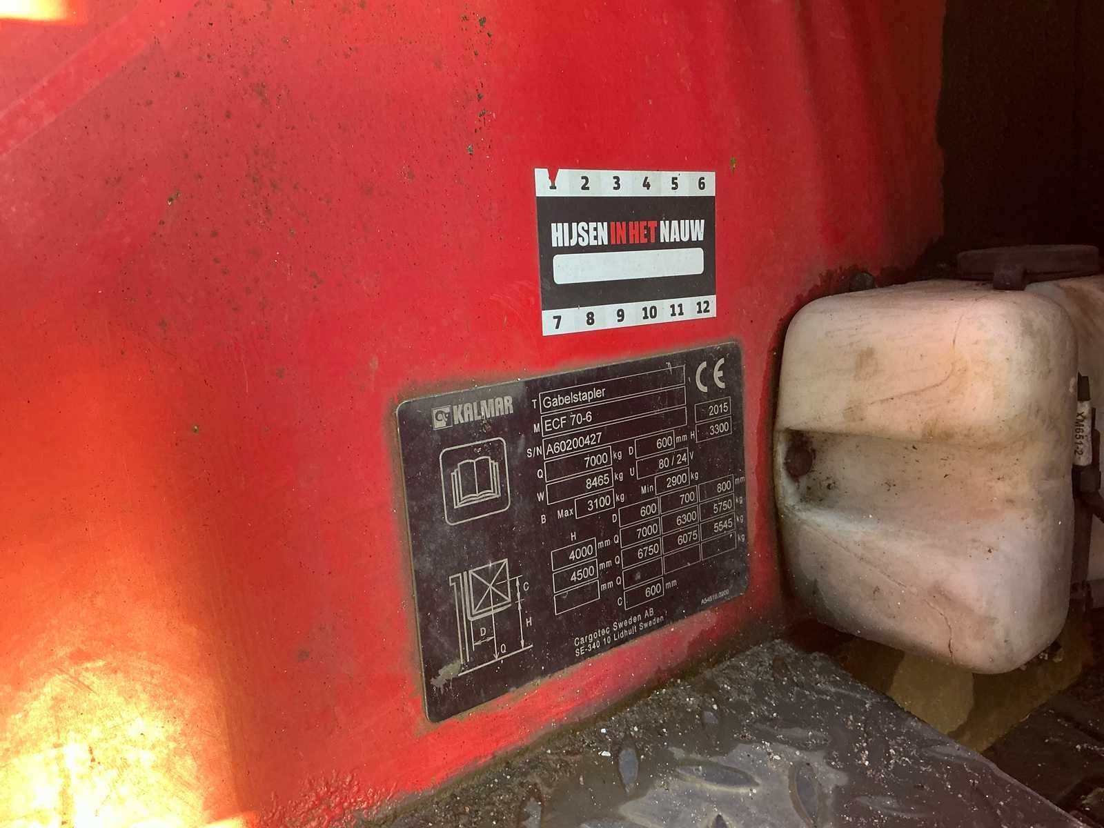 Beschikt over dubbellucht banden voor, kachel, 3 versnellingen, rondom werkverlichting. Vermogen: 80V Accu is vervangen in 2023. Nee Merk: Kalmar Type: ECF70 Bouwjaar: 2015 Brandstof: Elecktrisch Aantal wielen: 6 Ruw terrein: true Accu lader: true Side-shift: true Hydraulisch verstelbare lepels: true Duplex mast: true Eigen gewicht: 11500kg Hefvermogen: 7000kg Lepellengte: 2200mm Min. hefhoogte: 0mm Max. hefhoogte: 4500mm Vol rubber banden: true Minimale doorrijhoogte: 3100mm