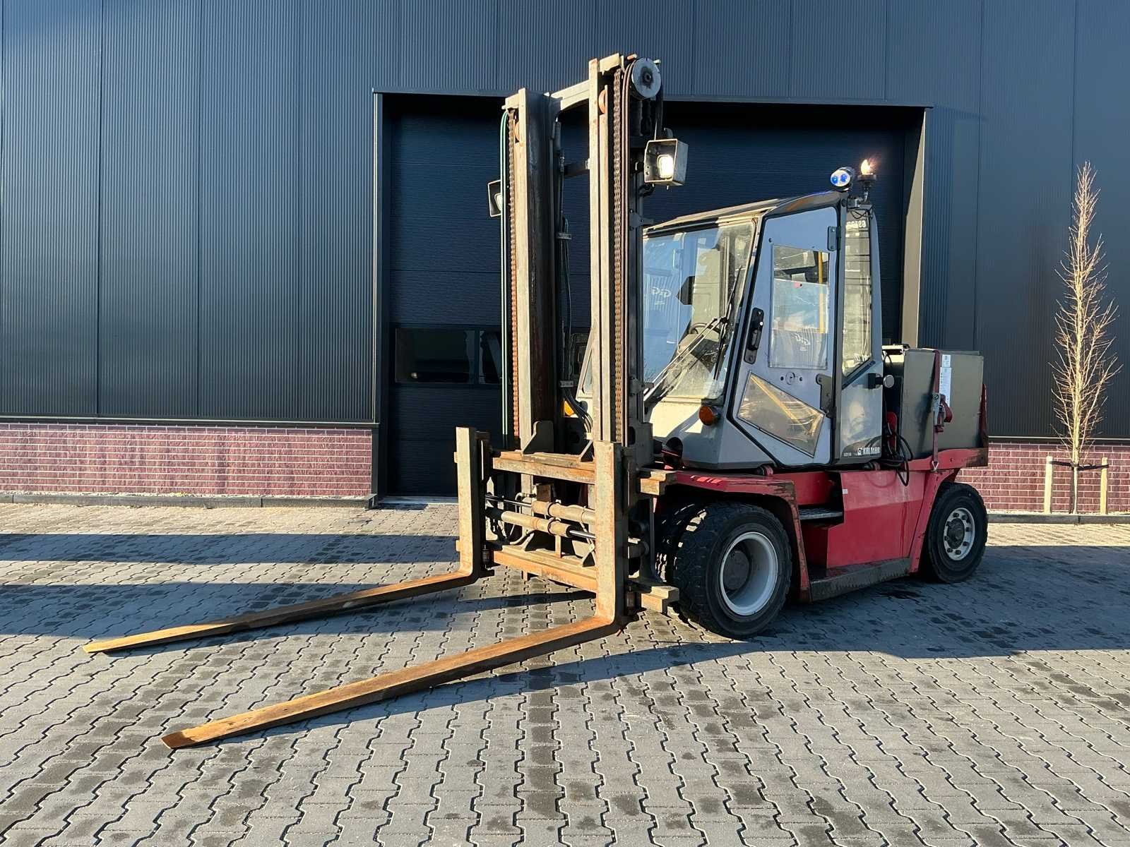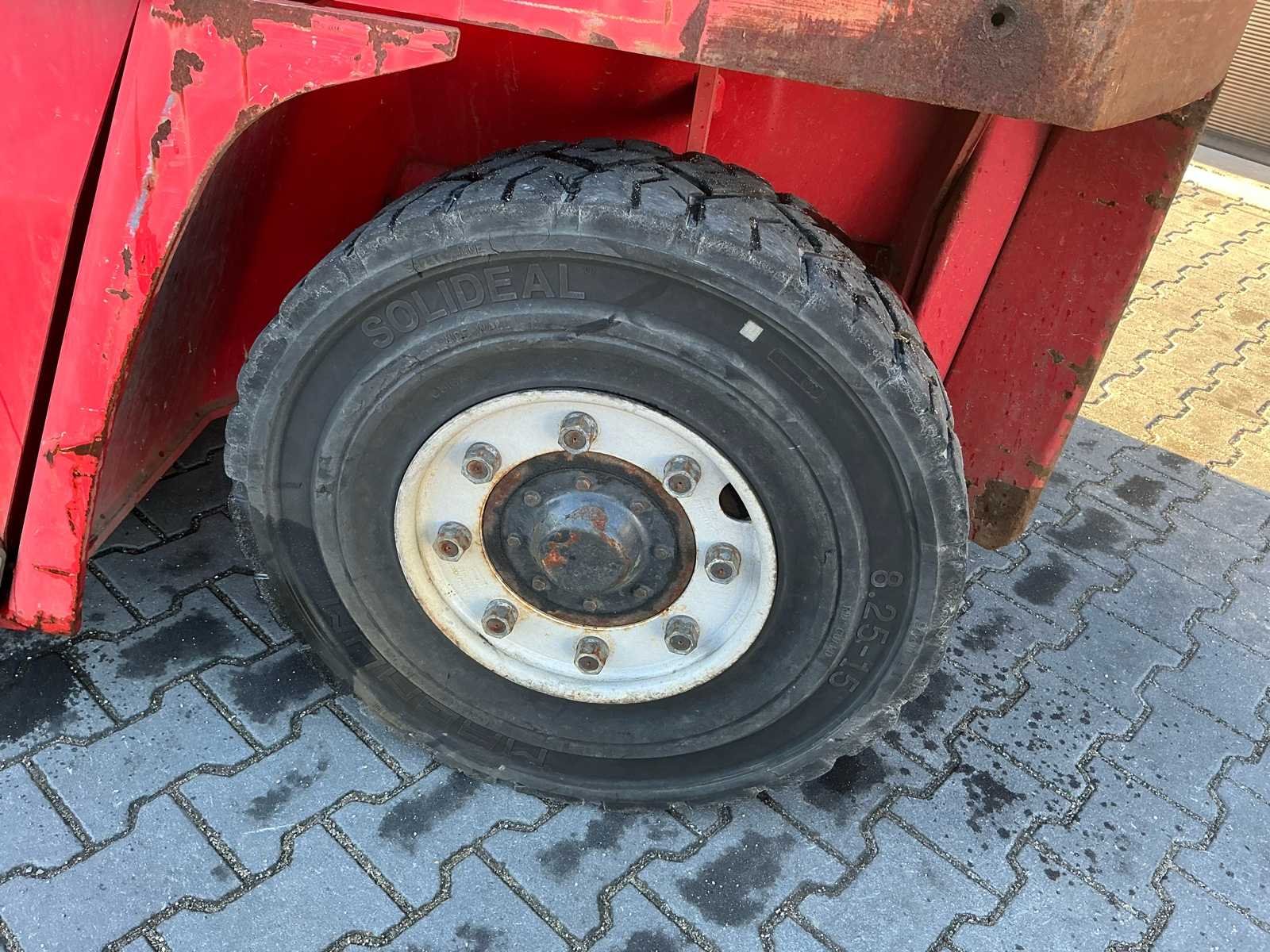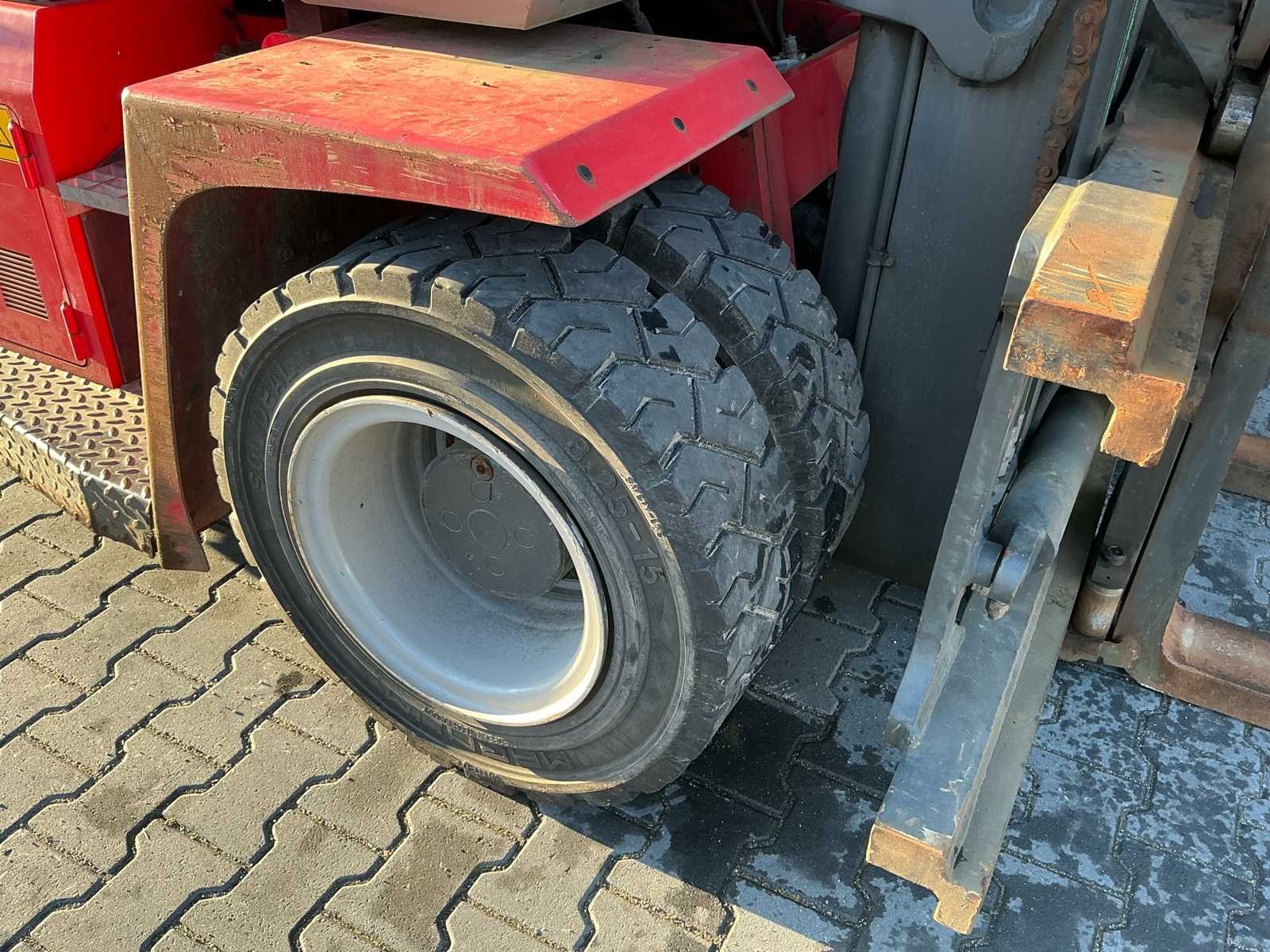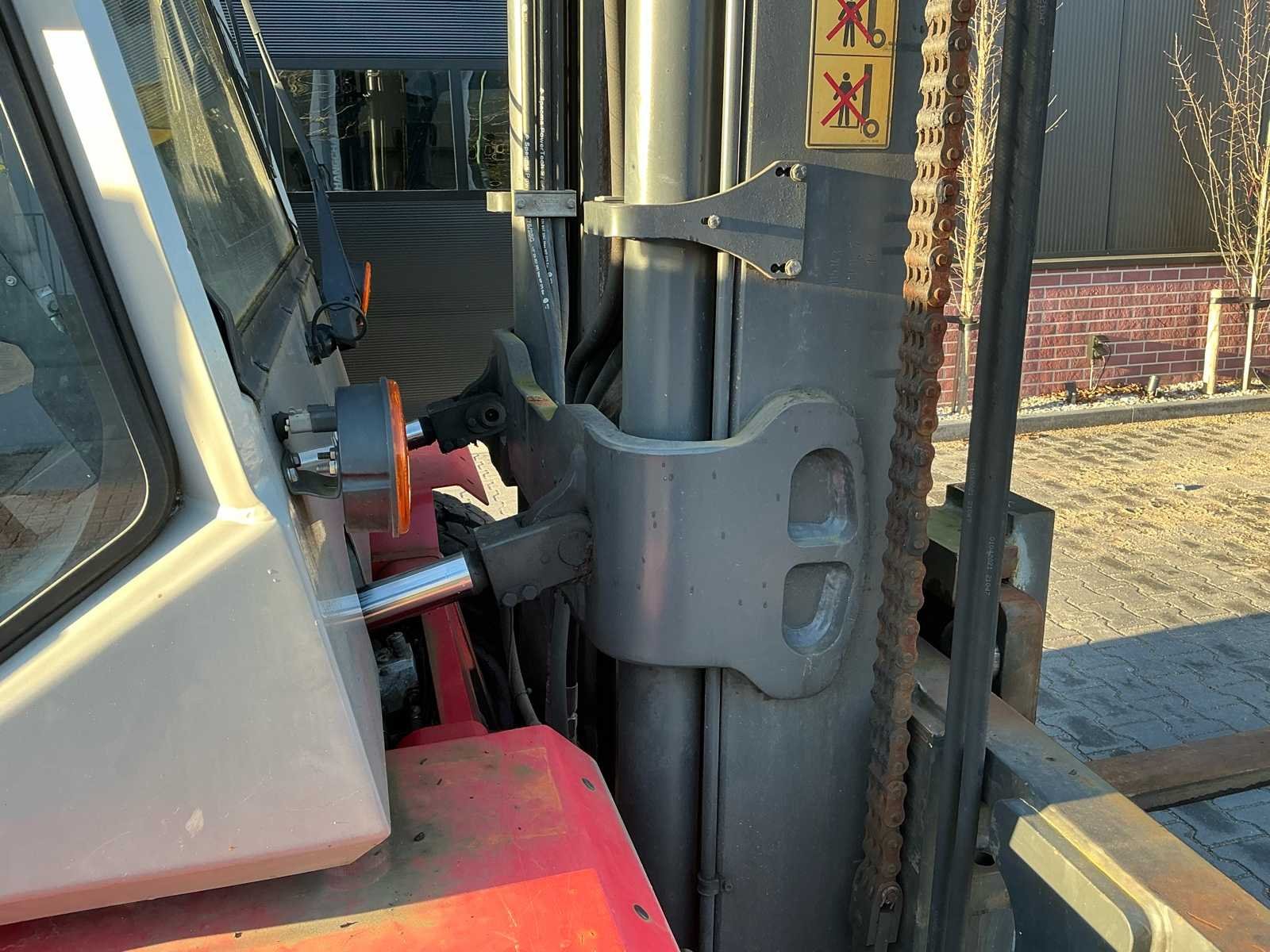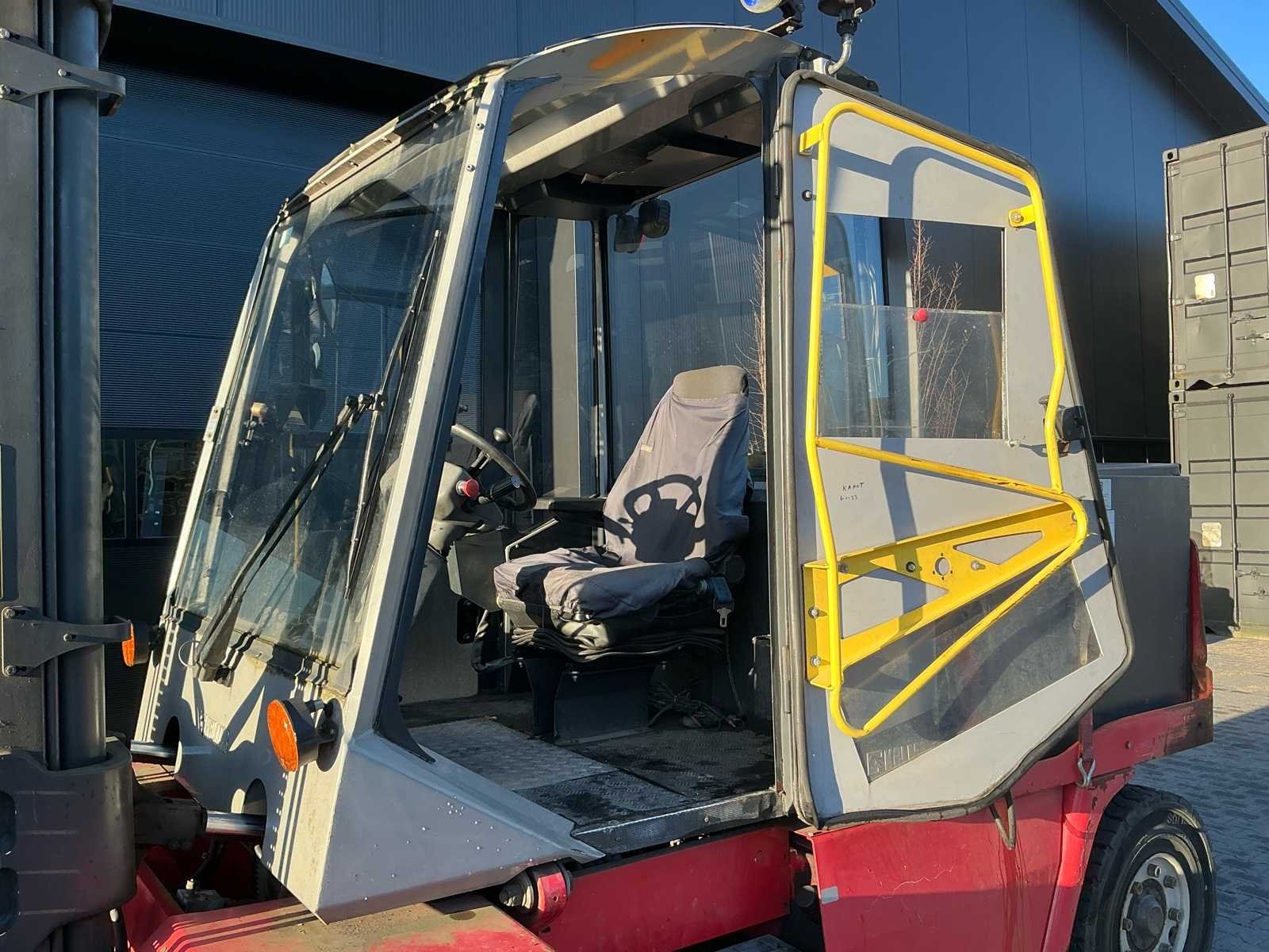 Beschikt over dubbellucht banden voor, kachel, 3 versnellingen, rondom werkverlichting. Vermogen: 80V Accu is vervangen in 2023. Nee Merk: Kalmar Type: ECF70 Bouwjaar: 2015 Brandstof: Elecktrisch Aantal wielen: 6 Ruw terrein: true Accu lader: true Side-shift: true Hydraulisch verstelbare lepels: true Duplex mast: true Eigen gewicht: 11500kg Hefvermogen: 7000kg Lepellengte: 2200mm Min. hefhoogte: 0mm Max. hefhoogte: 4500mm Vol rubber banden: true Minimale doorrijhoogte: 3100mm