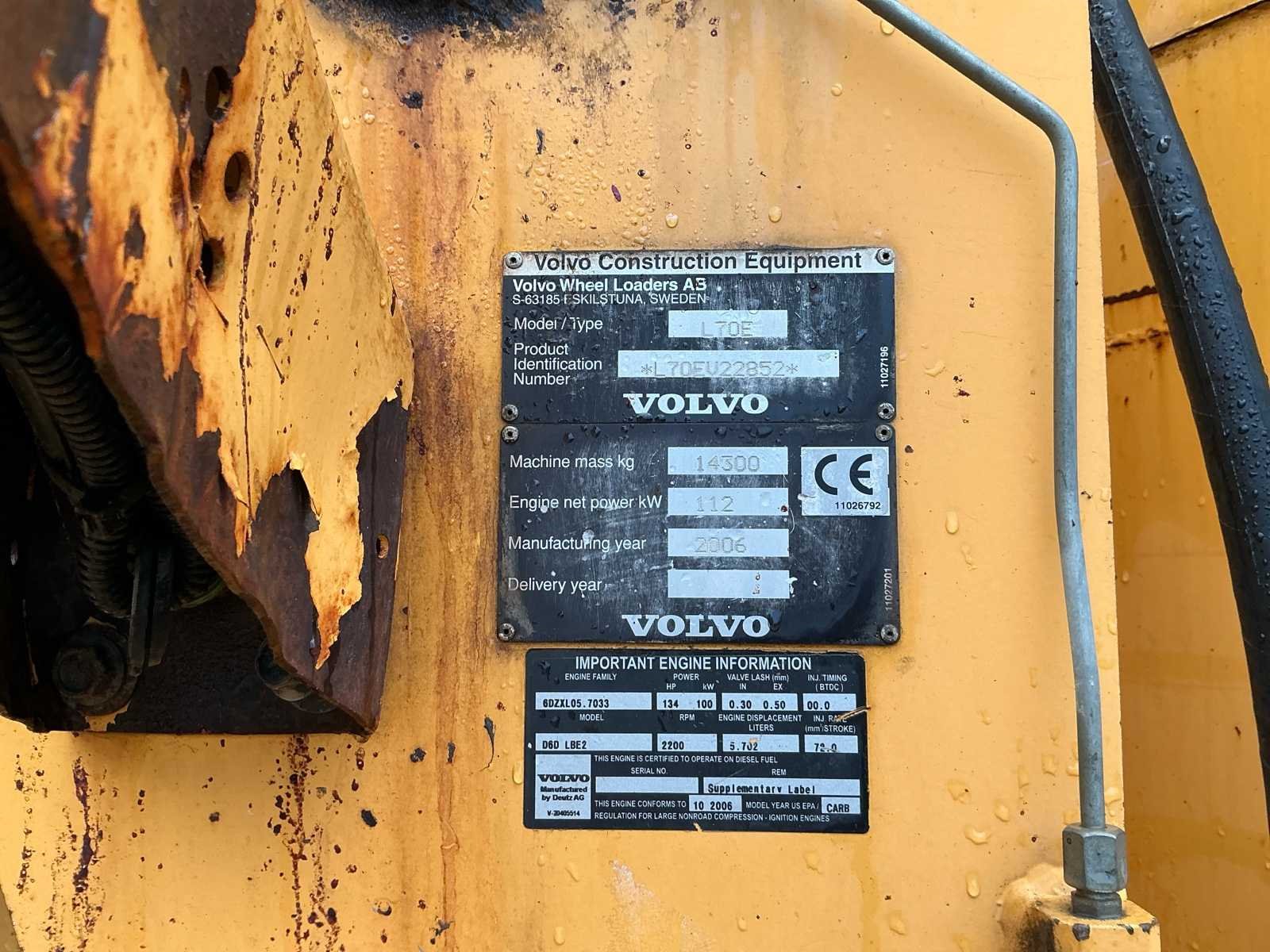 Werkend No Merk: Volvo Type: L70E Bouwjaar: 2006 Serienummer: L70EV22852 Merk motor: Volvo Motorvermogen (kW): 112kW Brandstof: Diesel Bedrijfsgewicht: 14300kg Graafbak afm. h: 250mm Cabine: true Afgelezen urenstand: 19982 Eigen gewicht: 12700kg Totale afmeting L: 7370mm Totale afmeting Breedte: 2550mm Totale afmeting Hoogte: 3260mm