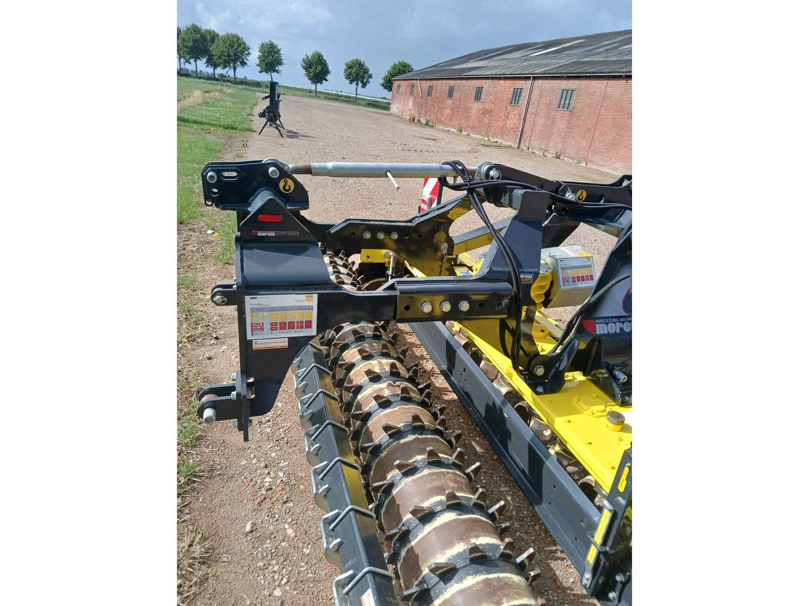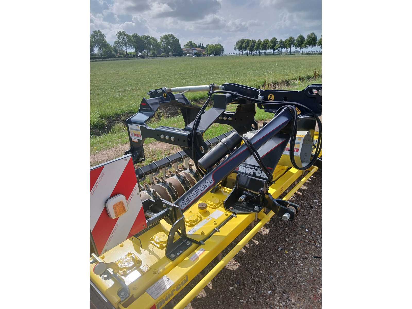 Front aanbouw,. Voorzien van: frontbok met 3punts aansluiting, pakkerrol, egalisatiebalk, verlichting, aftakasaandrijving, egalisatiebord met spindel en veerbevestiging, vaste verhoogde zijborden, heavy-duty single speed gearbox t/m 210 pk en extra set samurai tanden. 3 tanden per rotor, dubbele afdichting per rotor. Nee Merk: Moreni Bouwjaar: 2022 Serienummer: 242 Werkbreedte: 3000mm Totale afmeting L: 2050mm Totale afmeting Breedte: 3070mm Totale afmeting Hoogte: 1300mm
