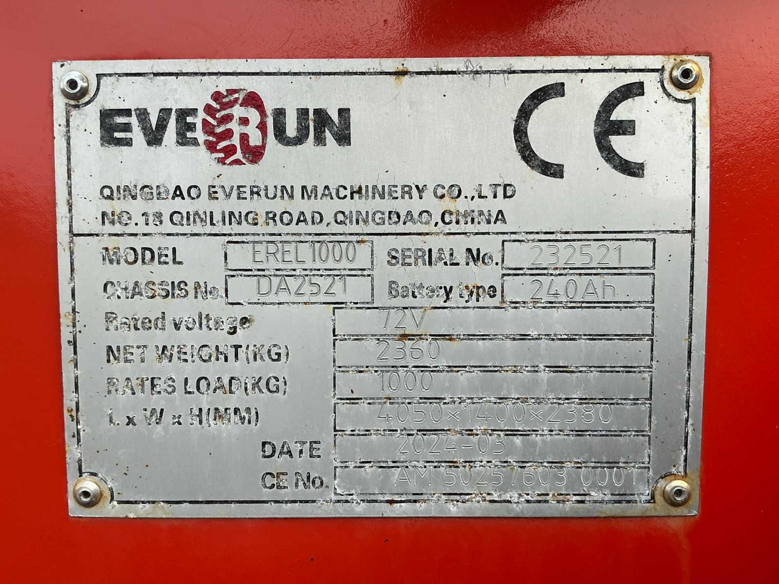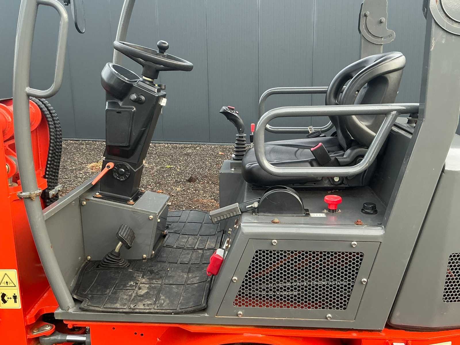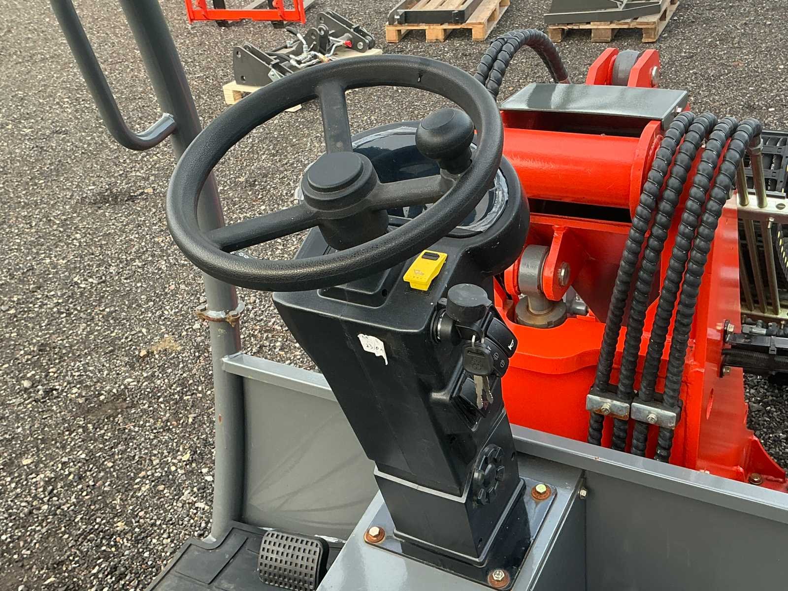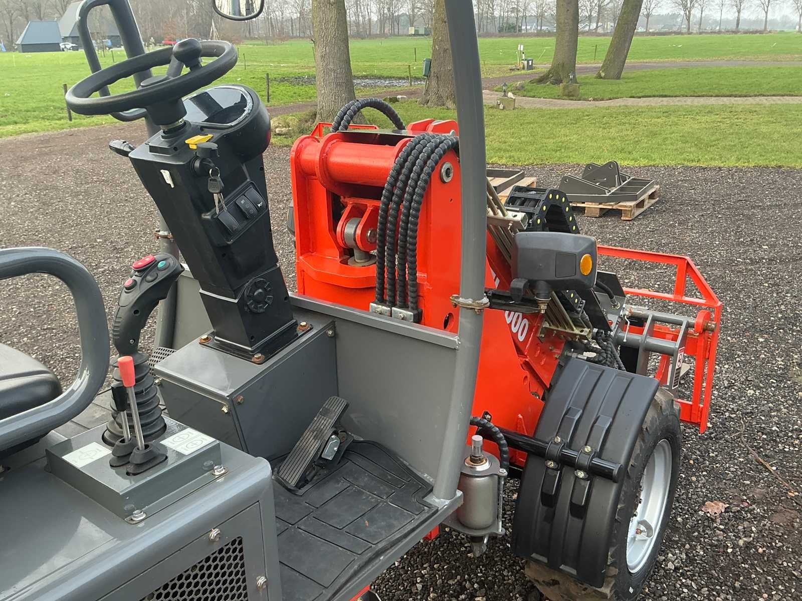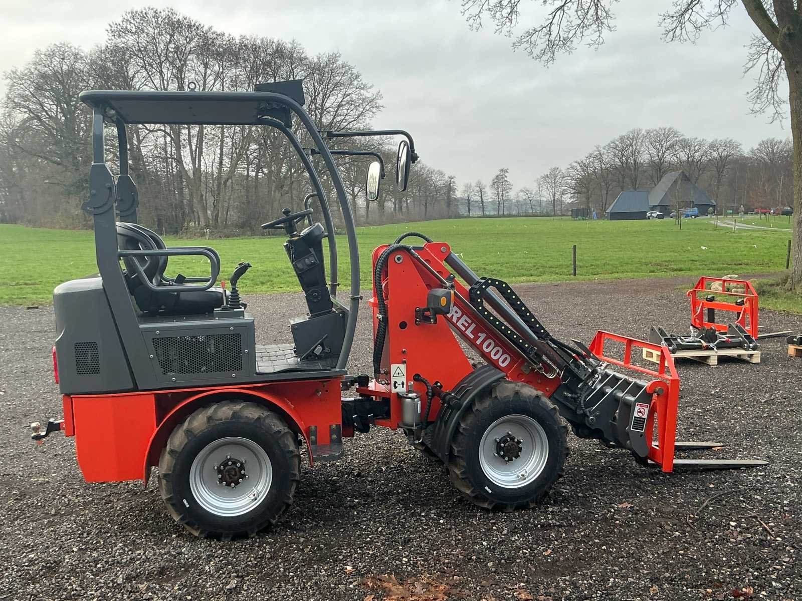 Voorzien van graafbak 0,23m³ en vorkenbord. Nominaal Hefvermogen: 900kg, max hefvermogen: 1100kg. Max storthoogte: 2715mm, spoorbreedte: 960mm. Voorzien van hydraulische snelkoppeling, load sensing, extra hydraulisch ventiel, led werkverlichting, trekhaak, verstelbare zitting en stuurkolom. Voorzien van lithium accu 72V/250A. Nee Merk: Everrun Type: Erel 1000TE Bouwjaar: 2024 Serienummer: 232521 Brandstof: Elektrisch Graafbak afm. b: 1280mm Bandenmaat: 29x12,50-15 Cabine: true Afgelezen urenstand: 12 Eigen gewicht: 2310kg Totale afmeting L: 3822mm Totale afmeting Breedte: 1270mm Totale afmeting Hoogte: 2380mm