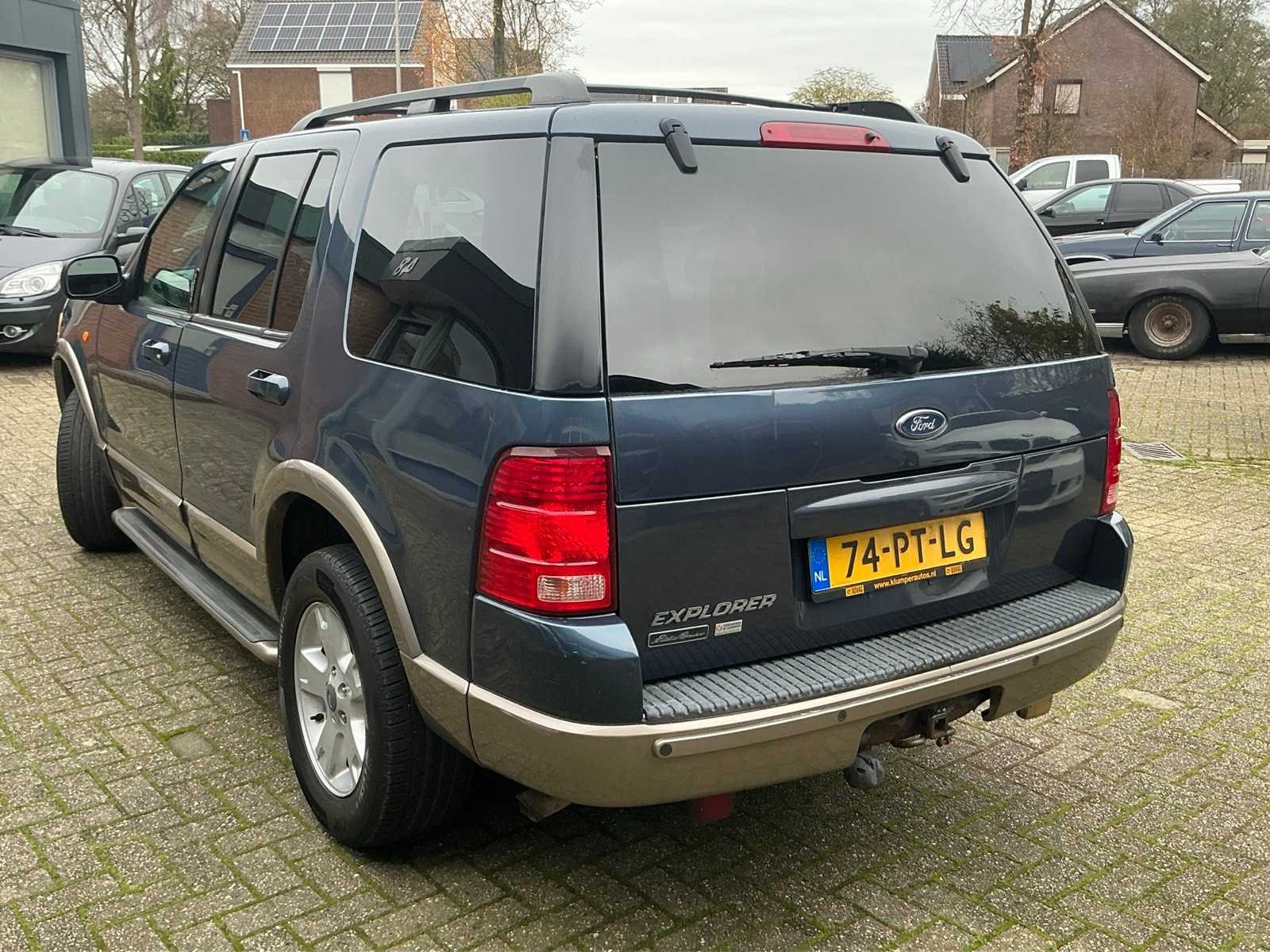 Kilometerstand loopt op. Wordt nog dagelijks mee gereden. Veel opties. Er is een kijkmoment gepland Vrijdag 23/1 tussen 10.00 -12.00 uur om de auto te inspecteren. Aanmelding hiervoor via mail naar: w.vanderveen@tbauctions.com. Nee Kenteken: 74-PT-LG Merk: Ford Model: Explorer Type: Eddie Bauer editie 4.6 v8 Bouwjaar: 2004 Cilinderinhoud: 4600cc Vermogen (kW): 175kW Brandstof: benzine Laadvermogen: 0kg Datum eerste toelating: 2002-11-01 Datum eerste toelating (NL): 2004-11-26 APK vervaldatum: 2026-11-03 Vermogen (pk): 238hp Aantal zitplaatsen: 7 Maximaal trekgewicht ongeremd: 750kg Maximaal trekgewicht geremd: 3500kg Kleur: blauw Transmissie: Automatisch Emissieklasse: 3 Aantal deuren: 4 Aantal sleutels: 2 Ledig gewicht: 2100kg Velgmaat: 17 Bruto BPM (NL): 13899€ Rest BPM: 0€ Aantal cilinders: 8 Carrosserie: SUV Nationaliteit documenten: NL Onderhoudshistorie: Grote beurt gehad, nieuwe bobines, tansmissie olie en transmissie filter nieuw. Nieuwe apk Carfax Link: https://was.carfax.eu/v0/api/ccdid/5100016408/svc/201/vinreg/74PTLG/checksum/eyJhbGciOiJIUzI1NiIsInR5cCI6IkpXVCJ9.eyJleHAiOjE3Njk4NTk1NzR9.sn37hY0n7-Z6ya9gb37EV_-mWa0sV9peB8Kmhlhz620 Start en rijdt: Ja startinformatie : Ja Airconditioning: true Leder bekleed: true Vierwielaandrijving 4x4: true