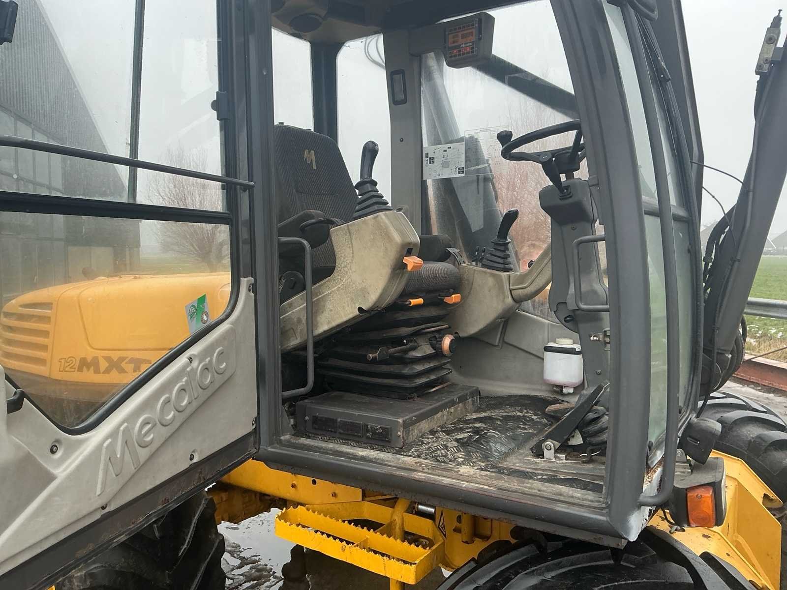 Voorzien van palletvorken; 2 graafbakken (85cm/145cm breed); 2 hydraulische stempels; extra functie op de giek; maaikorf functie Nee Merk: mecalac Type: 12MXT Bouwjaar: 2001 Serienummer: 026497 Merk motor: Cummins Kenteken: TDT05J Aantal cilinders: 4 Brandstof: Diesel Bandenmaat: 700/40 32.5 Cabine: true Afgelezen urenstand: 10208 Totale afmeting L: 5000mm Totale afmeting Breedte: 2800mm Totale afmeting Hoogte: 3250mm