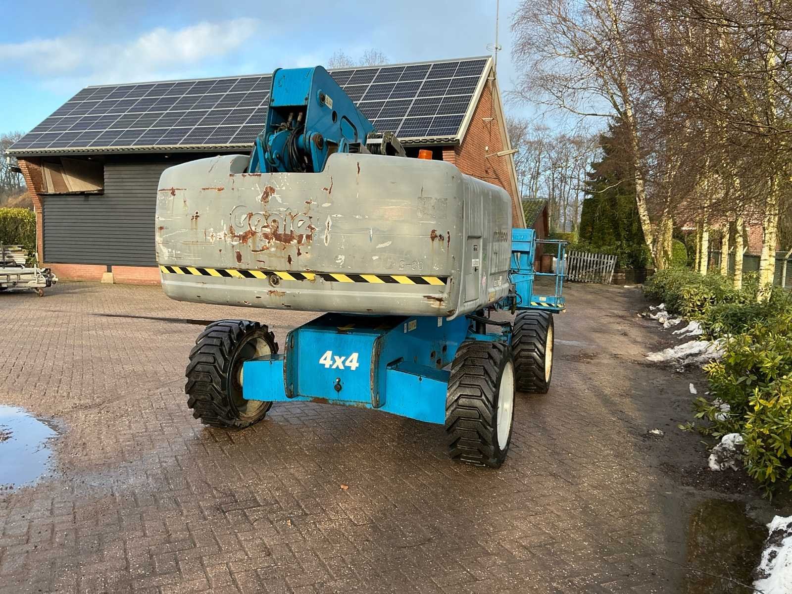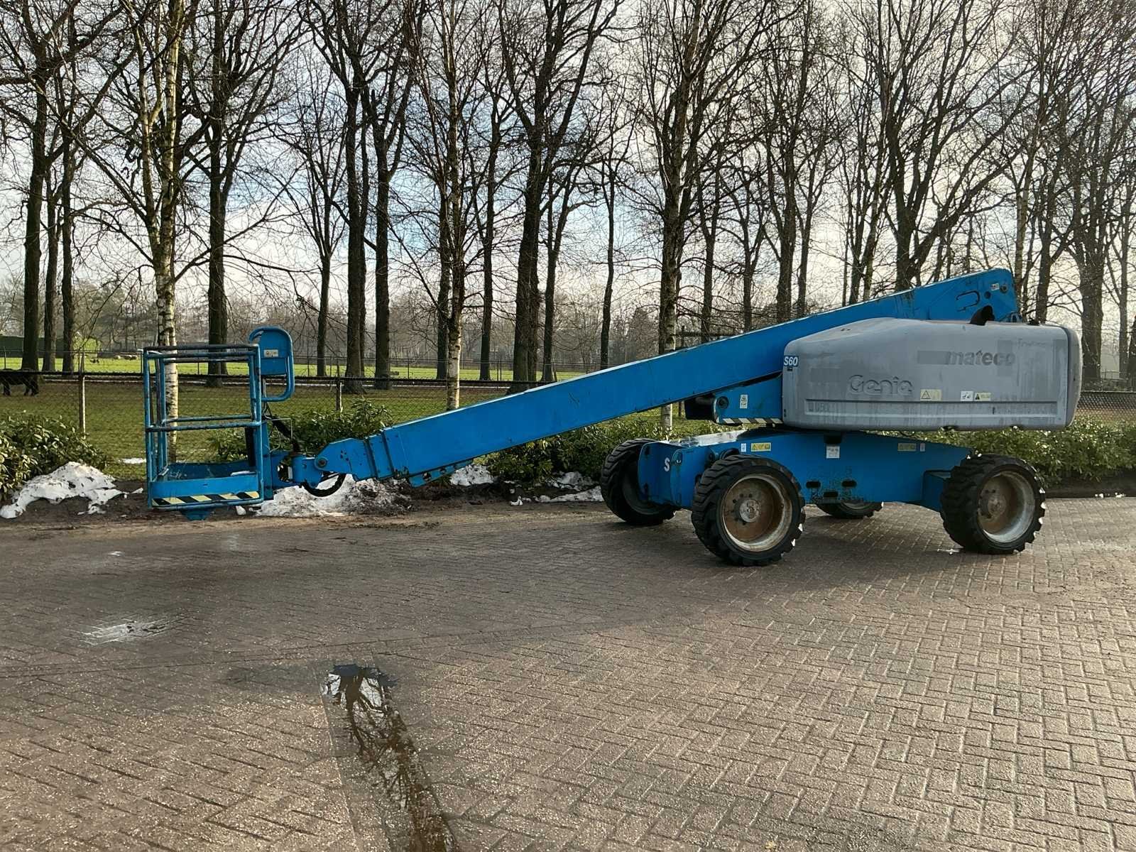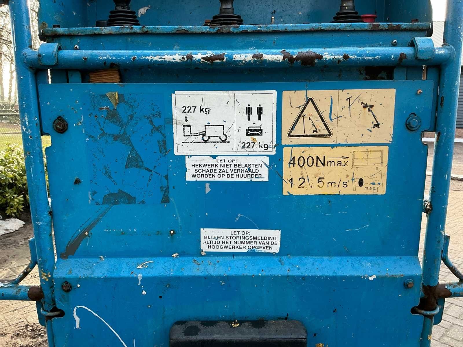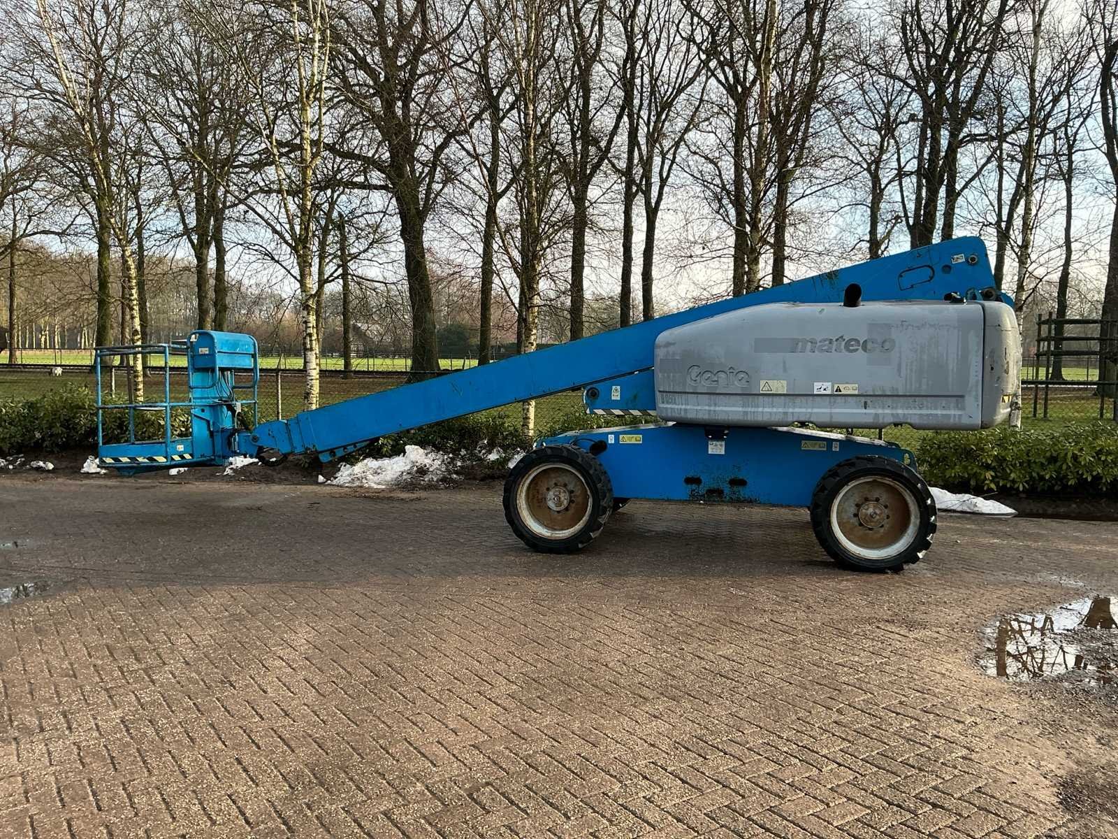 No Merk: Genie Type: S60 Diesel: true Telescoop hoogwerker: true Werkhoogte: 20300mm Horizontale rijkwijdte: 15480mm Plateau afm. l: 760mm Plateau afm. b: 2240mm Platform capaciteit: 227kg Afgelezen urenstand: 5822 Eigen gewicht: 9385kg Totale afmeting L: 8510mm Totale afmeting Breedte: 2240mm Totale afmeting Hoogte: 2720mm