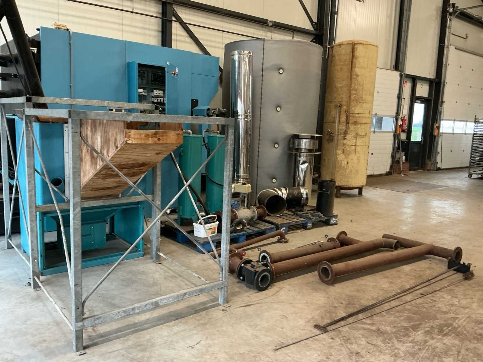 Bouwjaar 2017 Voorzien van: complete documentatie, pelletkachel, Boiler, expansievat, rookkanaal, voorraadbak, stelling voor bigbacks, leidingen en toebehoren, drukregelaar, mengklep. Heeft droog en donker opgeslagen. Nee Merk: Centrometal Type: CPREG-1 Serienummer: 37920 Vrijstaand: true Vermogen: 600kW Lengte: 410 Breedte: 180 Hoogte: 250