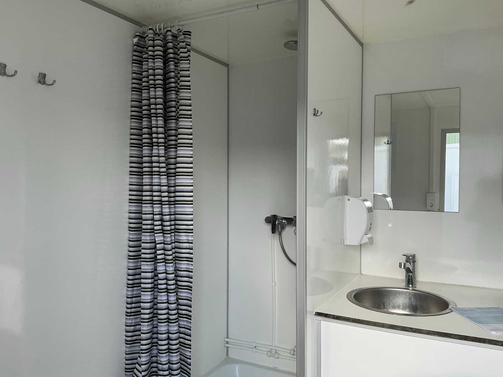 Voorzien van: 3x complete doucheruimte voorzien van toilet met toiletrolhouder vuilnisbak en toiletborstel, wasbak met kraan en spiegel en zeeppompdispenser, bankje, douchebak met douchekraan en gordijn, electrische kachel, verlichting, trapje, technische ruimte per doucheruimte ( 30L boiler, antivrieskachel, spoelbak toilet), aansluiting 1x 110 PVC, 1x 3/4 wateraansluiting, 1x 400V 16A aansluiting, steunpoten Nee Merk: Easywagen Type: 660 Bouwjaar: 2018 Afmeting l: 6600mm Afmeting b: 2500mm Afmeting h: 2900mm Aantal ramen: 3 Aantal toiletten: 3 Aantal wastafels: 3 Aantal douches: 3 Eigen gewicht: 2000kg