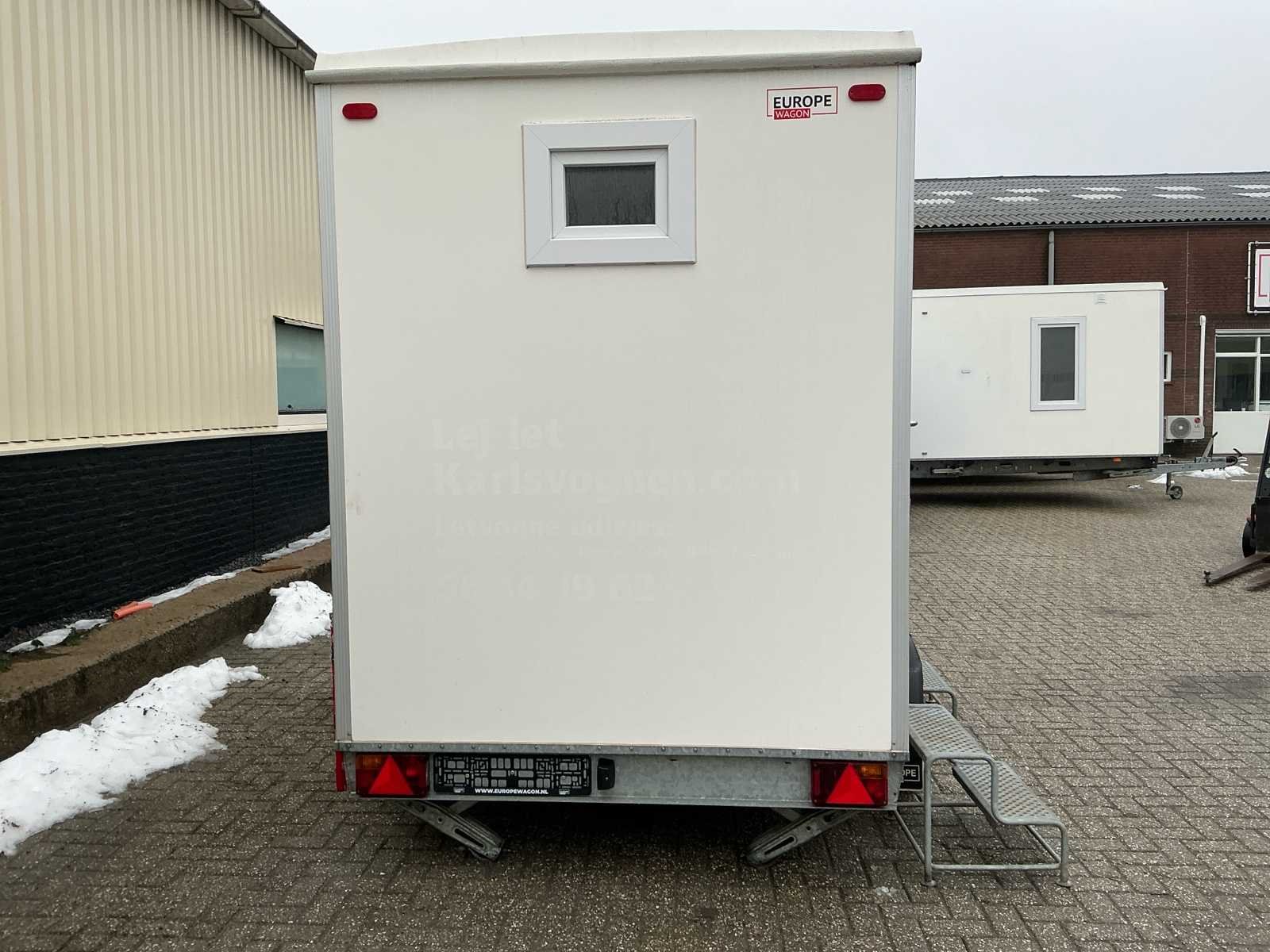 Voorzien van: per unit toilet, wcrolhouder, raam, papierrolhouder, wastafel met thermostaatkraan, ophanghaakjes, afvalbak, verlichting, buitenverlichting, verlichting op aanhanger, opstaptreden, trekhaakkoppeling, neuswiel, handrem, boiler, slot, verloopsnoer, steunpoten, spiegel, electrische kachel, sleutels Nee Merk: Europewagon Type: Dubbele toiletunit Afmeting l: 2450mm Afmeting b: 2150mm Afmeting h: 2100mm Aantal ramen: 2 Aantal toiletten: 2 Aantal wastafels: 2 Totale afmeting L: 3540mm Totale afmeting Breedte: 2150mm Totale afmeting Hoogte: 2700mm