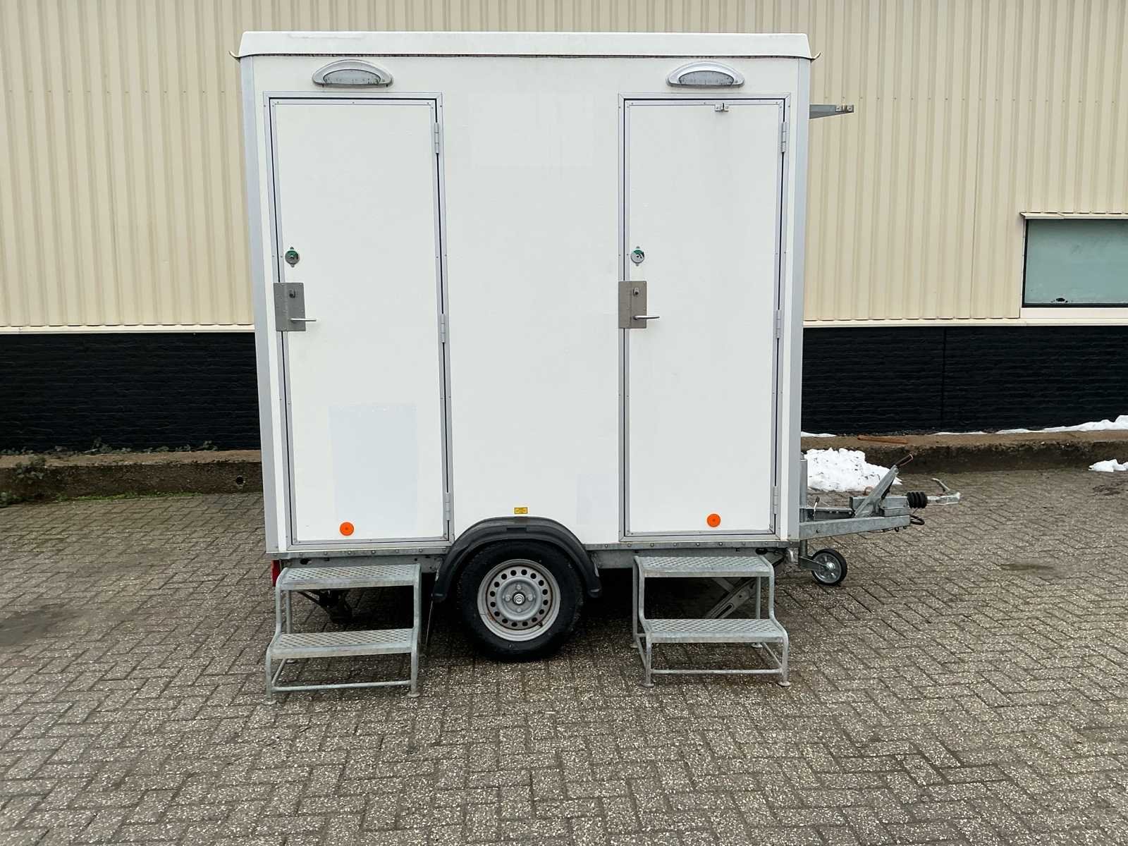Voorzien van: per unit toilet, wcrolhouder, raam, papierrolhouder, wastafel met thermostaatkraan, ophanghaakjes, afvalbak, verlichting, buitenverlichting, verlichting op aanhanger, opstaptreden, trekhaakkoppeling, neuswiel, handrem, boiler, slot, verloopsnoer, steunpoten, spiegel, electrische kachel, sleutels Nee Merk: Europewagon Type: Dubbele toiletunit Afmeting l: 2450mm Afmeting b: 2150mm Afmeting h: 2100mm Aantal ramen: 2 Aantal toiletten: 2 Aantal wastafels: 2 Totale afmeting L: 3540mm Totale afmeting Breedte: 2150mm Totale afmeting Hoogte: 2700mm