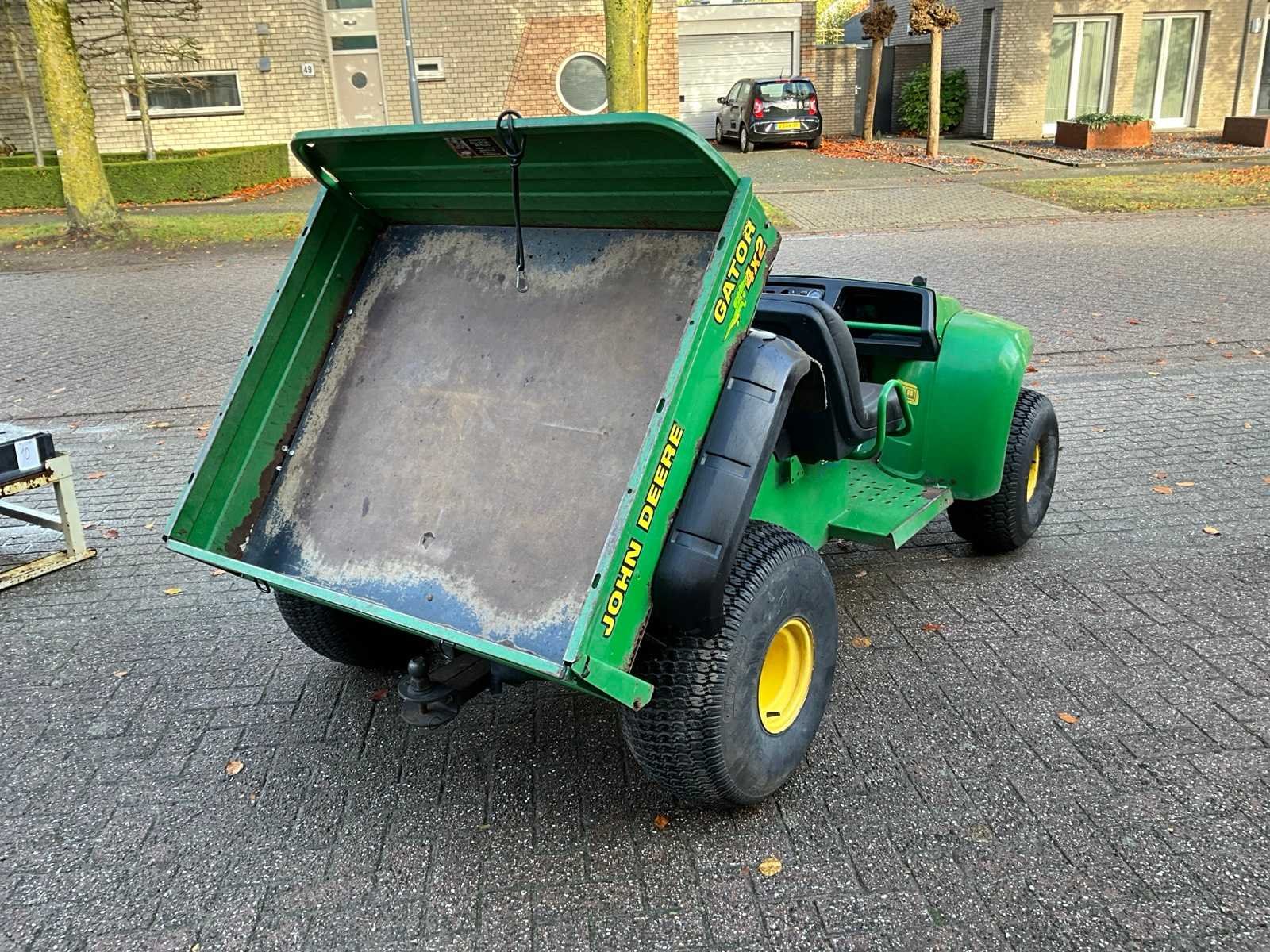 Voorzien van Kawasaki benzinemotor; voorzien van nieuwe stoeltjes; afgelezen urenstand 2513 uren; trekhaak; corrosie aan de kiepbak; Nederlands kenteken; kentekenpapieren; Nee Merk: John Deere Bouwjaar: 2004 Kenteken: TZP-35-F Laadvermogen: 0kg Vermogen (pk): 0 Kleur: niet van toepassing
