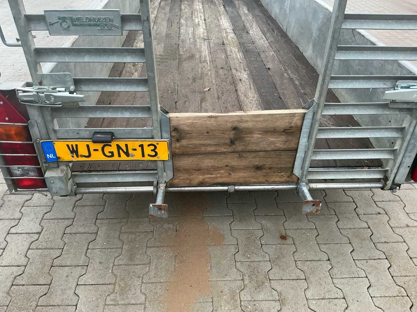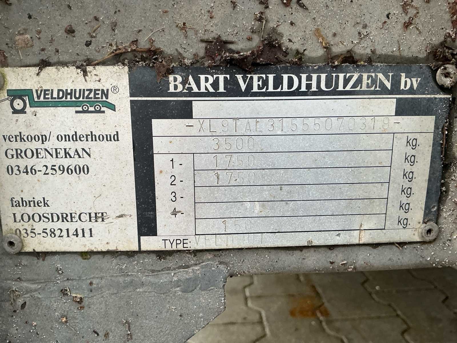 Voorzien van: Bart Veldhuizen tandemasser bak/plateau-aanhangwagen met maximaal toegestane massa 3.500 kg, twee geremde assen van 1.750 kg, eigen gewicht ca. 900–1.100 kg, laadvermogen ca. 2.400–2.600 kg, gegalvaniseerd stalen chassis, houten laadvloer, laadbak ca. 4,0–4,5 m lang en ca. 2,0–2,1 m breed, geschikt voor machine- en materiaaltransport. Nee Merk: Bart Veldhuizen Type: G47-1 Bouwjaar: 2003 Chassisnummer: XL9TAL31555070319 Aantal assen: 2 Laadbak afmeting l: 410cm Laadbak afmeting b: 210cm Laadvermogen: 2500kg Datum eerste toelating: 23-06-2003 Kenteken: WJ-GN-13 Kentekenpapieren compleet?: true Hoogte: 130cm Lengte: 650cm Breedte: 240cm Nationaliteit documenten: Nederlands Zelf rijdend exporteren: Mogelijk