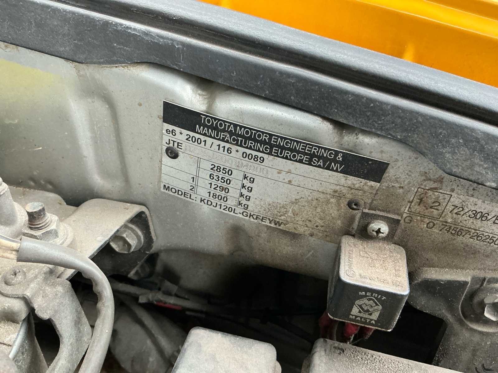 Voorzien van extra banden; APK; Extra verlichting voor is de werking onbekend.(LET OP! dit voertuig heeft een kenteken registratie, bij afhalen dient u dit ter plaatste bij een derde partij te naam te stellen of te exporteren, hier zijn extra kosten aan verbonden) Nee Kenteken: 8-VZP-13 Merk: Toyota Model: Land Cruiser Type: 3.0 D-4D Exec. W.Van Bouwjaar: 2009 Afgelezen kilometerstand: 253455km Cilinderinhoud: 2982cc Vermogen (kW): 127kW Brandstof: Diesel Laadvermogen: 840kg Datum eerste toelating: 2009-02-12 Datum eerste toelating (NL): 2012-11-02 APK vervaldatum: 2026-12-18 Aantal zitplaatsen: 2 Kleur: niet van toepassing Transmissie: handgeschakeld Emissieklasse: 4 Aantal deuren: 5 Ledig gewicht: 2010kg Bruto BPM (NL): 15284€ Aantal cilinders: 4 Carrosserie: Gesloten opbouw Carfax Link: https://was.carfax.eu/v0/api/ccdid/5100016408/svc/201/vinreg/8VZP13/checksum/eyJhbGciOiJIUzI1NiIsInR5cCI6IkpXVCJ9.eyJleHAiOjE3NzM0ODI3OTV9.g-XJb6NvMUwK8Sqo2ENdKjyCjvbJCC-_-3o-s4KZoI8 Start en rijdt: start en rijdt startinformatie : start Airconditioning: true Navigatie: true Vierwielaandrijving 4x4: true