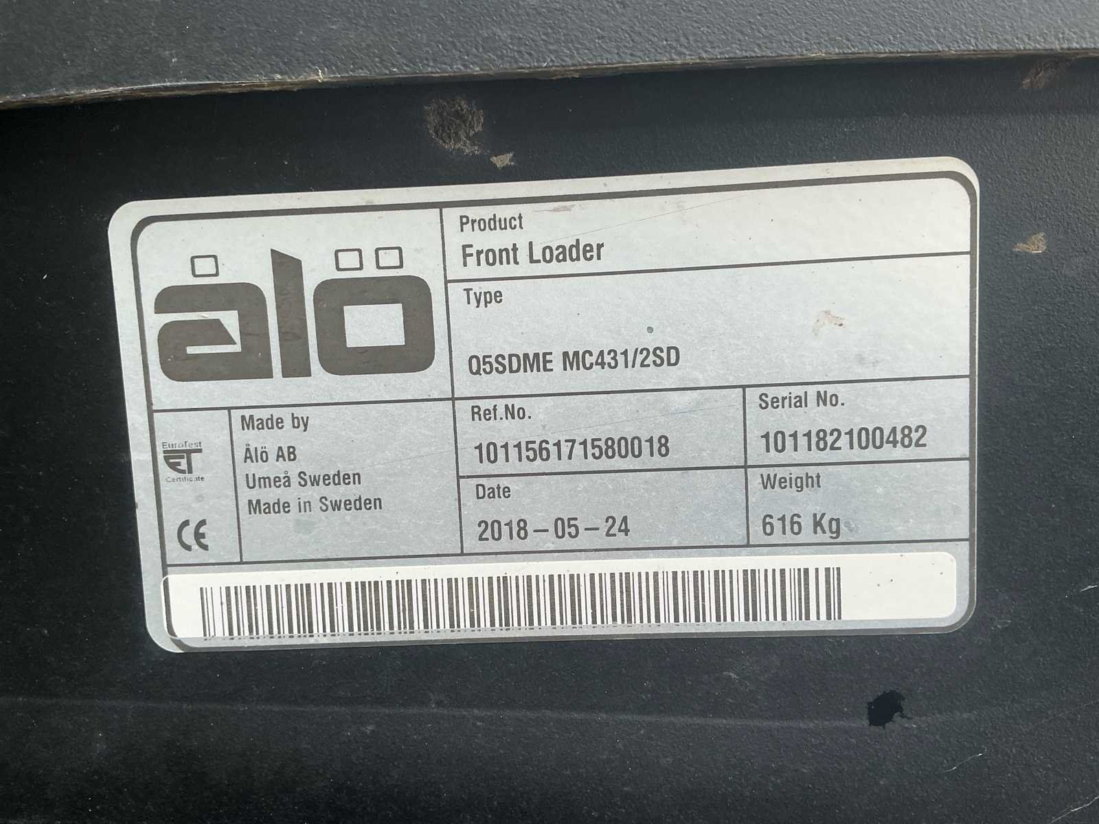 Voorzien van Nee Merk: Alo Type: Q5SDME MC431/2SD Bouwjaar: 2018 Serienummer: 101182100482 Eigen gewicht: 616kg