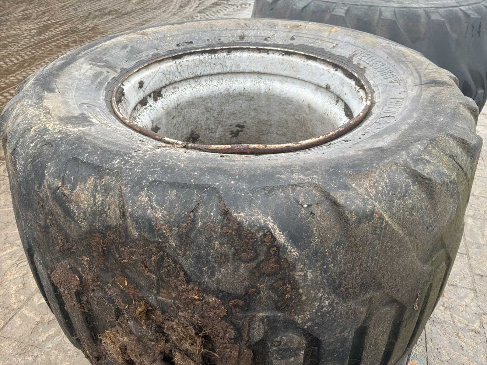 2X Alliance Flotation 33E 700/40/22.5 met velg en 2x Trellerborg Twin 423 710/40/22.5 waarvan 1x voorzien van velg 1x binnenband lek Nee