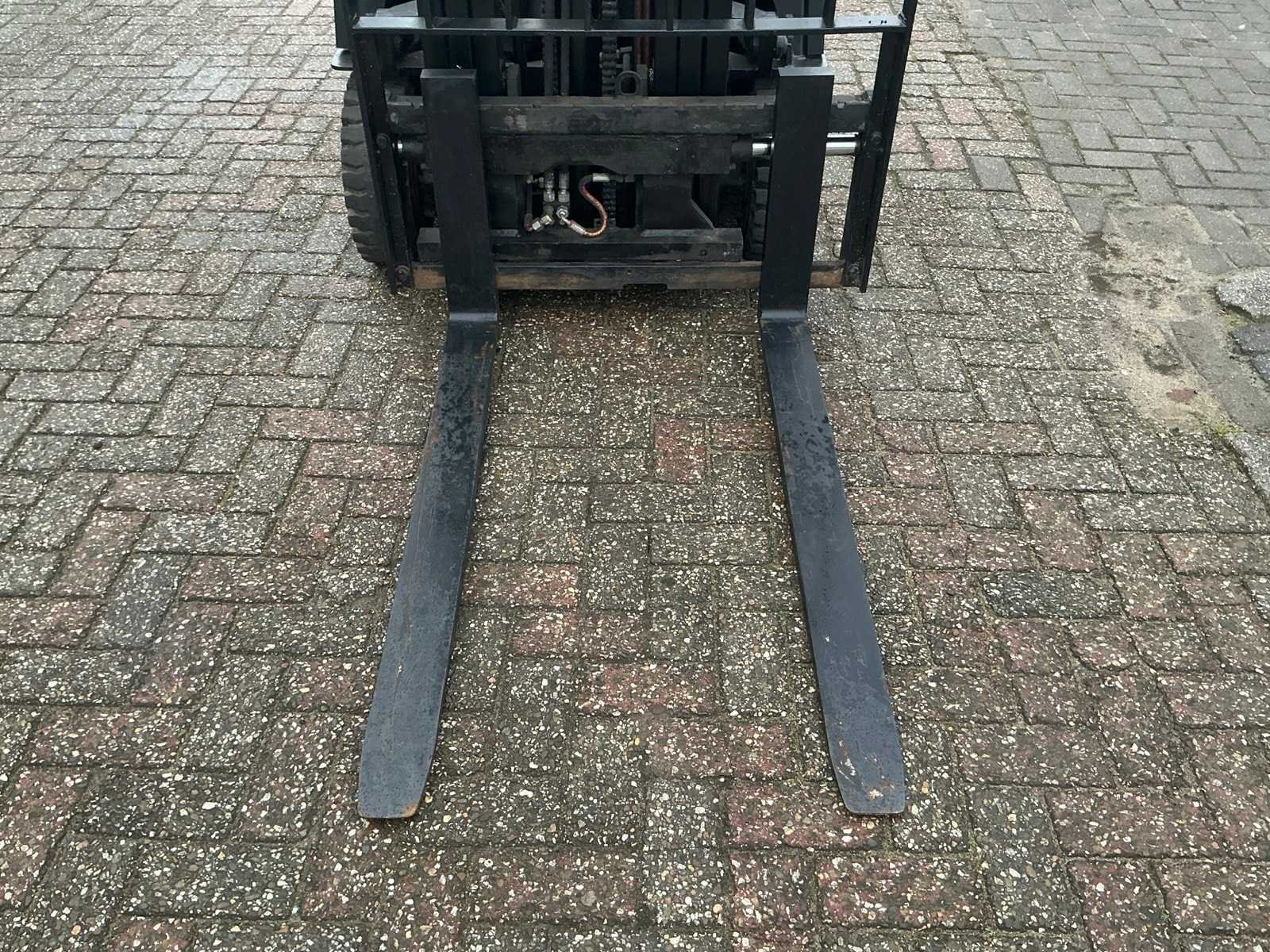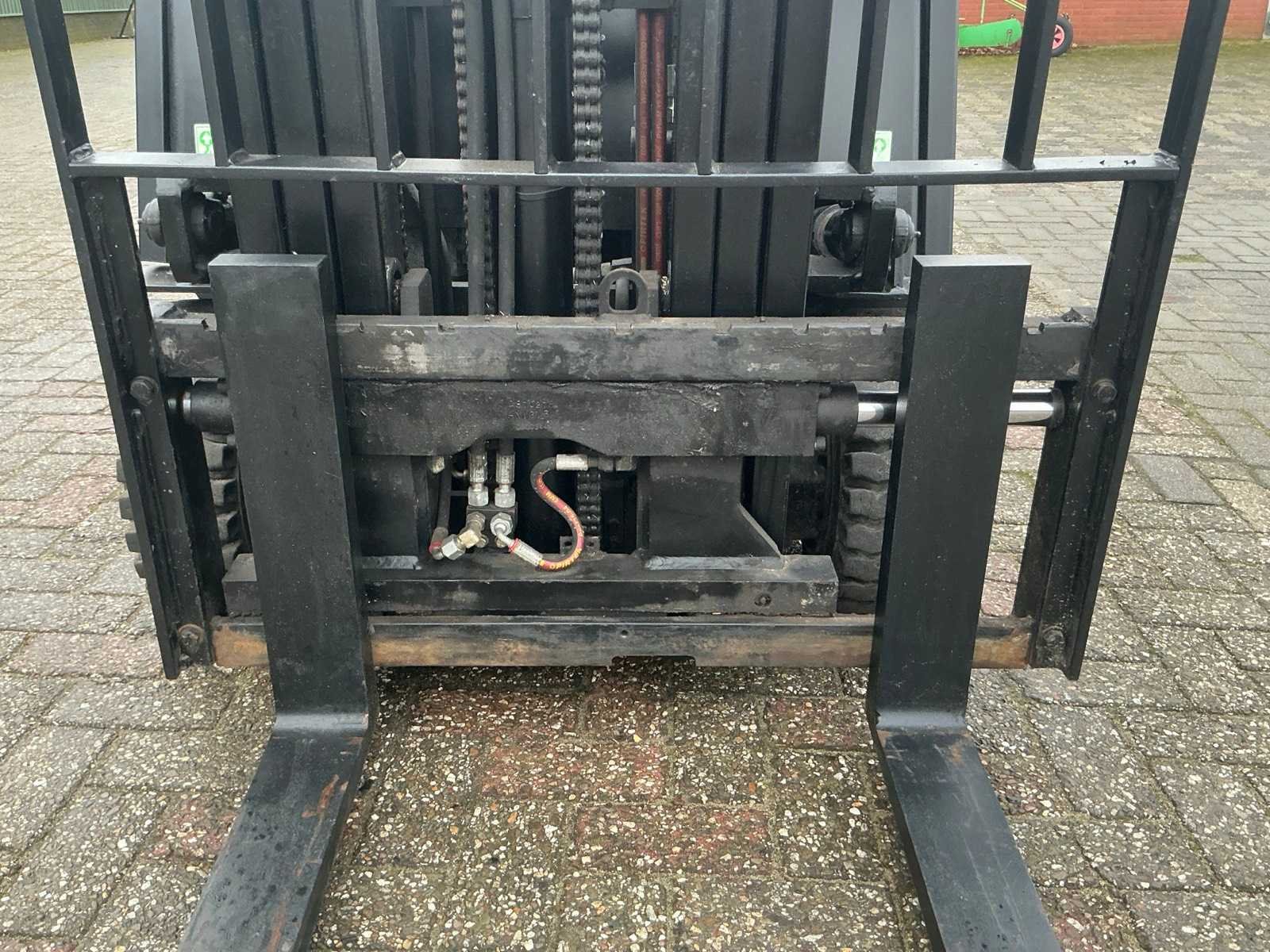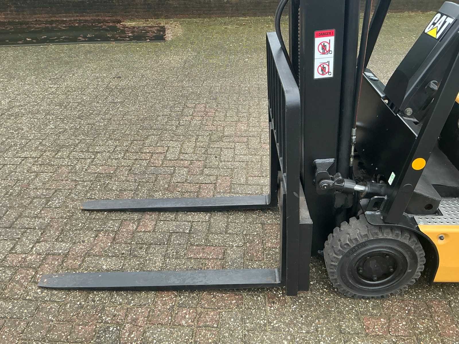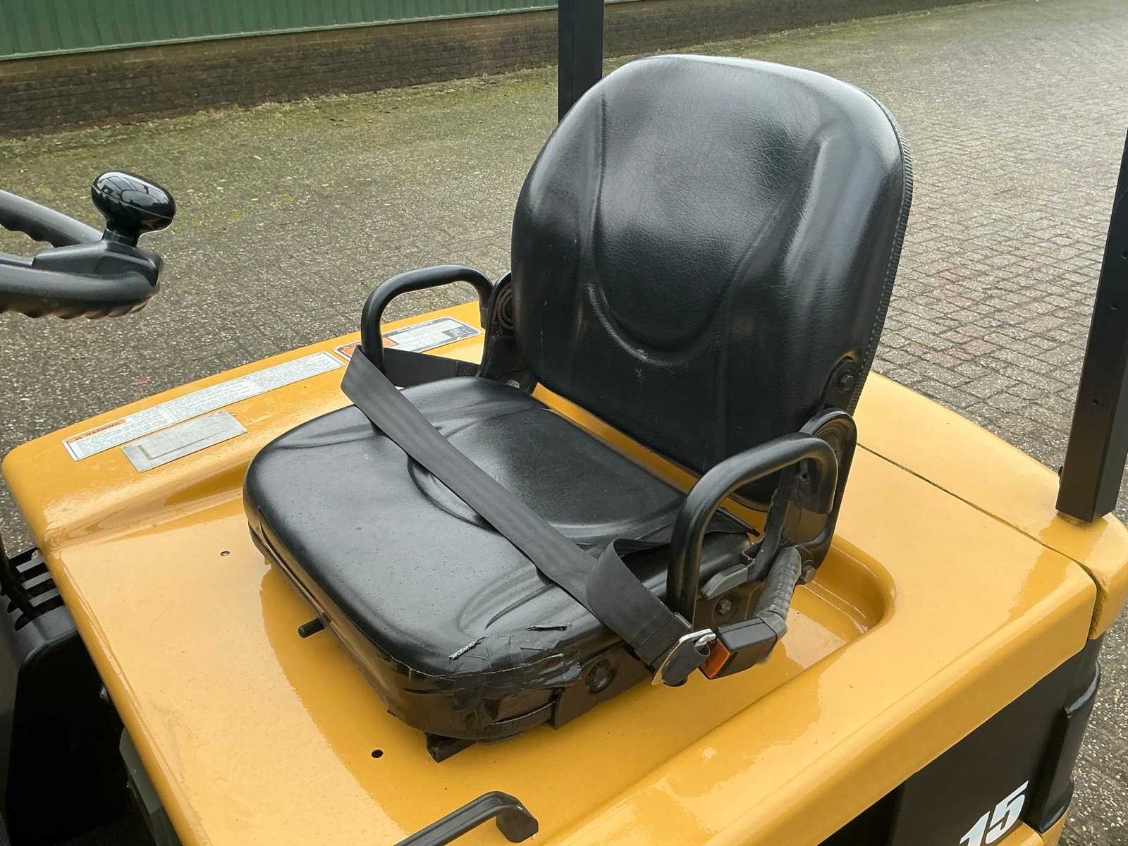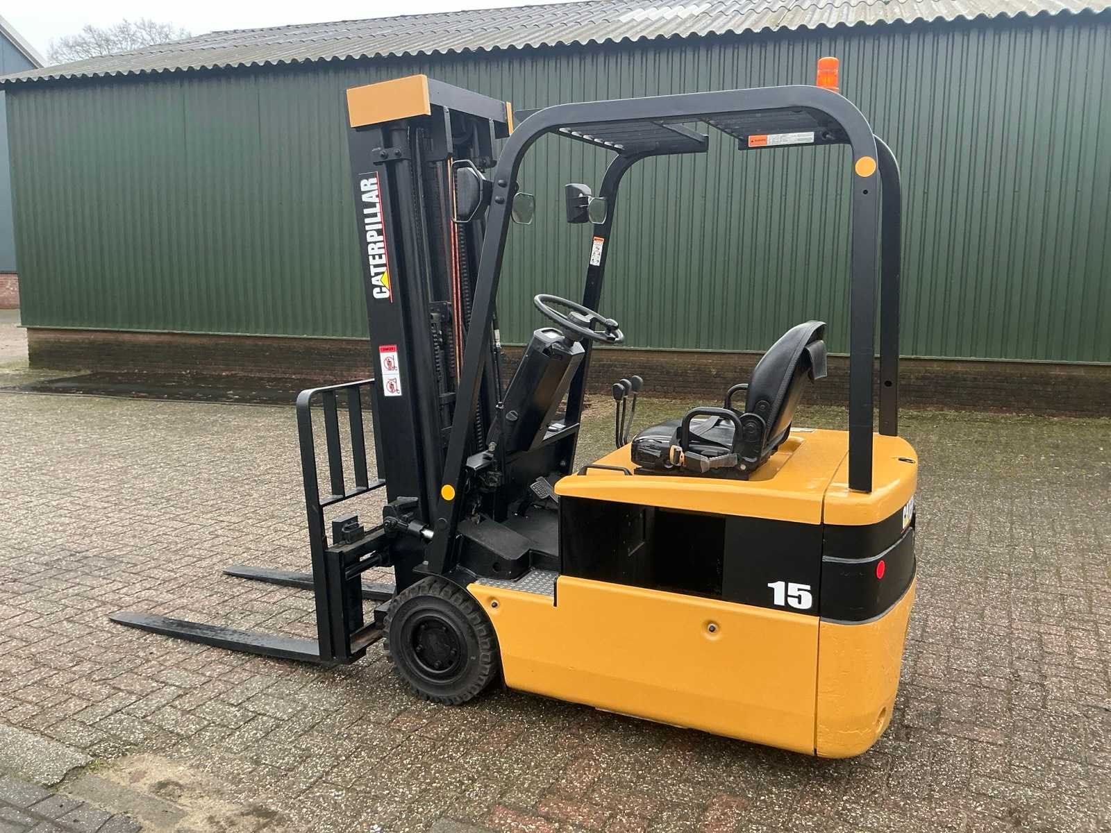 Let op: geen accupakket en lader aanwezig. 48V. No Merk: Caterpillar/Deawoo Type: B15T-2 Bouwjaar: 2001 Serienummer: CG-00793 Brandstof: Elektrisch Mast: Triple Soort band: Volrubber banden Aantal wielen: 4 Afgelezen urenstand: 5449 Free-lift: true Side-shift: true Hydraulisch verstelbare lepels: true Triple mast: true Eigen gewicht: 2503kg Hefvermogen: 1500kg Lepellengte: 1200mm Max. hefhoogte: 4750mm Vol rubber banden: true Totale afmeting L: 3080mm Totale afmeting Breedte: 1100mm Totale afmeting Hoogte: 2100mm