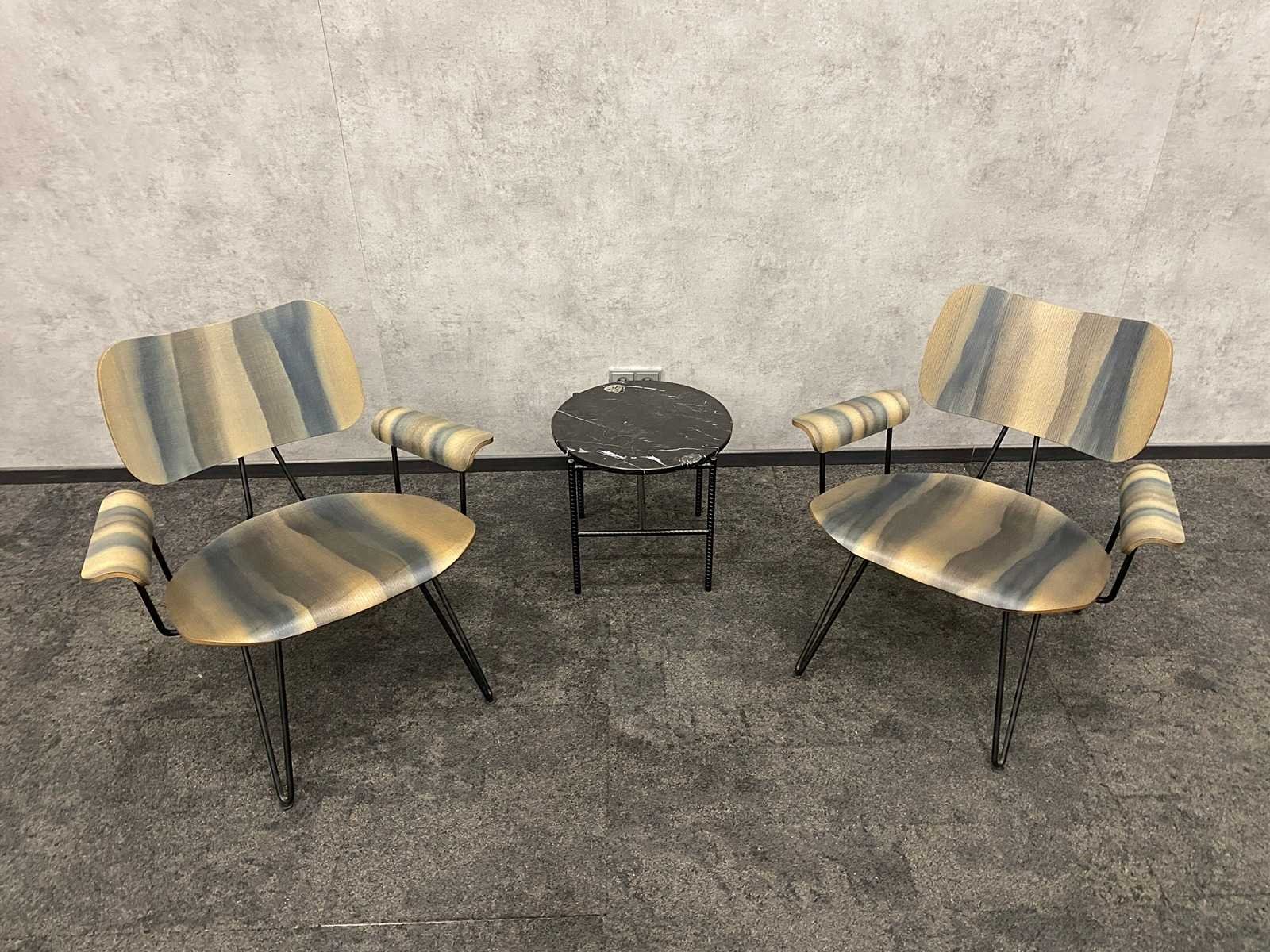 Kavel bestaande uit 1x HAY Rebar design salontafel, hoogte ca. 41 cm. en diameter 45 cm. --- 2x Moroso/ Diesel design fauteuil Nee Merk: Moroso/Diesel + HAY