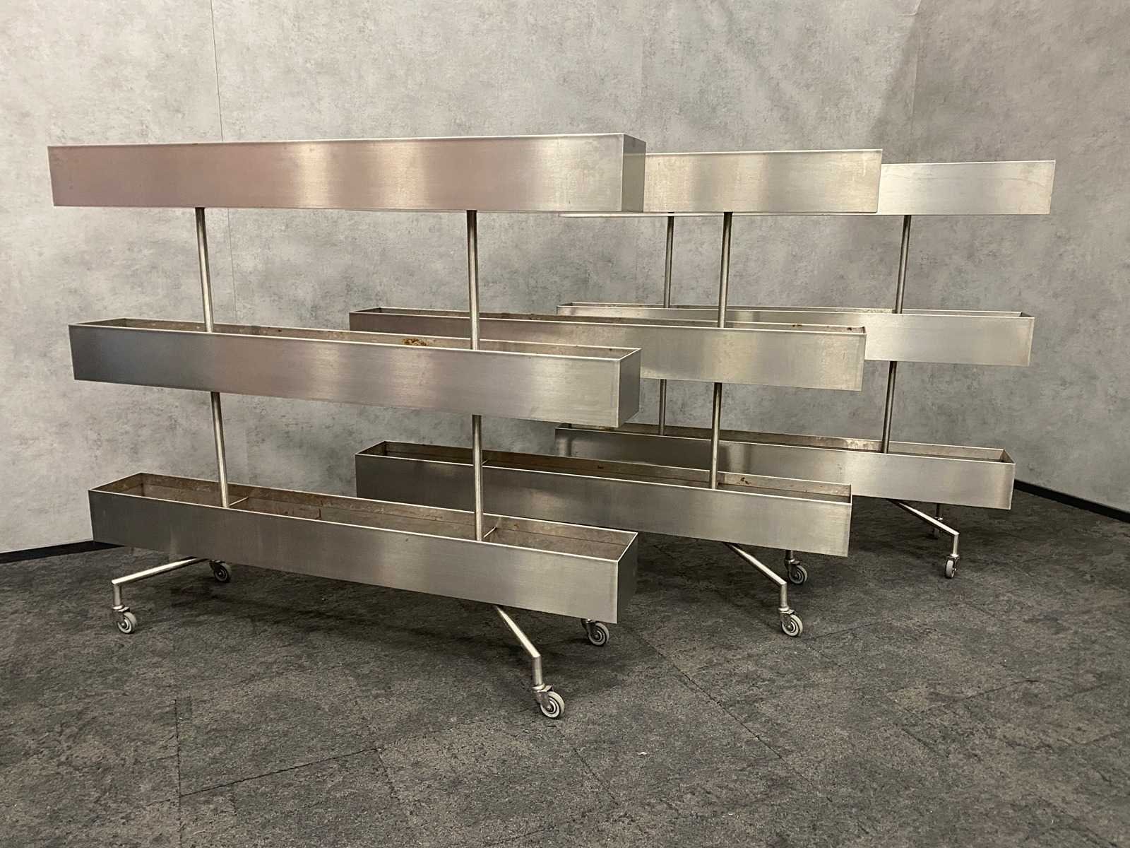 3x rvs verrijdbare divider/ plantenbak