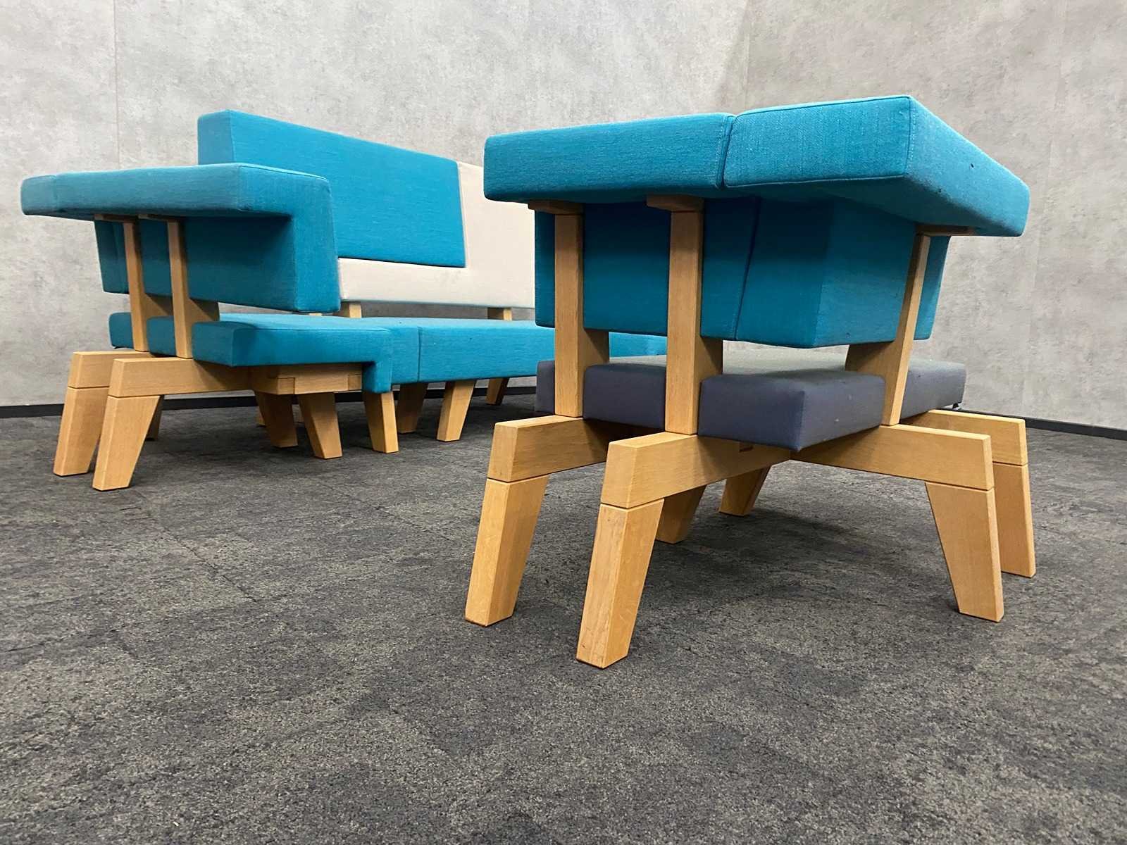3-delig --- Afm. per deel ca. hxbxd 85x140x75 cm., 116x175x120 cm., 116x170x175 cm. Nee Merk: Prooff Kleur: beige/ blauw
