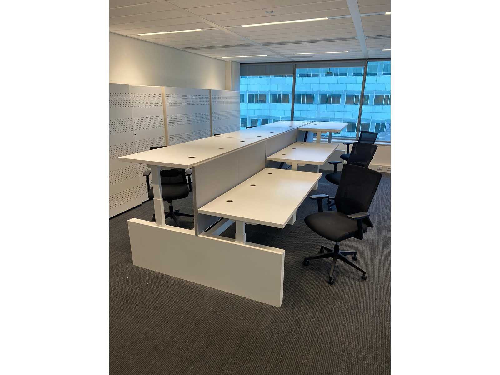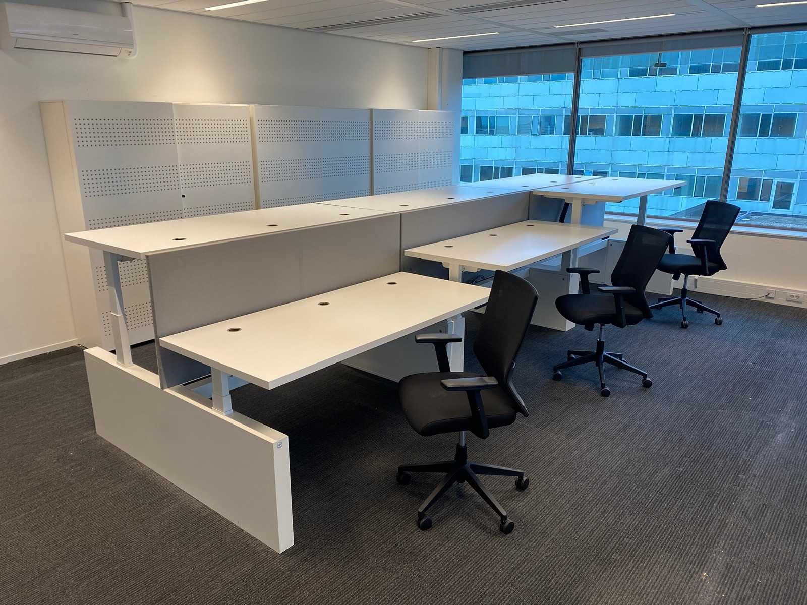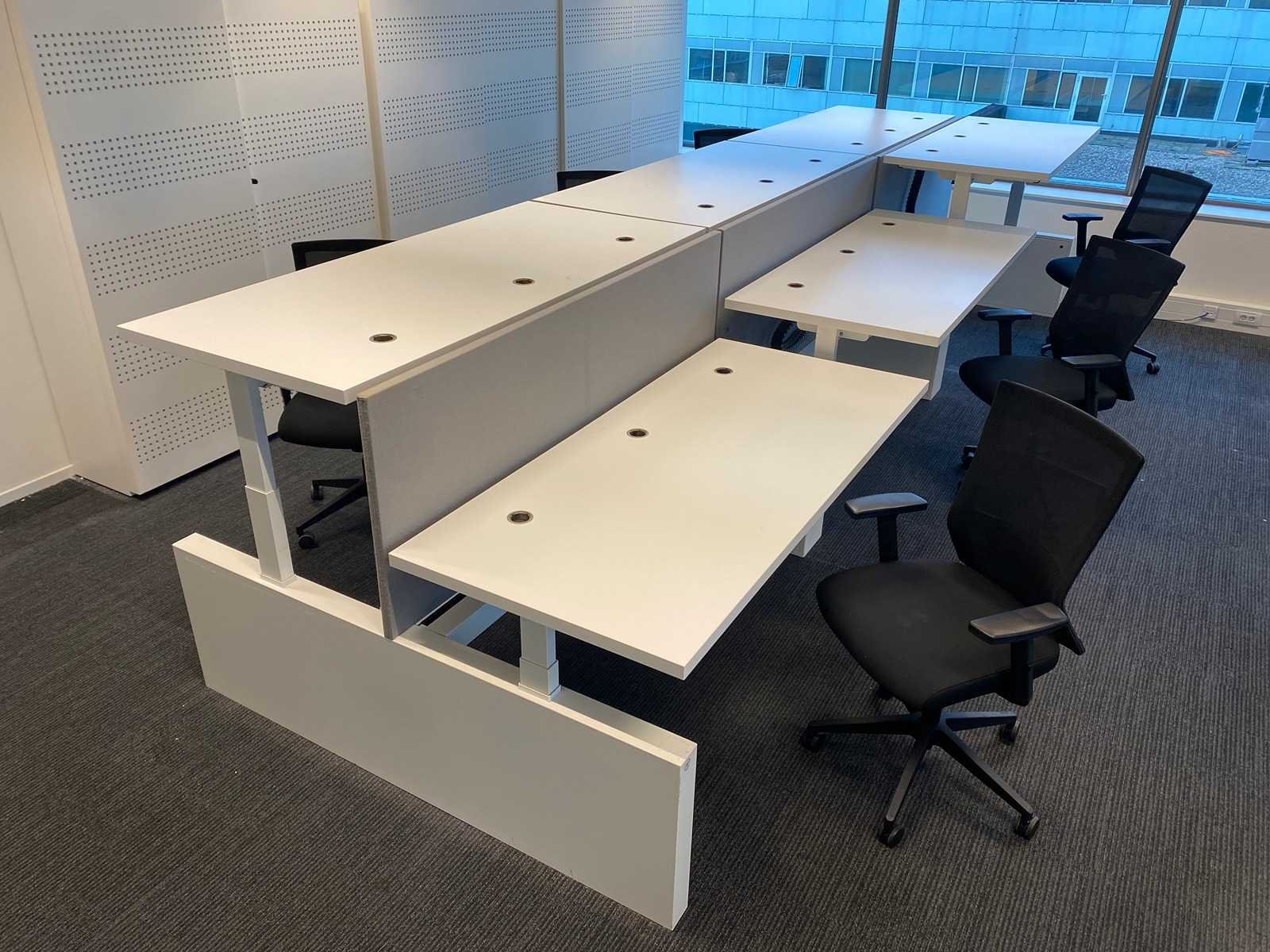 Kavel bestaande uit 1x Vepa 6p workbench en 6x WeWork bureaustoel. ----- Bureaustoel v.v. in hoogte instelbare armleggers, zithoogte instelbaar, kantelmechanisme rugleuning, netweave rugbekleding. ----- Workbench v.v. akoestische grijze scheidingswanden, kabeldoorvoer, draadgoot. Totale afmeting workbench ca. hoogte 65 tot 131 cm. - breed 540 cm. - diep 168 cm. ----- Workbench is reeds volledig professioneel gedemonteerd en onverpakt. ----- bladafmeting per bureau is ca. 180x80 cm. Nee Merk: Vepa Zit-sta: true Elektrisch verstelbaar: true
