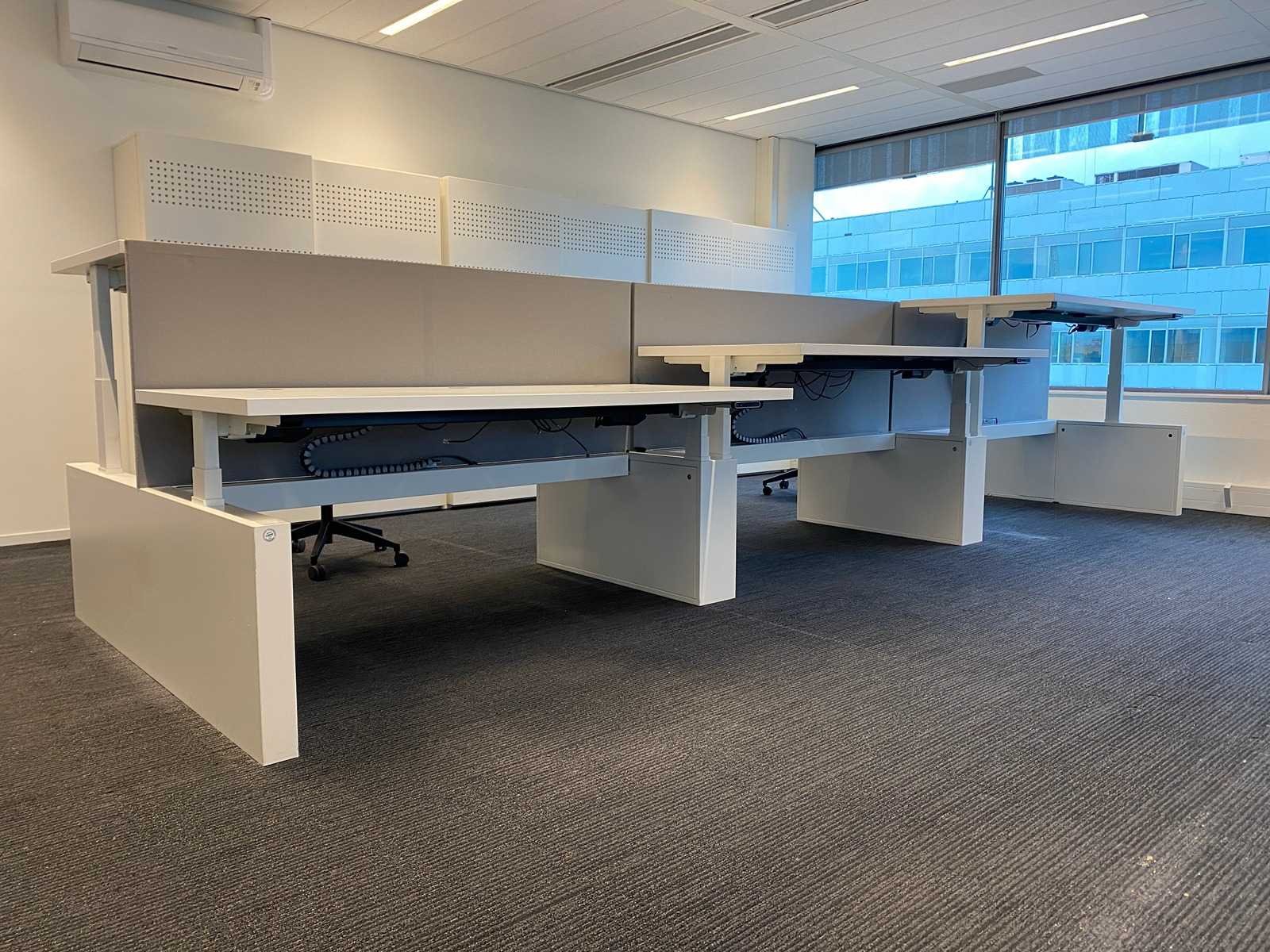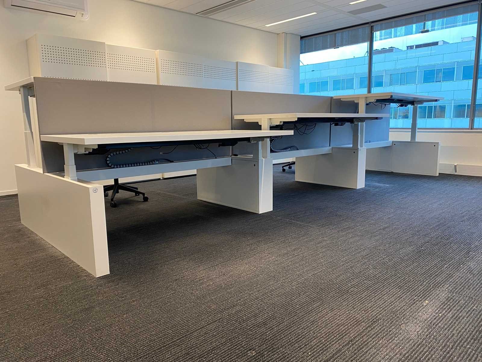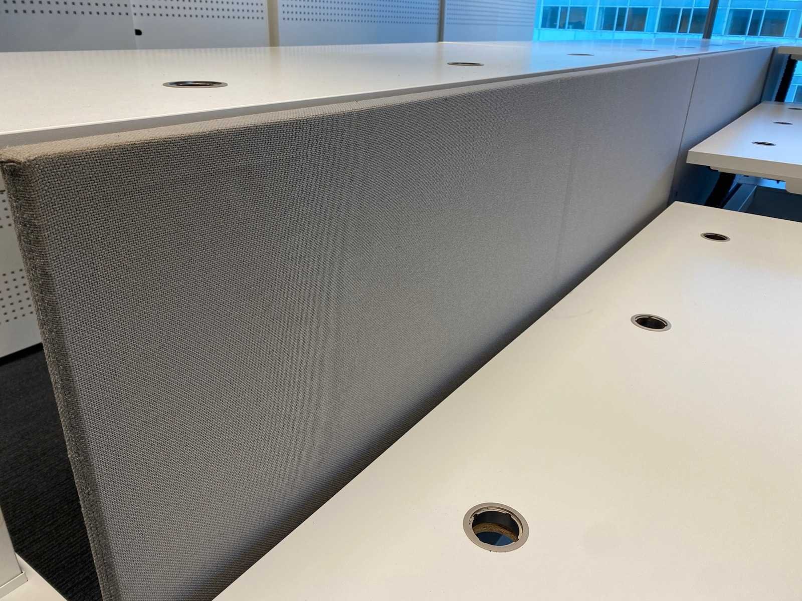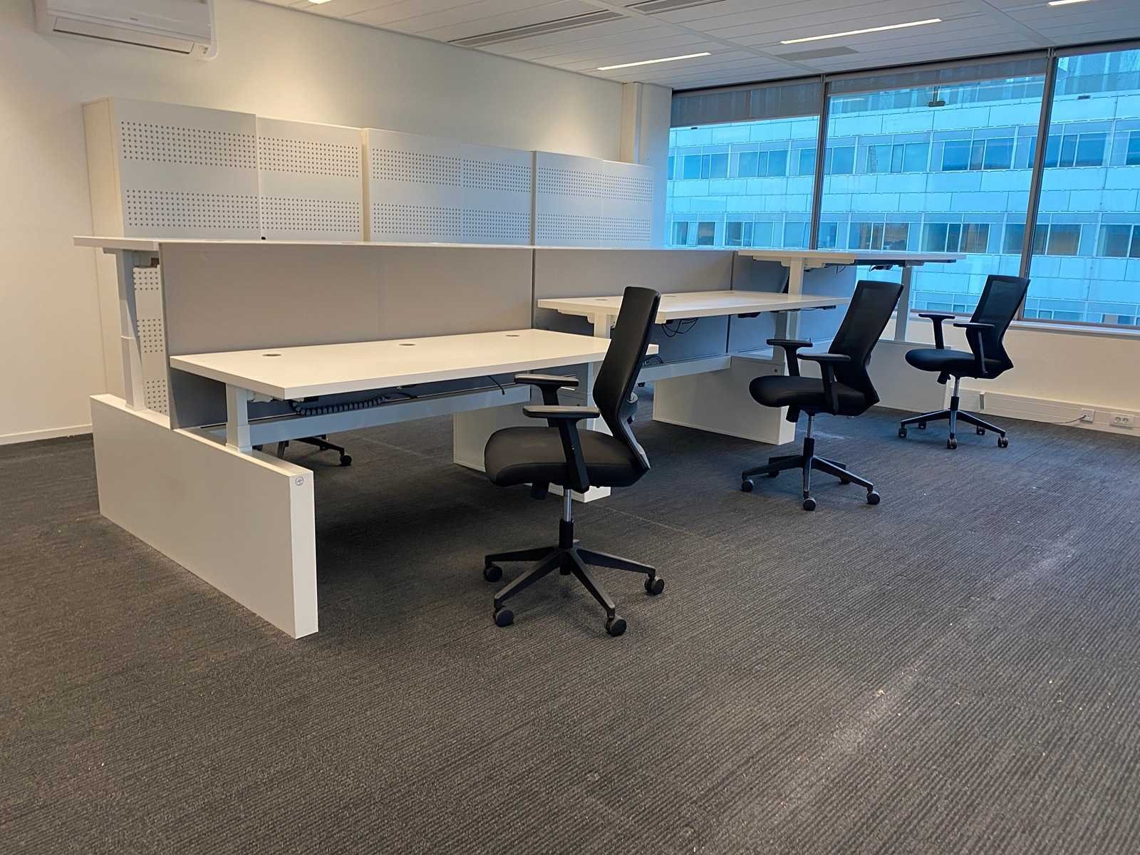 Kavel bestaande uit 1x Vepa 6p workbench en 6x WeWork bureaustoel. ----- Bureaustoel v.v. in hoogte instelbare armleggers, zithoogte instelbaar, kantelmechanisme rugleuning, netweave rugbekleding. ----- Workbench v.v. akoestische grijze scheidingswanden, kabeldoorvoer, draadgoot. Totale afmeting workbench ca. hoogte 65 tot 131 cm. - breed 540 cm. - diep 168 cm. ----- Workbench is reeds volledig professioneel gedemonteerd en onverpakt. ----- bladafmeting per bureau is ca. 180x80 cm. Nee Merk: Vepa Zit-sta: true Elektrisch verstelbaar: true