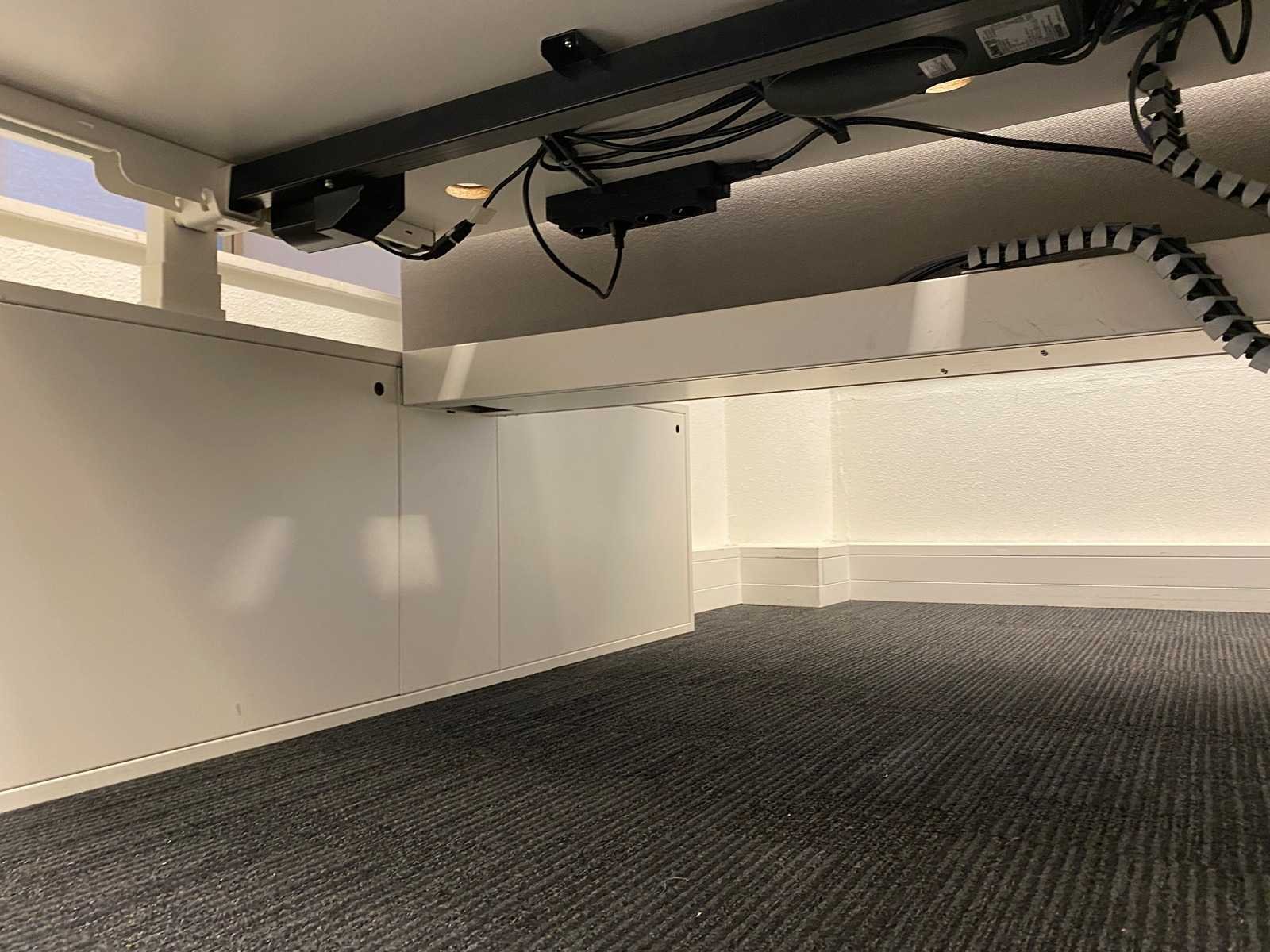 Kavel bestaande uit 1x Vepa duo werkplek en 2x WeWork bureaustoel. ----- Bureaustoel v.v. in hoogte instelbare armleggers, zithoogte instelbaar, kantelmechanisme rugleuning, netweave rugbekleding. ----- duo bureau v.v. akoestische grijze scheidingswand, kabeldoorvoer, draadgoot. Totale afmeting/ transport afmeting ca. hoogte 65 tot 131 cm. - breed 180 cm. - diep 168 cm. ----- duo bureau is reeds volledig professioneel gedemonteerd en onverpakt. ----- bladafmeting per bureau is ca. 180x80 cm. Nee Merk: Vepa Zit-sta: true Elektrisch verstelbaar: true