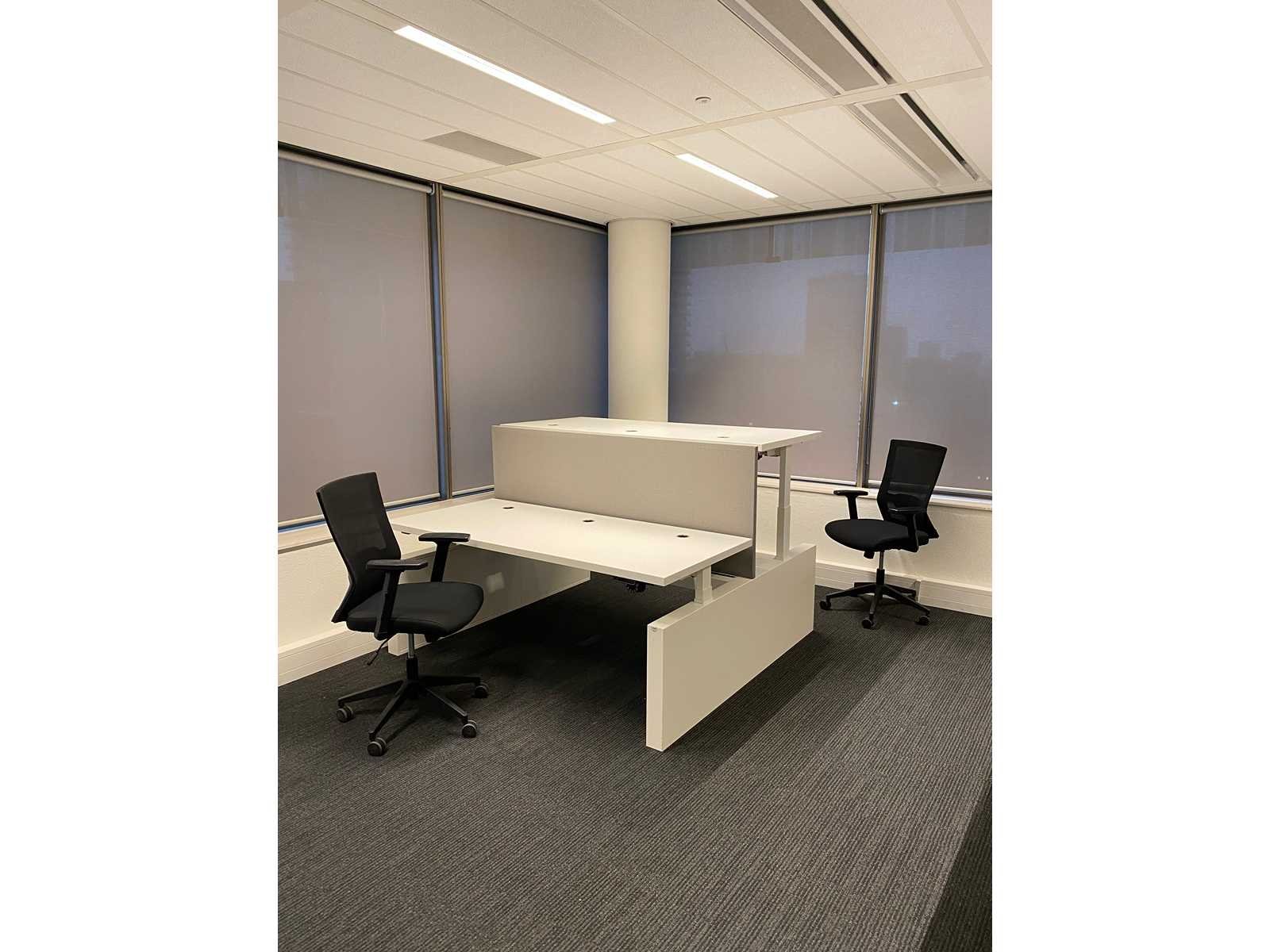 Kavel bestaande uit 1x Vepa duo werkplek en 2x WeWork bureaustoel. ----- Bureaustoel v.v. in hoogte instelbare armleggers, zithoogte instelbaar, kantelmechanisme rugleuning, netweave rugbekleding. ----- duo bureau v.v. akoestische grijze scheidingswand, kabeldoorvoer, draadgoot. Totale afmeting/ transport afmeting ca. hoogte 65 tot 131 cm. - breed 180 cm. - diep 168 cm. ----- duo bureau is reeds volledig professioneel gedemonteerd en onverpakt. ----- bladafmeting per bureau is ca. 180x80 cm. Nee Merk: Vepa Zit-sta: true Elektrisch verstelbaar: true