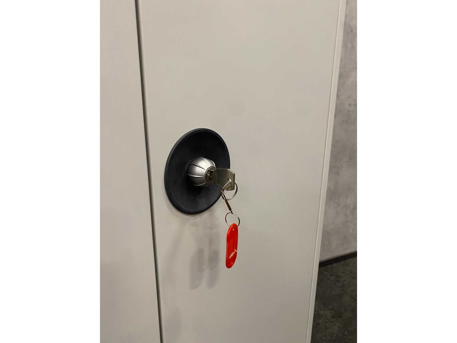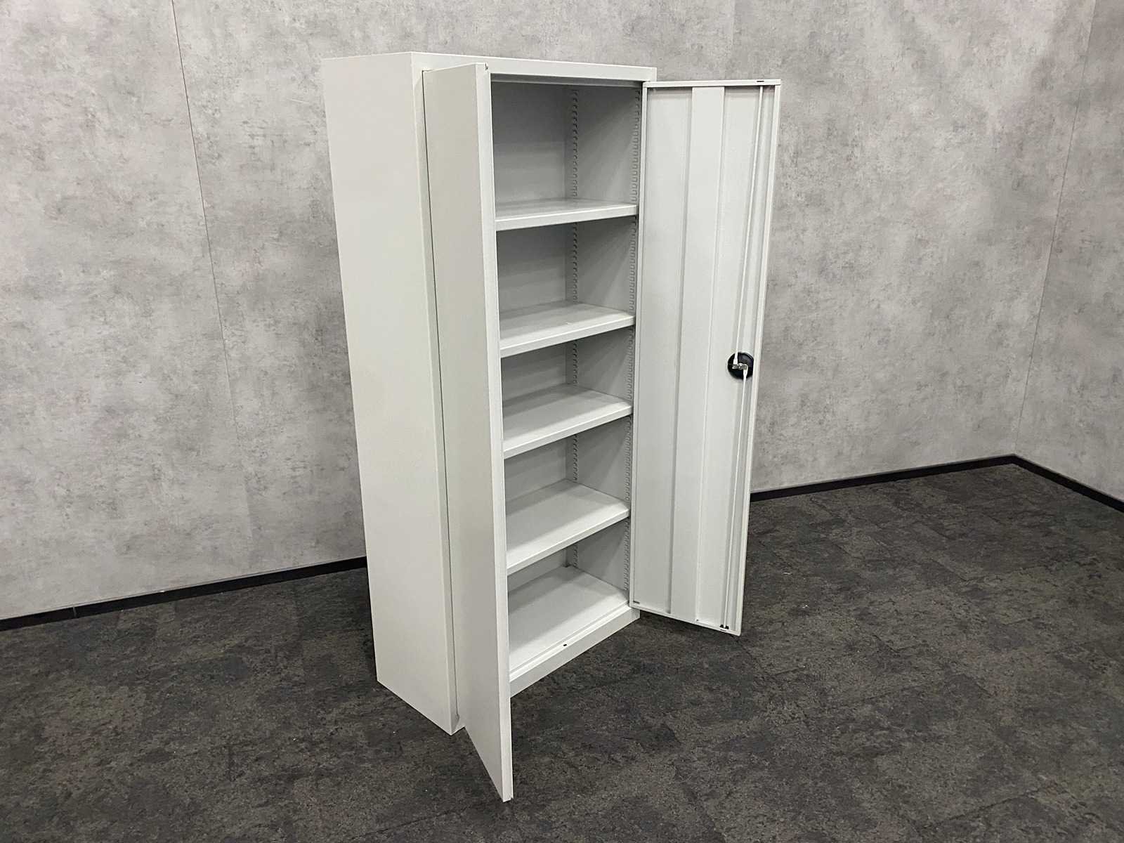 V.v. 4 verstelbare legborden, met sleutel Nee Kleur: grijs Breedte: 92cm Hoogte: 195cm Diepte: 40cm Materiaal: metaal