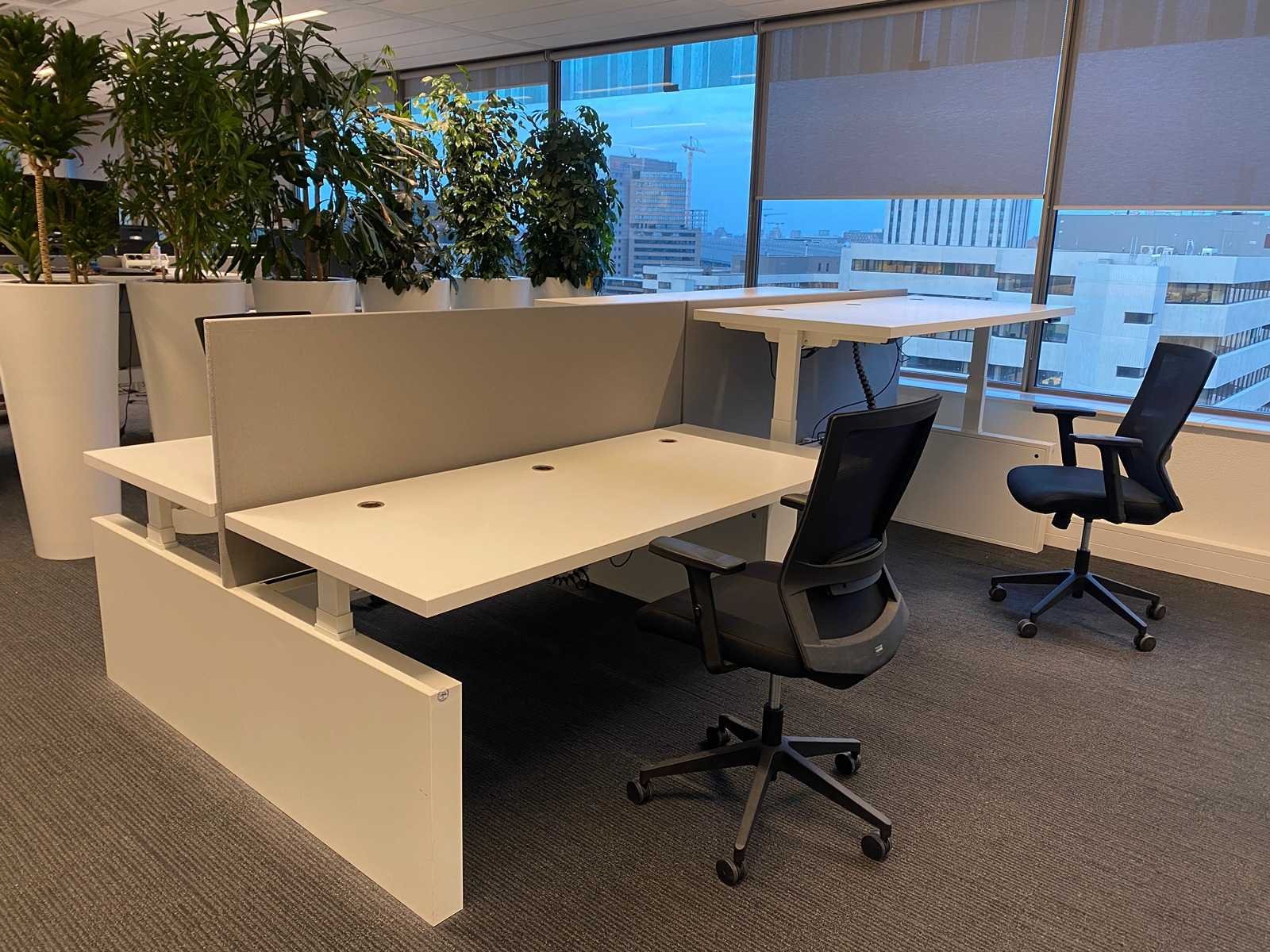 Kavel bestaande uit 1x Vepa 4p workbench en 4x WeWork bureaustoel. ----- Bureaustoel v.v. in hoogte instelbare armleggers, zithoogte instelbaar, kantelmechanisme rugleuning, netweave rugbekleding. ----- Workbench v.v. akoestische grijze scheidingswanden, kabeldoorvoer, draadgoot. Totale afmeting workbench ca. hoogte 65 tot 131 cm. - breed 360 cm. - diep 168 cm. ----- Workbench is reeds volledig professioneel gedemonteerd en onverpakt. ----- bladafmeting per bureau is ca. 180x80 cm. Nee Merk: Vepa Zit-sta: true Elektrisch verstelbaar: true
