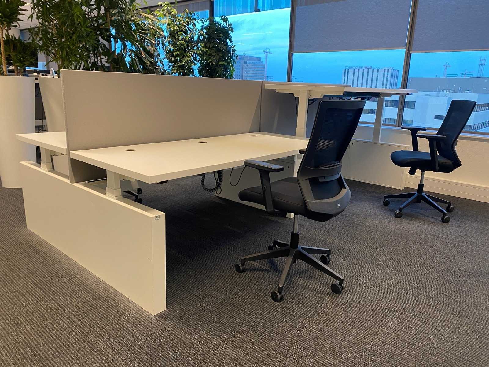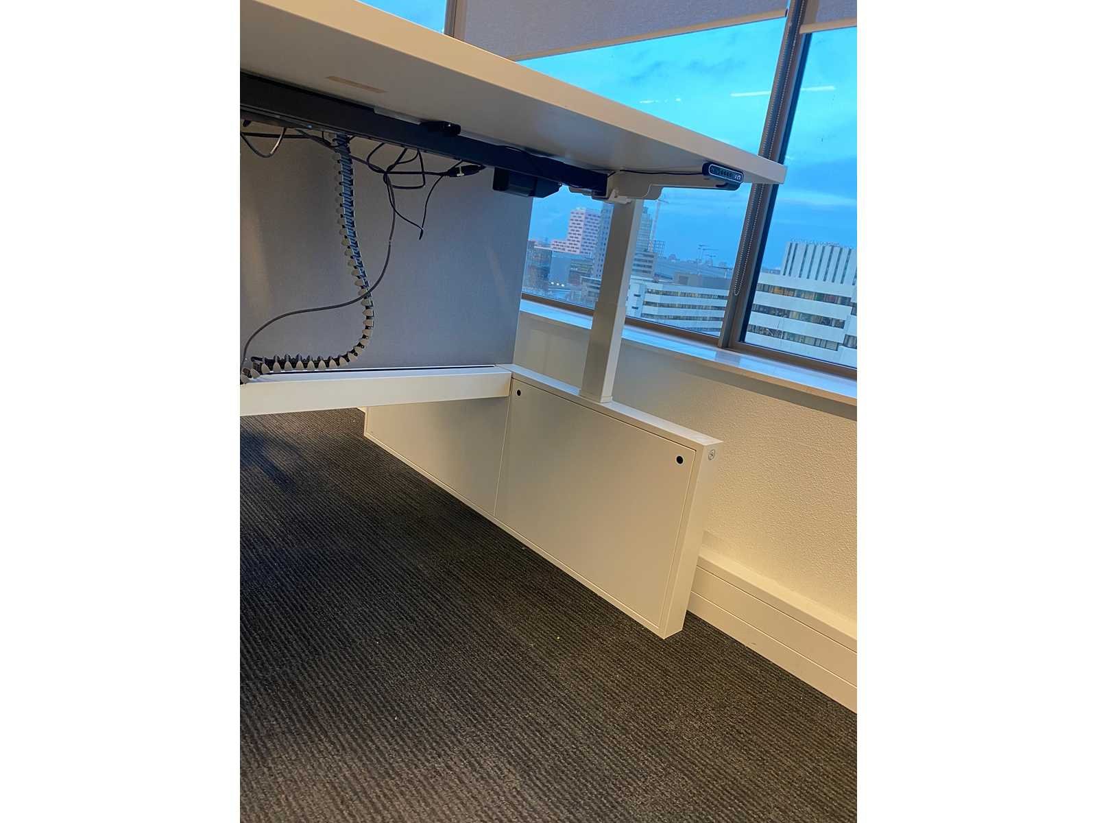 Kavel bestaande uit 1x Vepa 4p workbench en 4x WeWork bureaustoel. ----- Bureaustoel v.v. in hoogte instelbare armleggers, zithoogte instelbaar, kantelmechanisme rugleuning, netweave rugbekleding. ----- Workbench v.v. akoestische grijze scheidingswanden, kabeldoorvoer, draadgoot. Totale afmeting workbench ca. hoogte 65 tot 131 cm. - breed 360 cm. - diep 168 cm. ----- Workbench is reeds volledig professioneel gedemonteerd en onverpakt. ----- bladafmeting per bureau is ca. 180x80 cm. Nee Merk: Vepa Zit-sta: true Elektrisch verstelbaar: true
