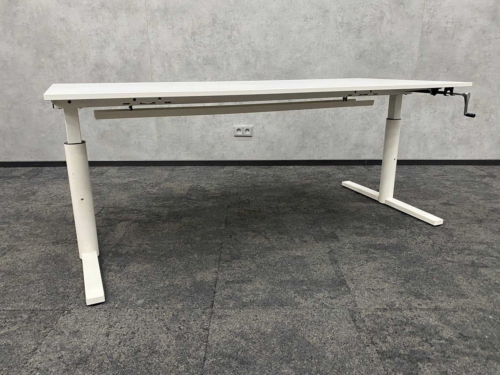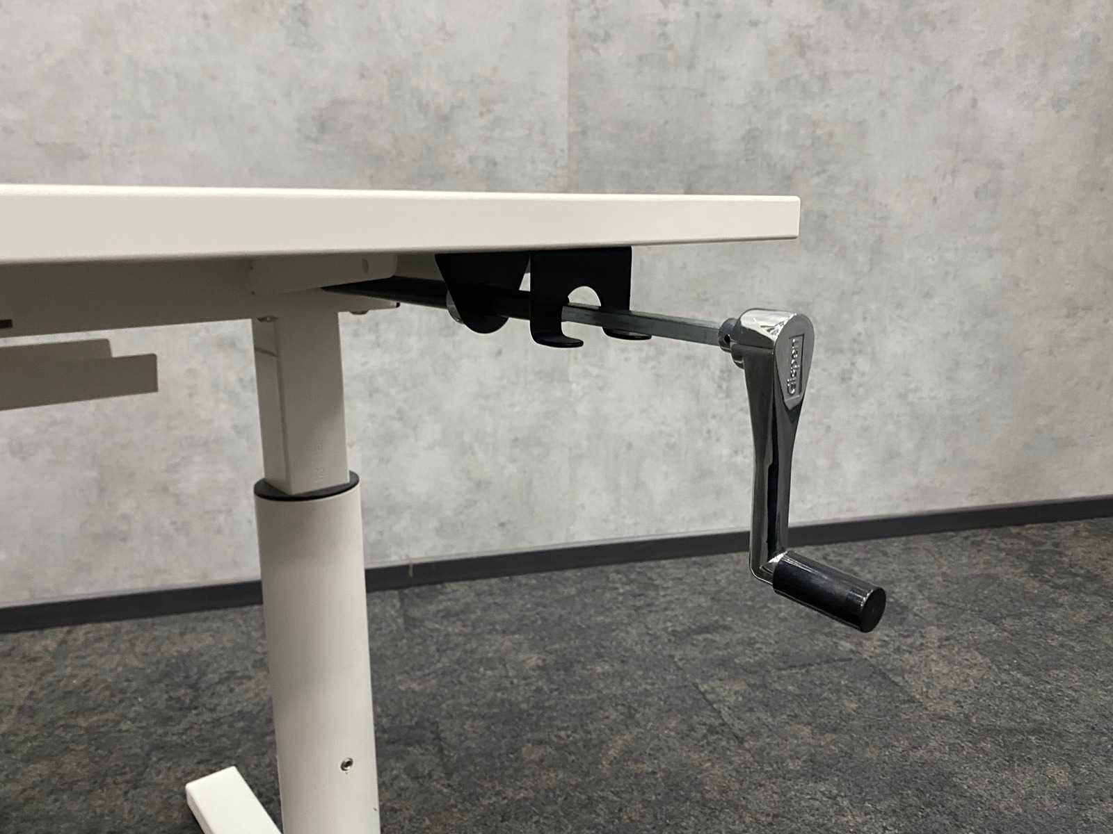 Met draadgoot en handslinger Nee Merk: Gispen TM Slingerbureau: true Kleur: wit Lengte: 180cm Breedte: 80cm Materiaal: metaal, melamine