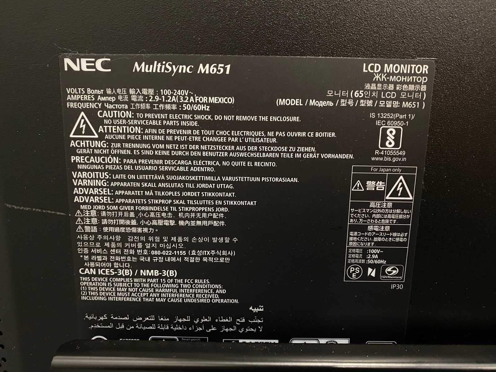 Nec m651 - 65" 4k uhd monitor met statief