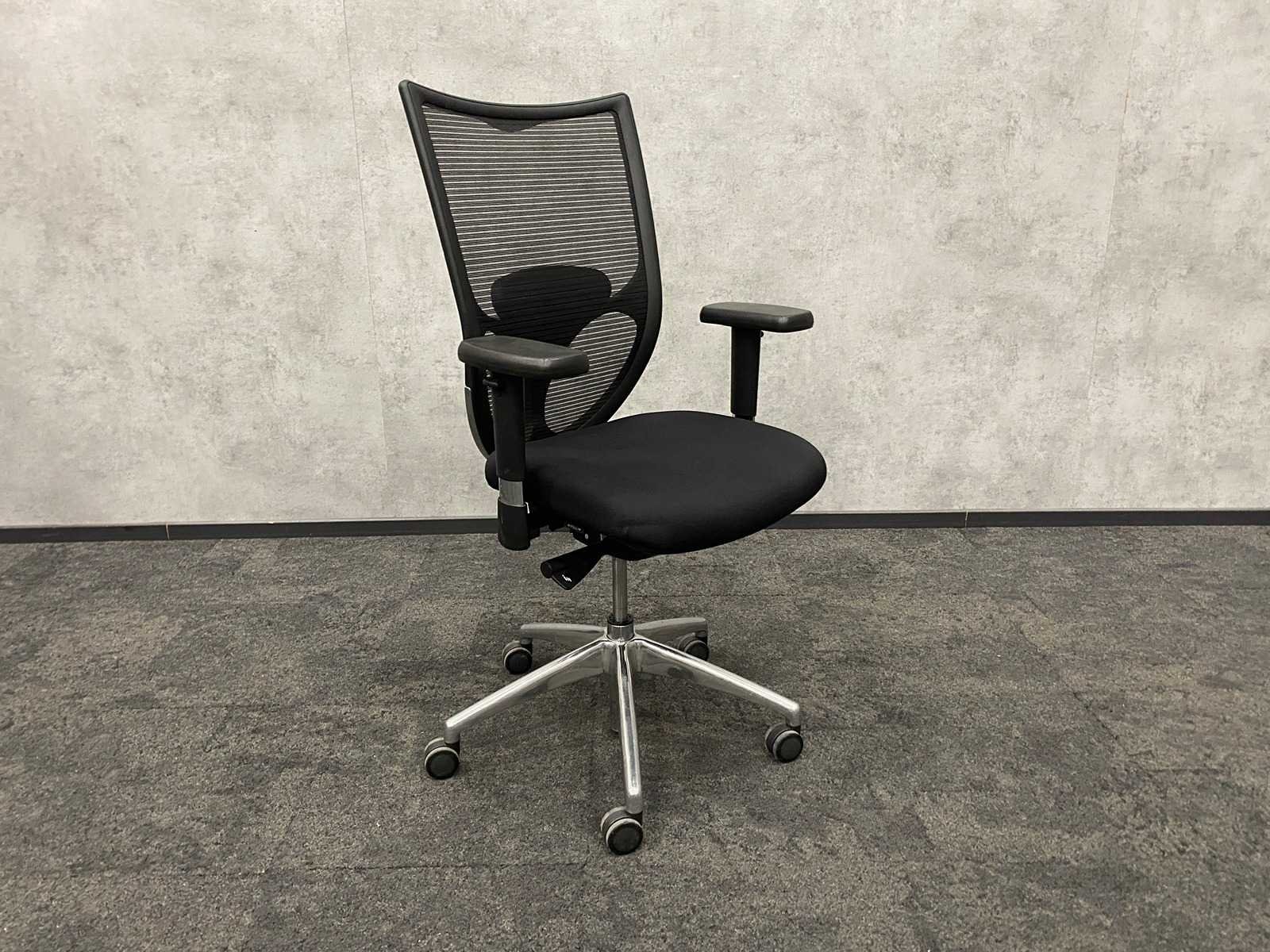 V.v. 3D verstelbare armleggers, zithoogte en zitdiepte verstelbaar, verstelbare lendensteun, zwarte gestoffeerd zitvlak, zwarte mesh rugbekleding, chroom 5-teens voetenkruis Nee Merk: Chairsupply Kleur: zwart, chroom