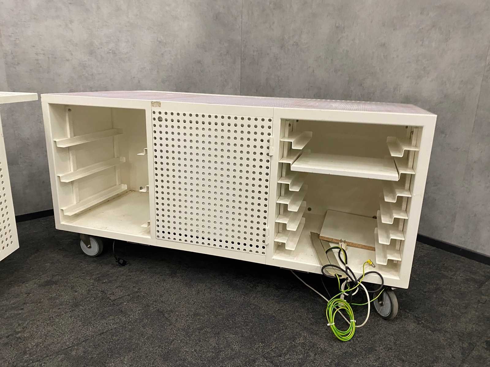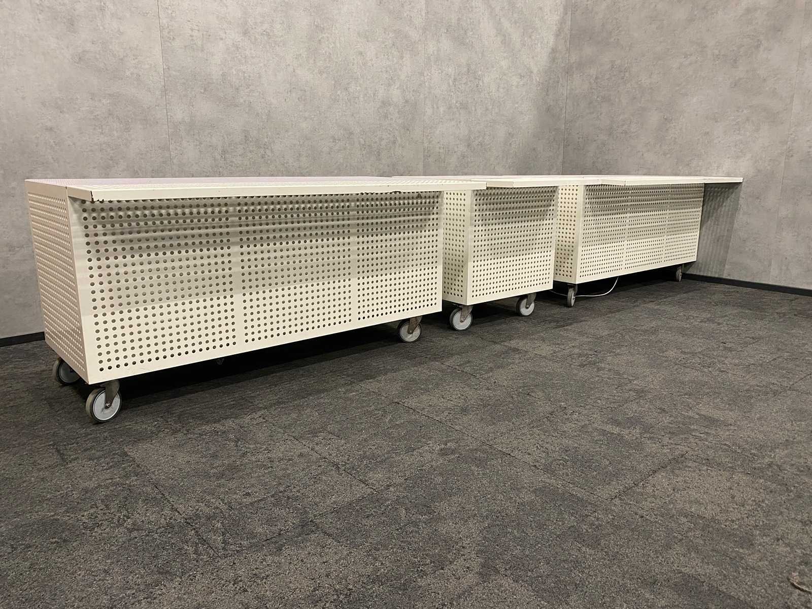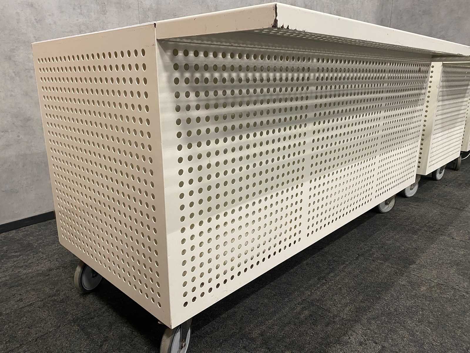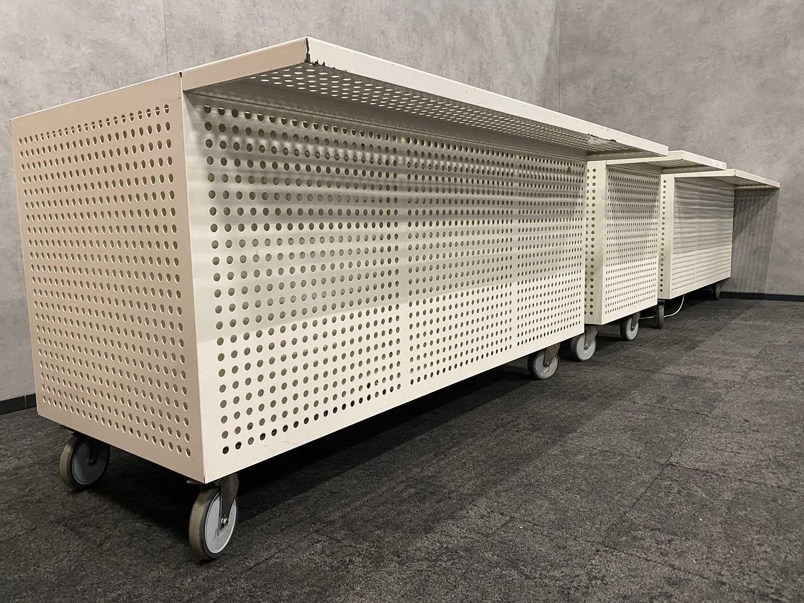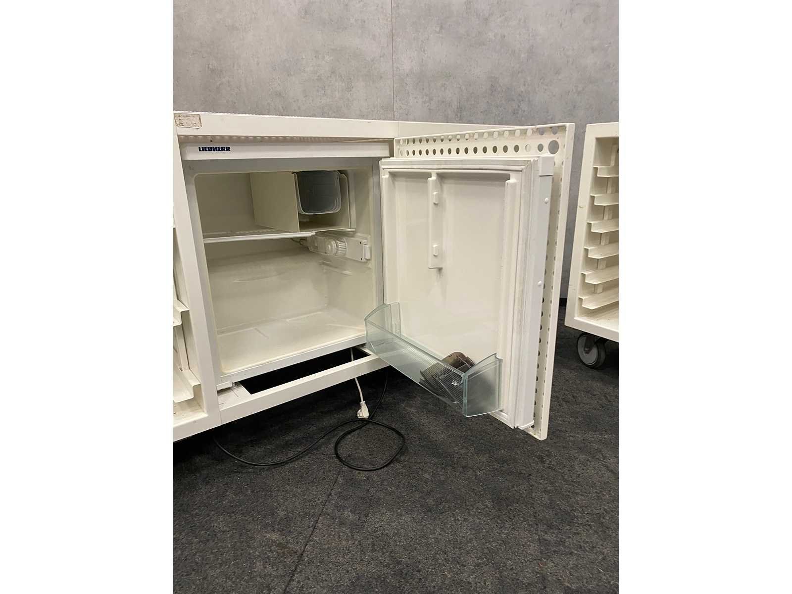 Afm. 2 delen van ca. hxbxd 90x180x100 cm. -- 1 deel van ca. hxbxd 90x80x100 cm. -- v.v. 2x inbouwkoelkast Nee Metaal: true