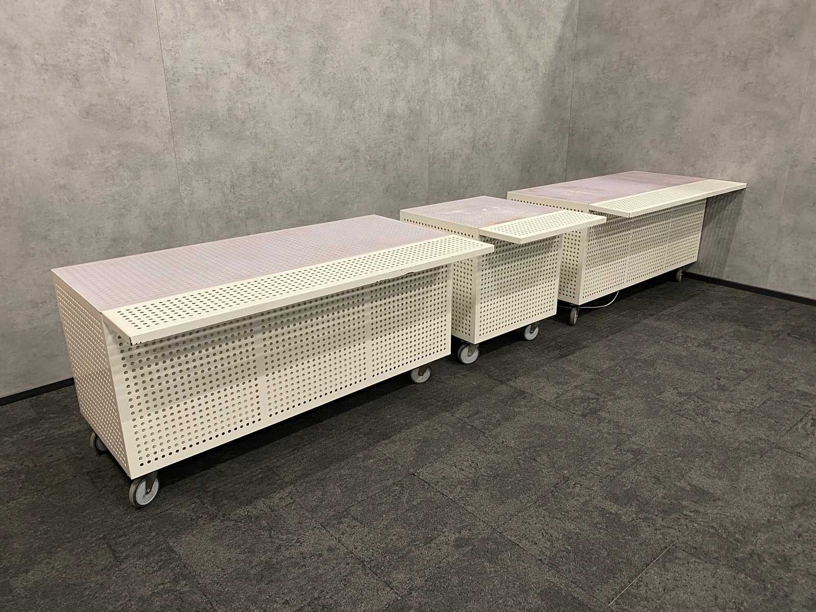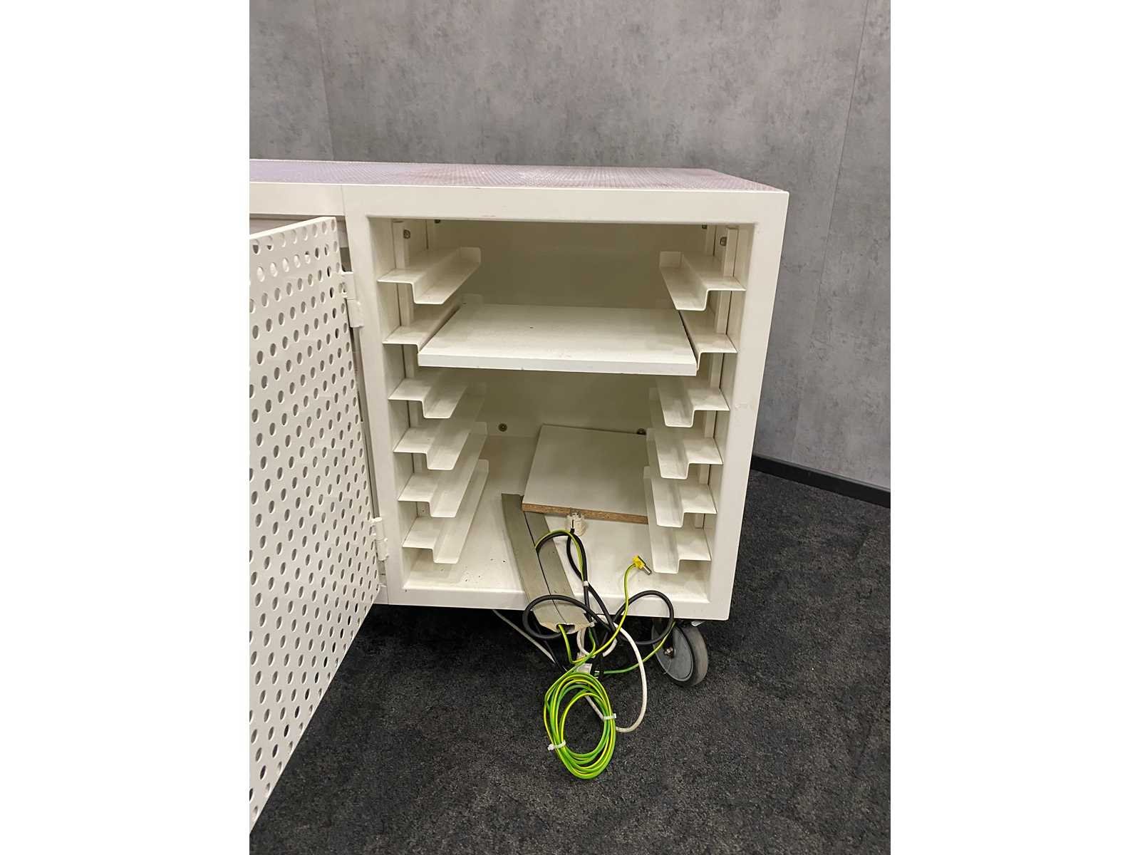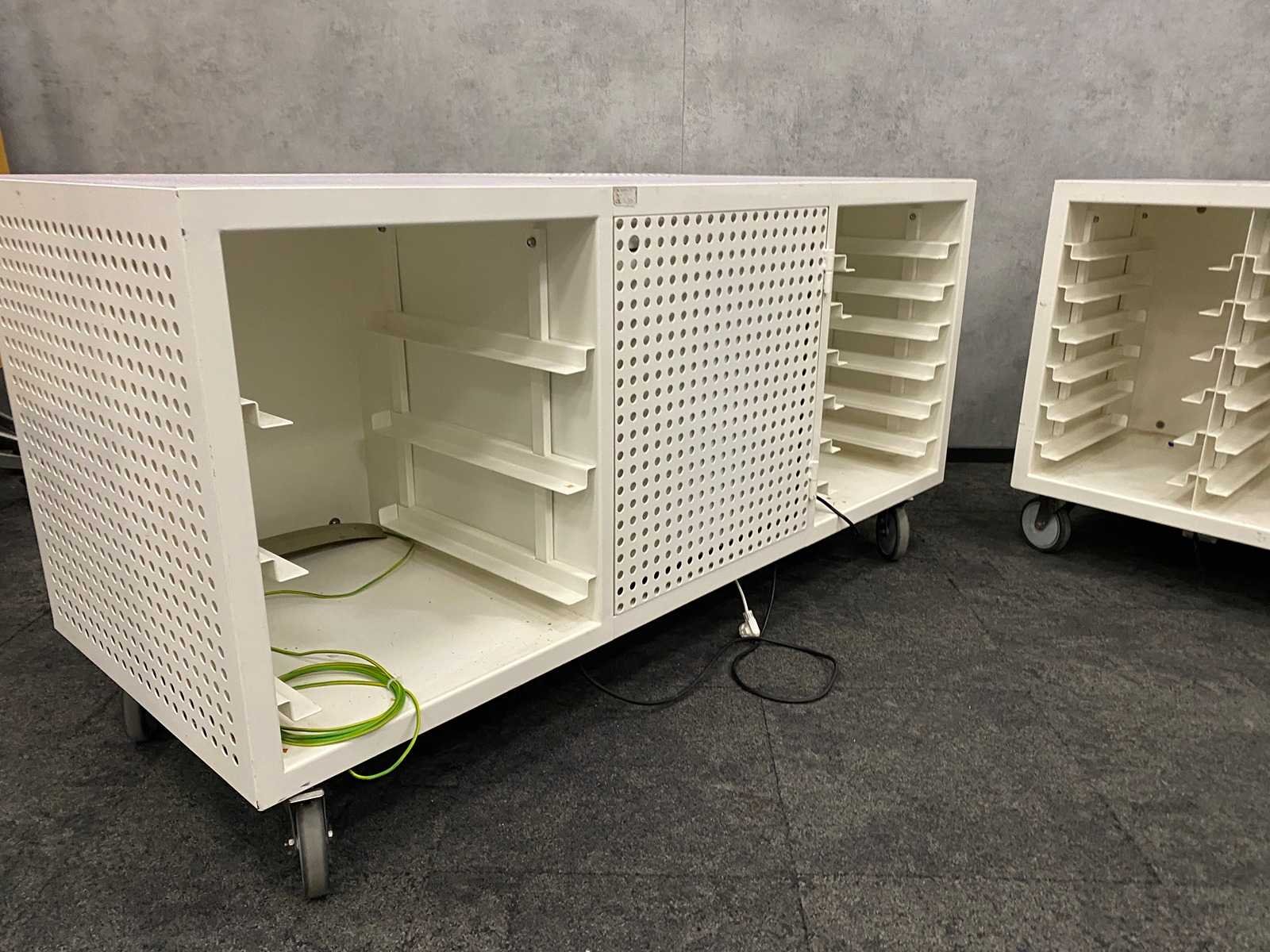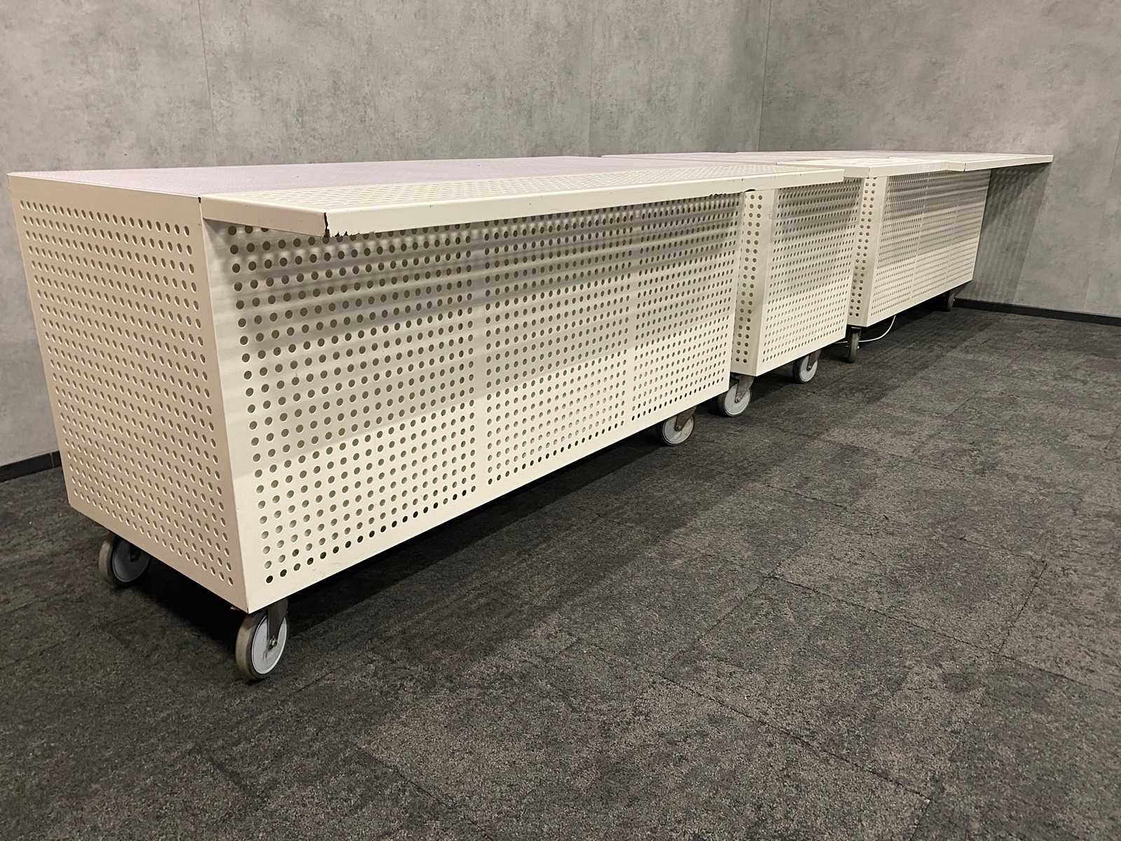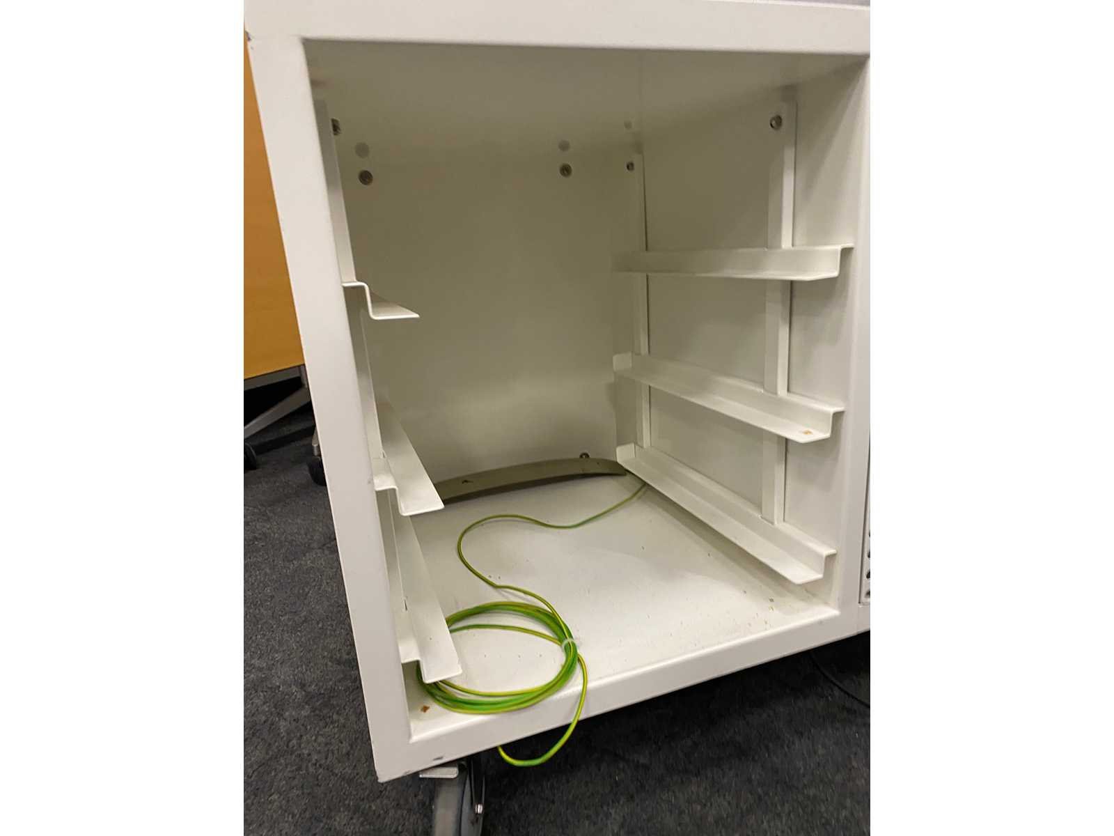 Afm. 2 delen van ca. hxbxd 90x180x100 cm. -- 1 deel van ca. hxbxd 90x80x100 cm. -- v.v. 2x inbouwkoelkast Nee Metaal: true
