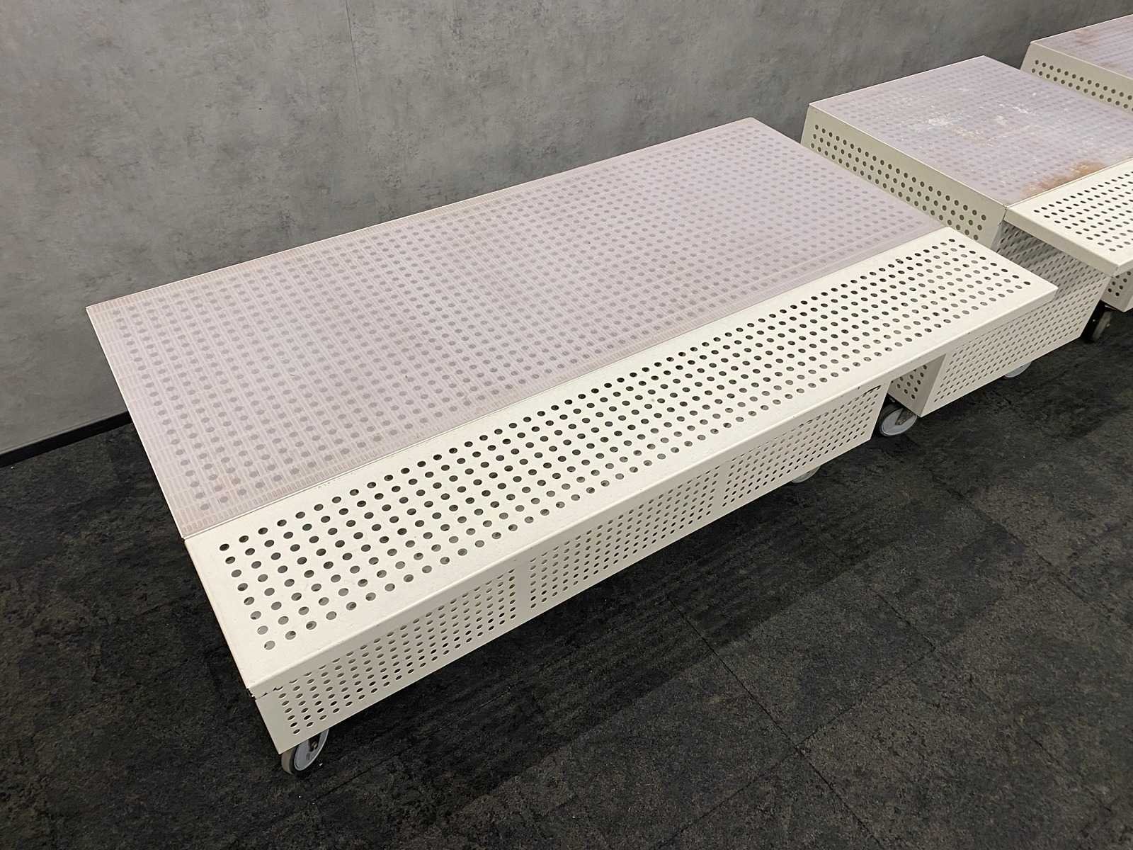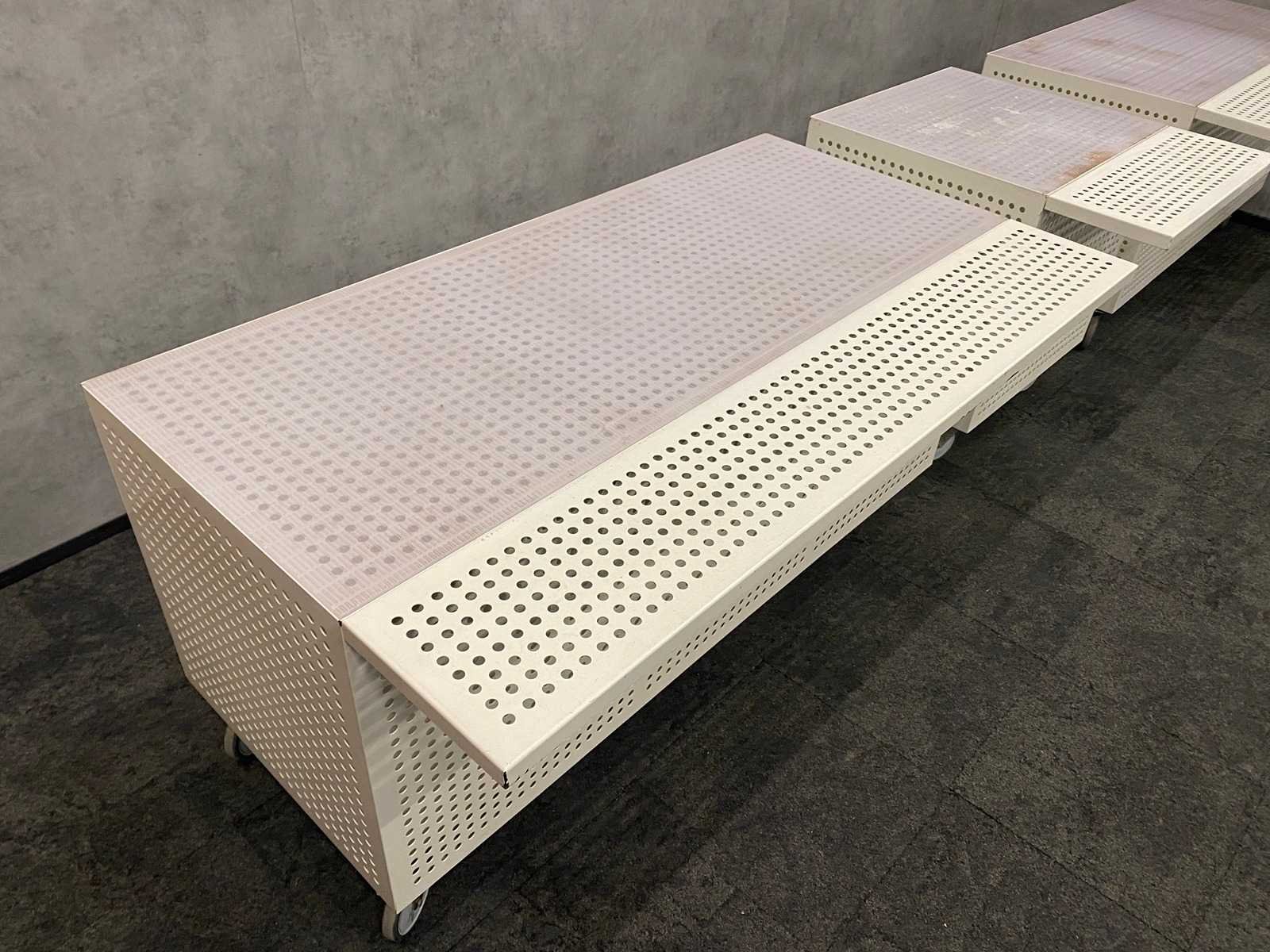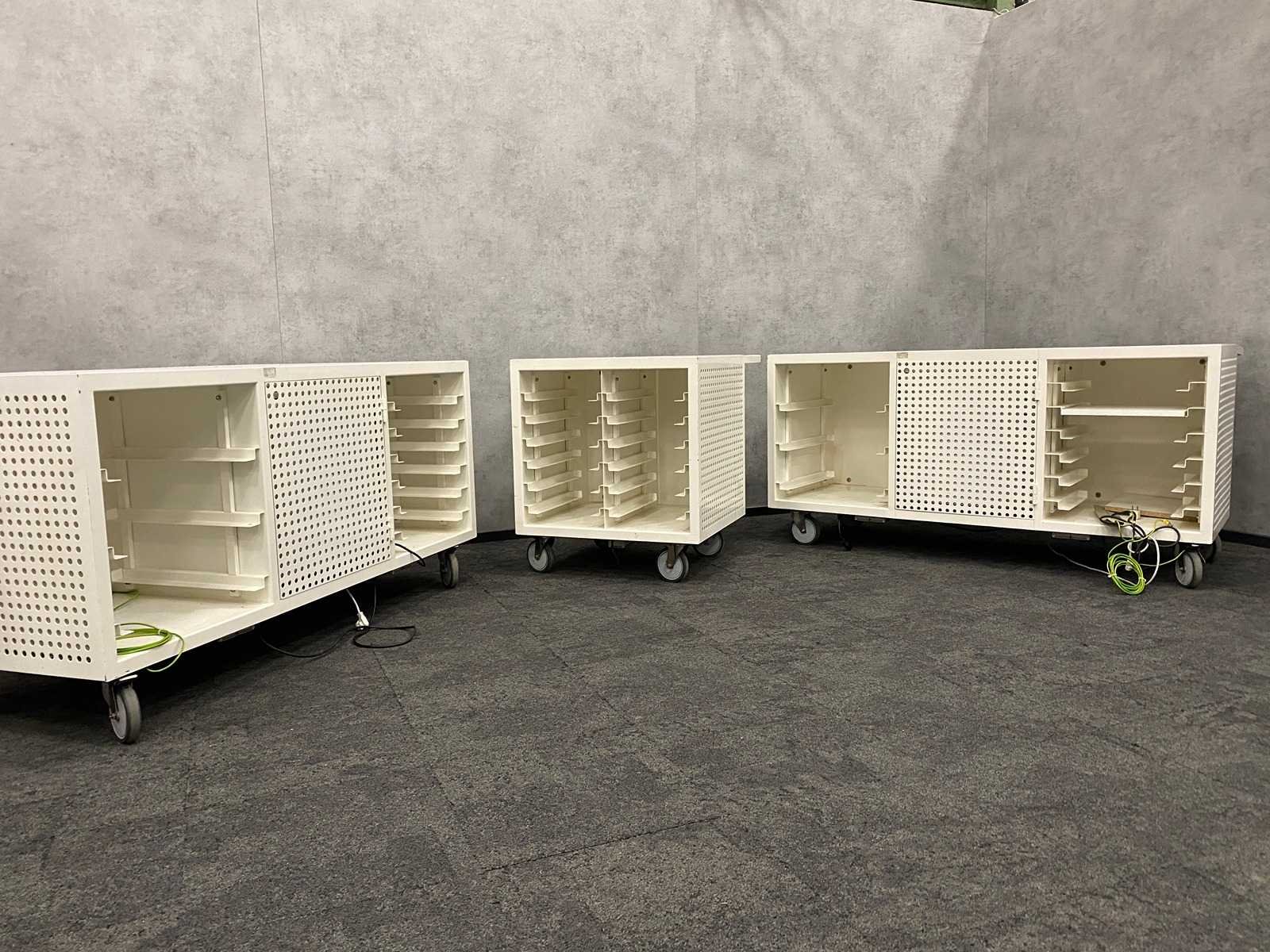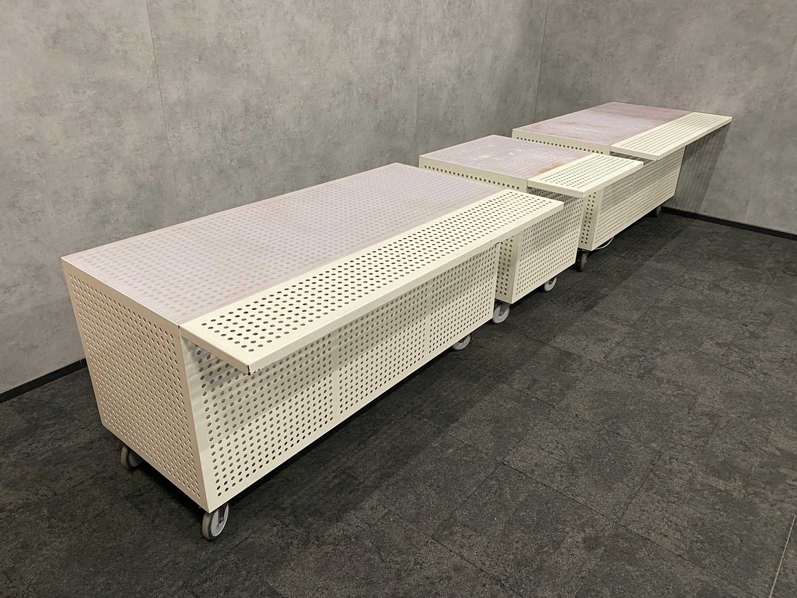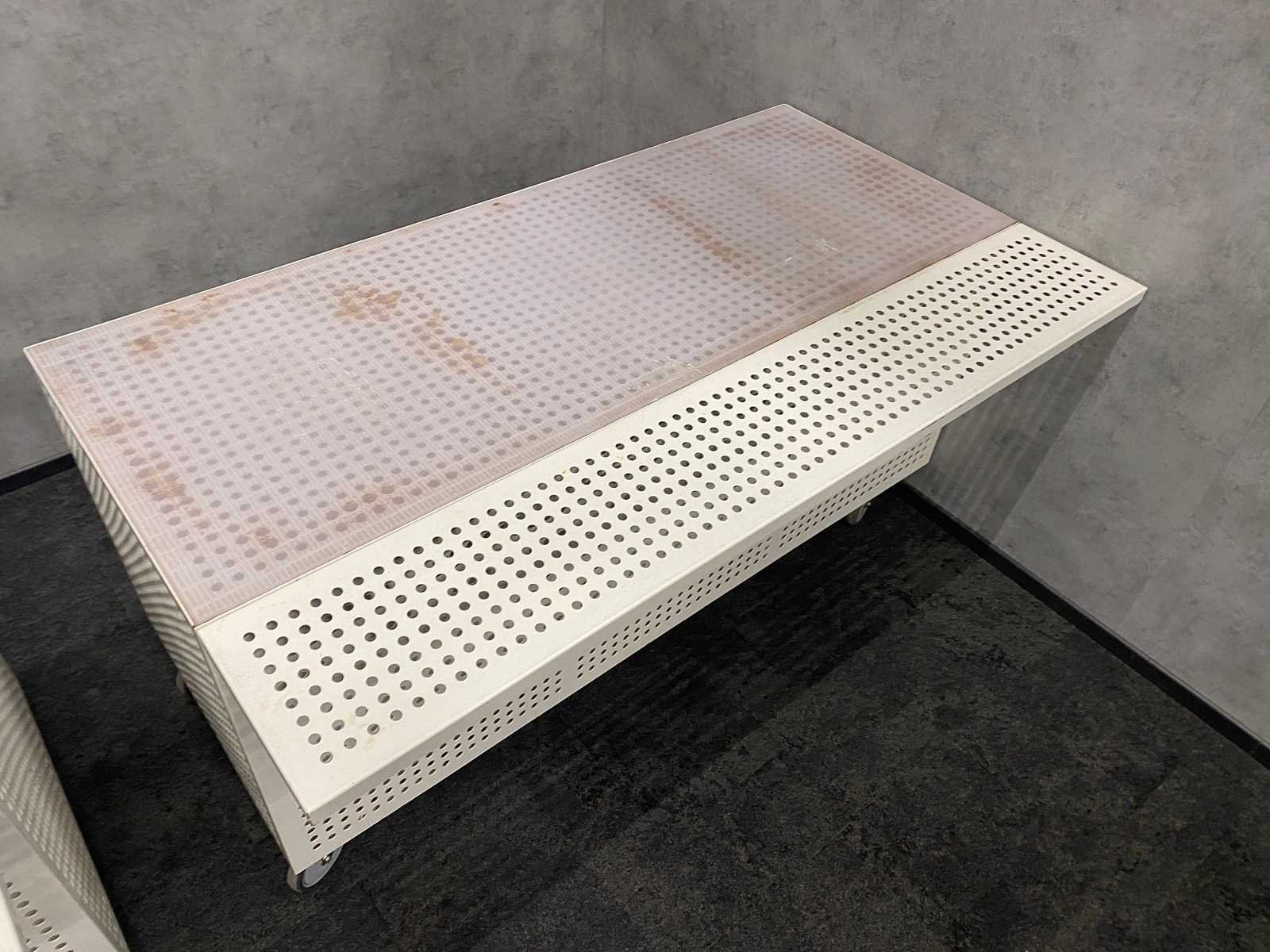 Afm. 2 delen van ca. hxbxd 90x180x100 cm. -- 1 deel van ca. hxbxd 90x80x100 cm. -- v.v. 2x inbouwkoelkast Nee Metaal: true